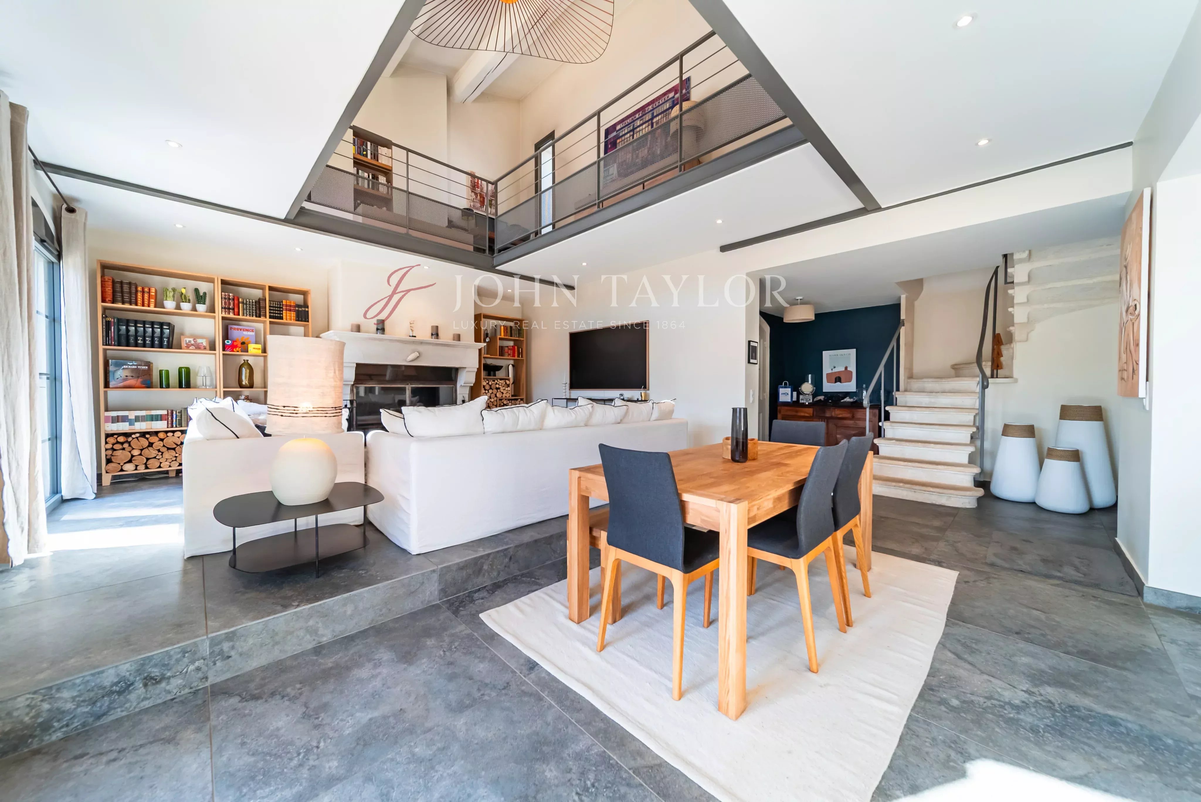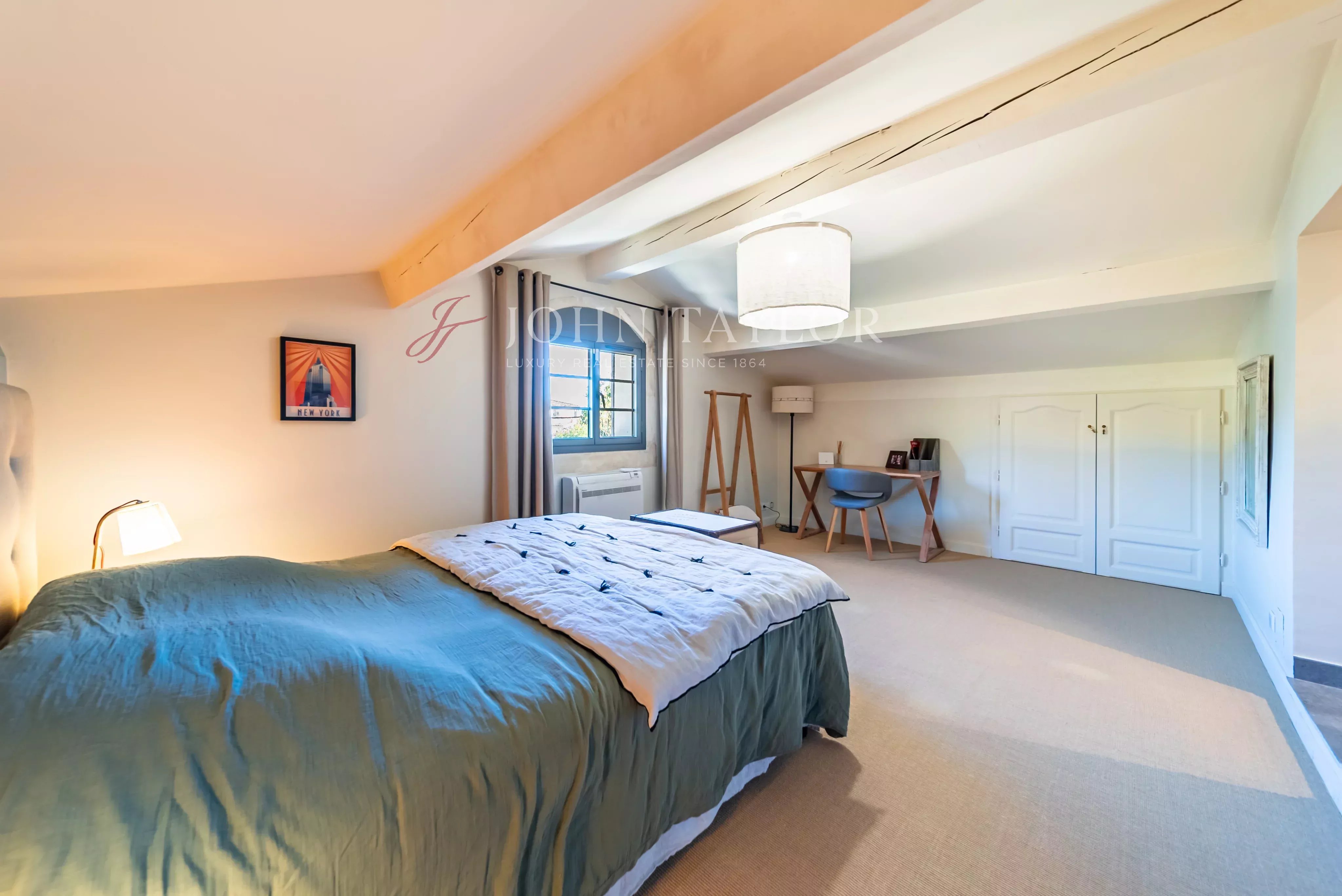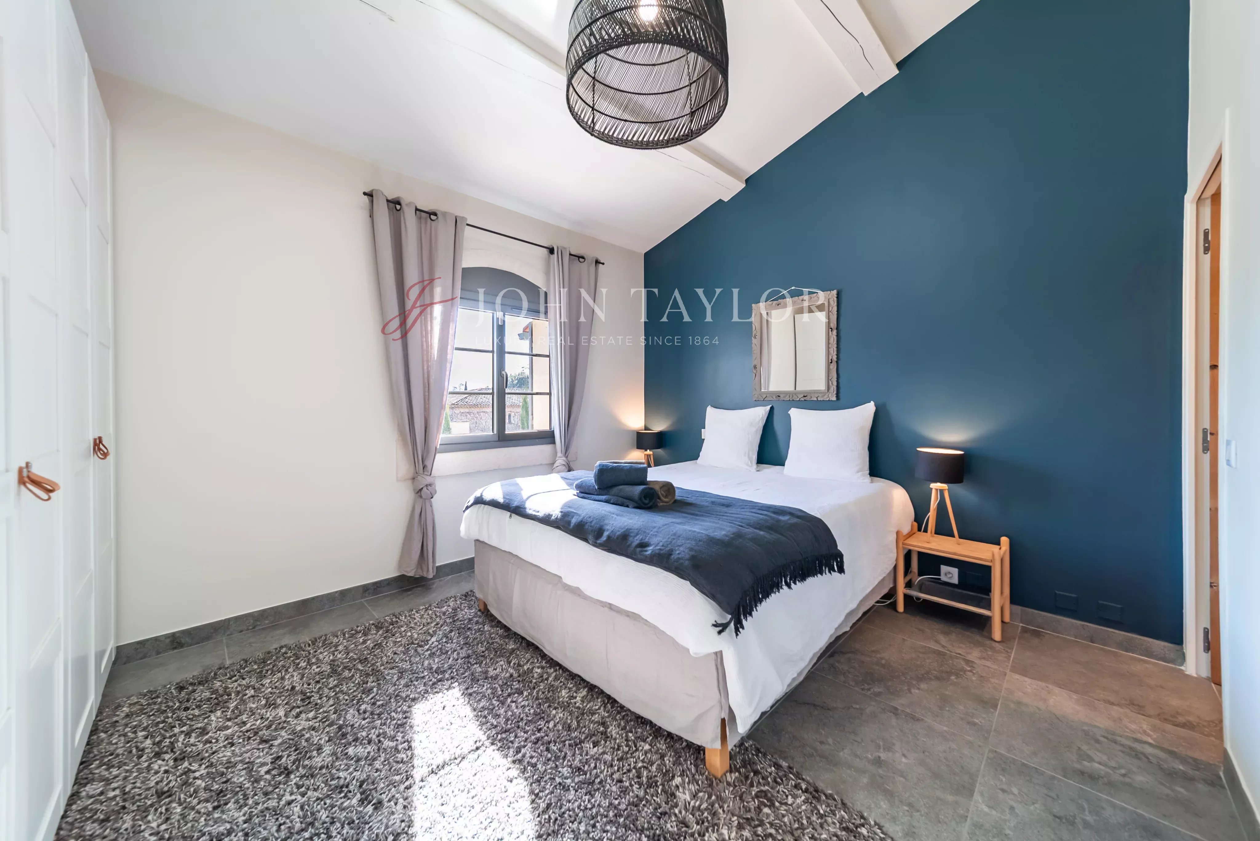 À quelques minutes à pied du centre du village, des commerces et des restaurants, cette propriété bénéficie d’un environnement calme et préservé, sans aucune nuisance.