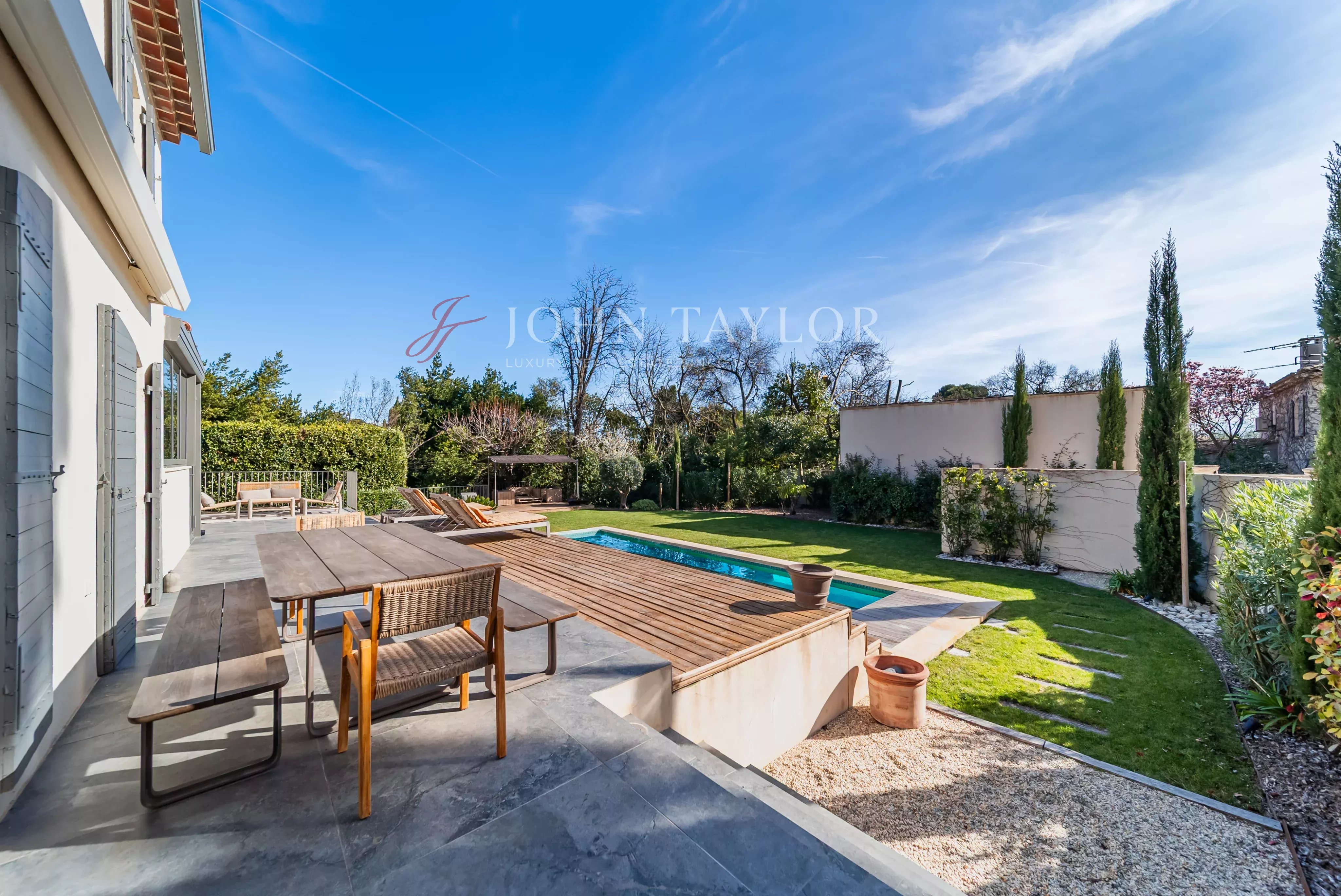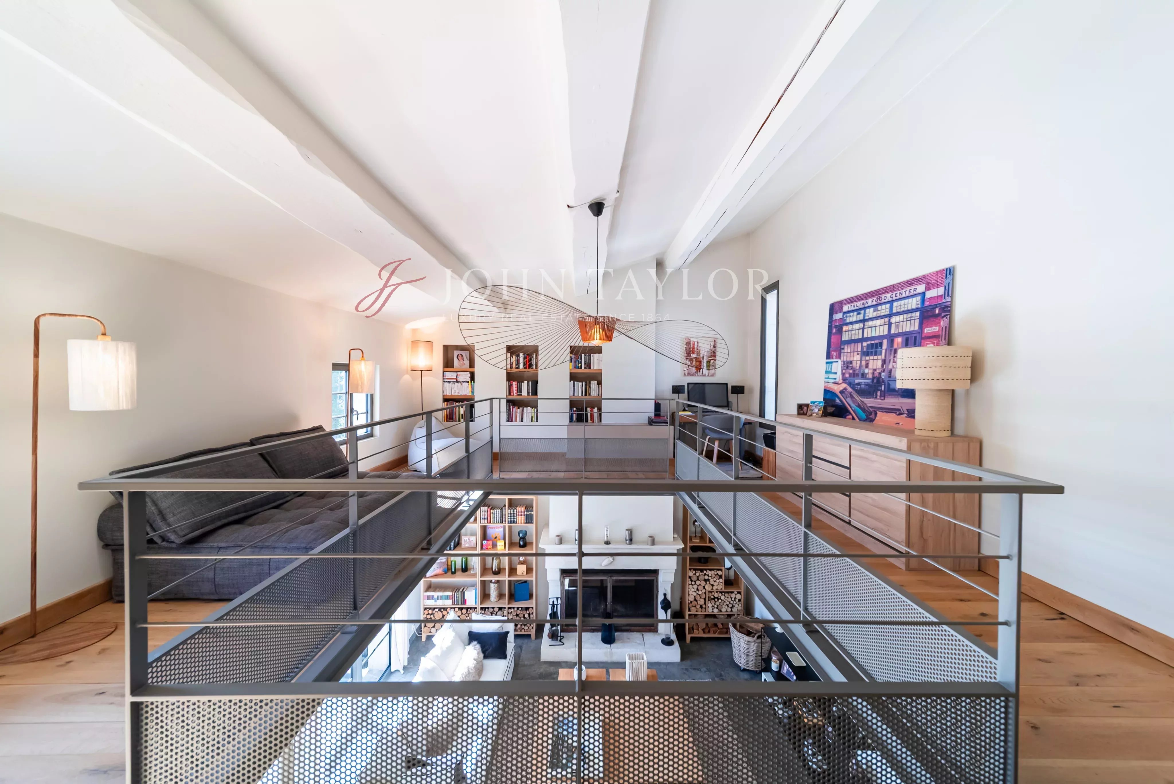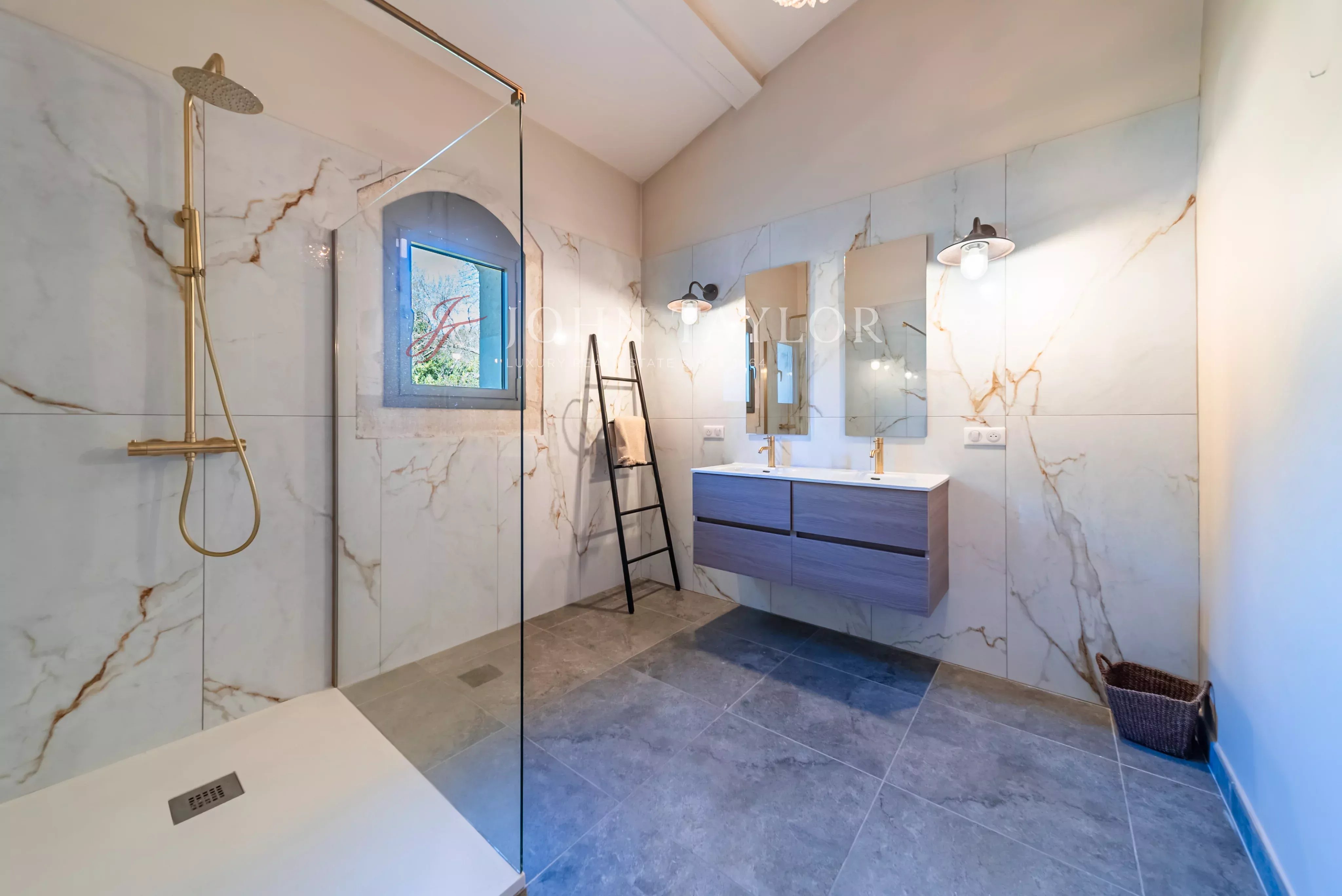 À quelques minutes à pied du centre du village, des commerces et des restaurants, cette propriété bénéficie d’un environnement calme et préservé, sans aucune nuisance.