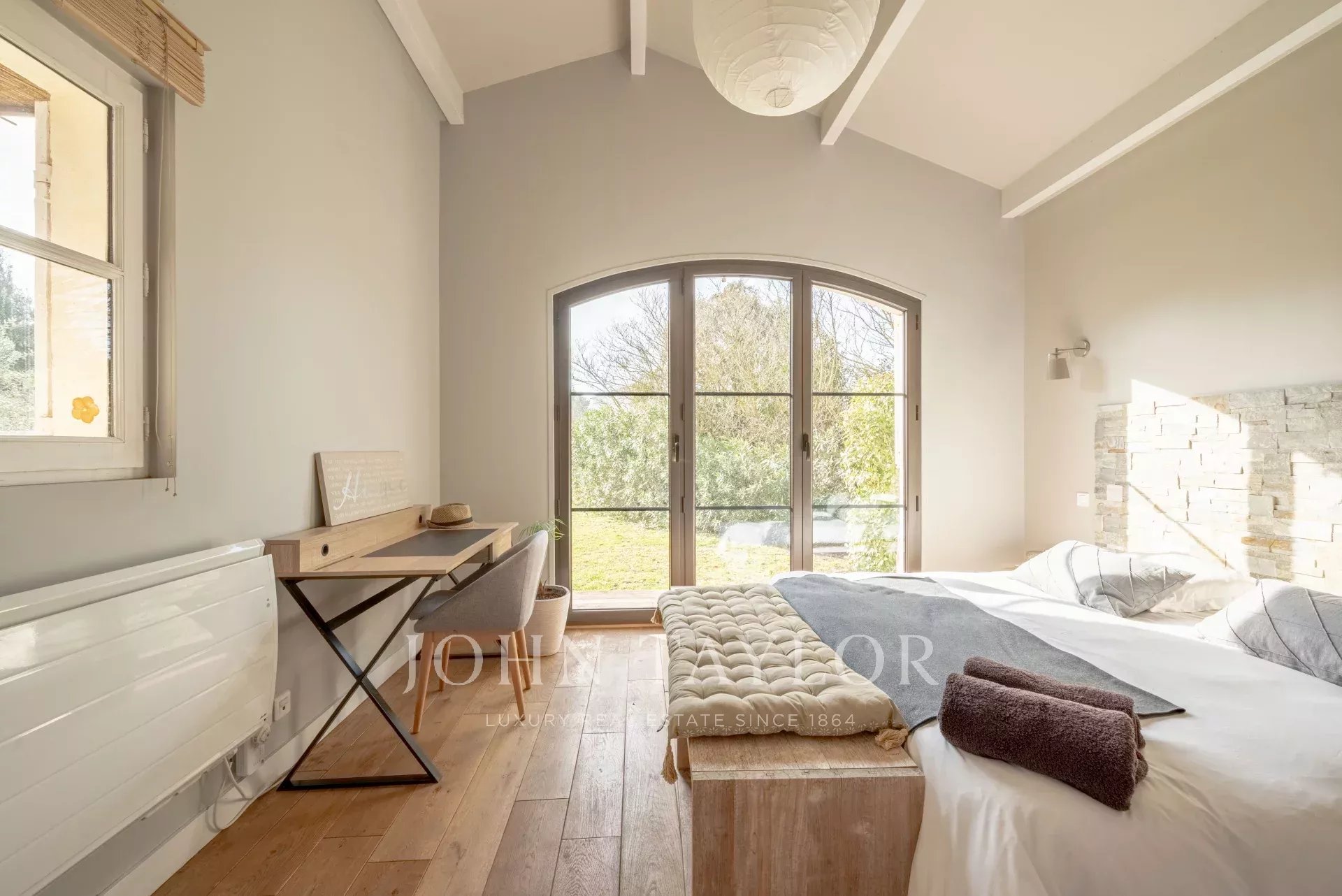 Dans le massif des Alpilles sur la commune du Mas-Blanc-des-Alpilles, à 25 minutes de la gare TGV d'Aix et Avignon, l'agence John Taylor située à Lourmarin vous propose à la vente cette magnifique bastide rénovée de 320 m2 sur un terrain de 3000 m2, divisé en deux parties bien distinctes.