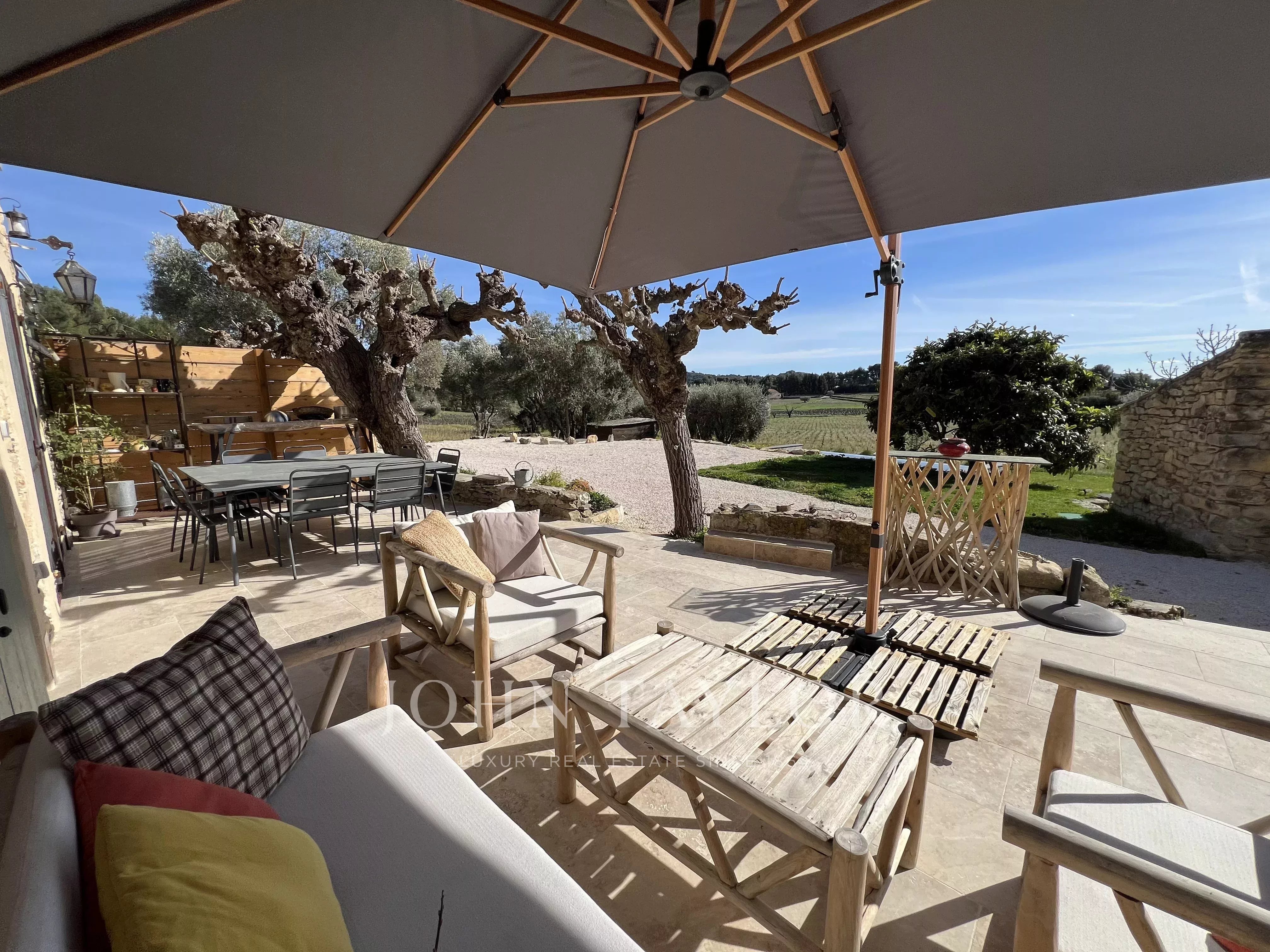 Les extérieurs, pensés comme une véritable invitation à la douceur de vivre, accueillent une piscine à débordement, un cabanon en pierre, deux chambres d’été au charme atypique, une salle de bain extérieure, une terrasse ombragée ainsi que plusieurs stationnements.