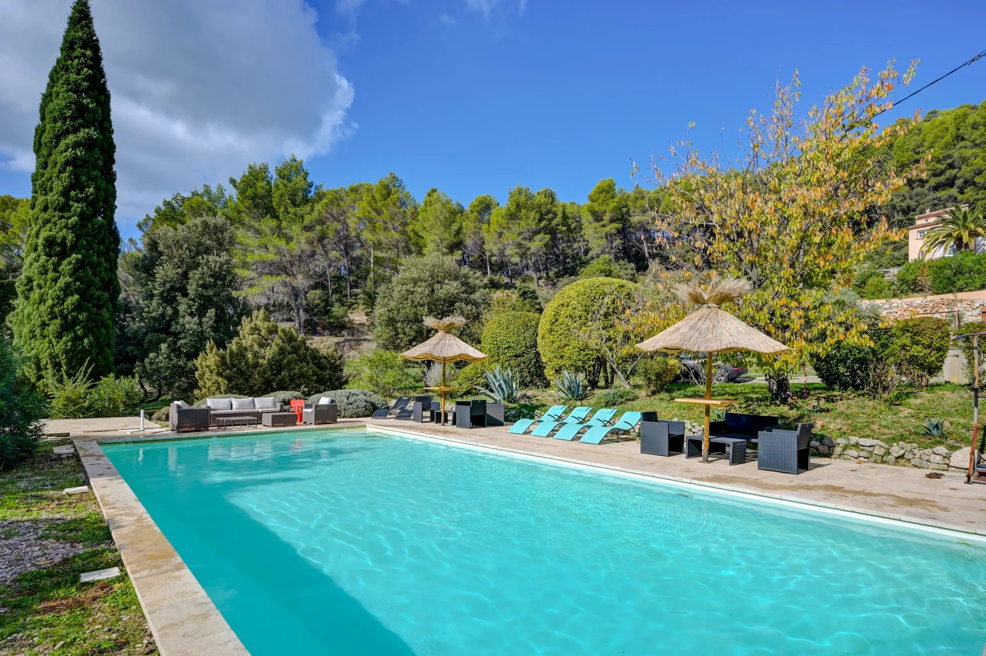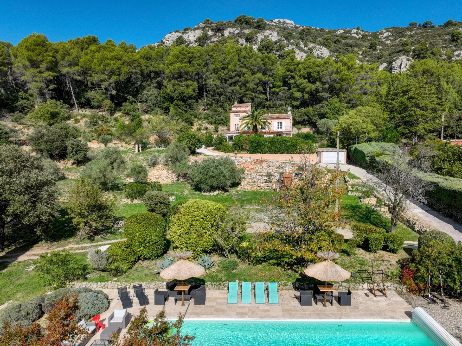 Entièrement rénovée en 2014, cette maison d’environ 222 m² se déploie au cœur d’un terrain paysager de 16 500 m², entre restanques provençales, pinède et nature intacte.