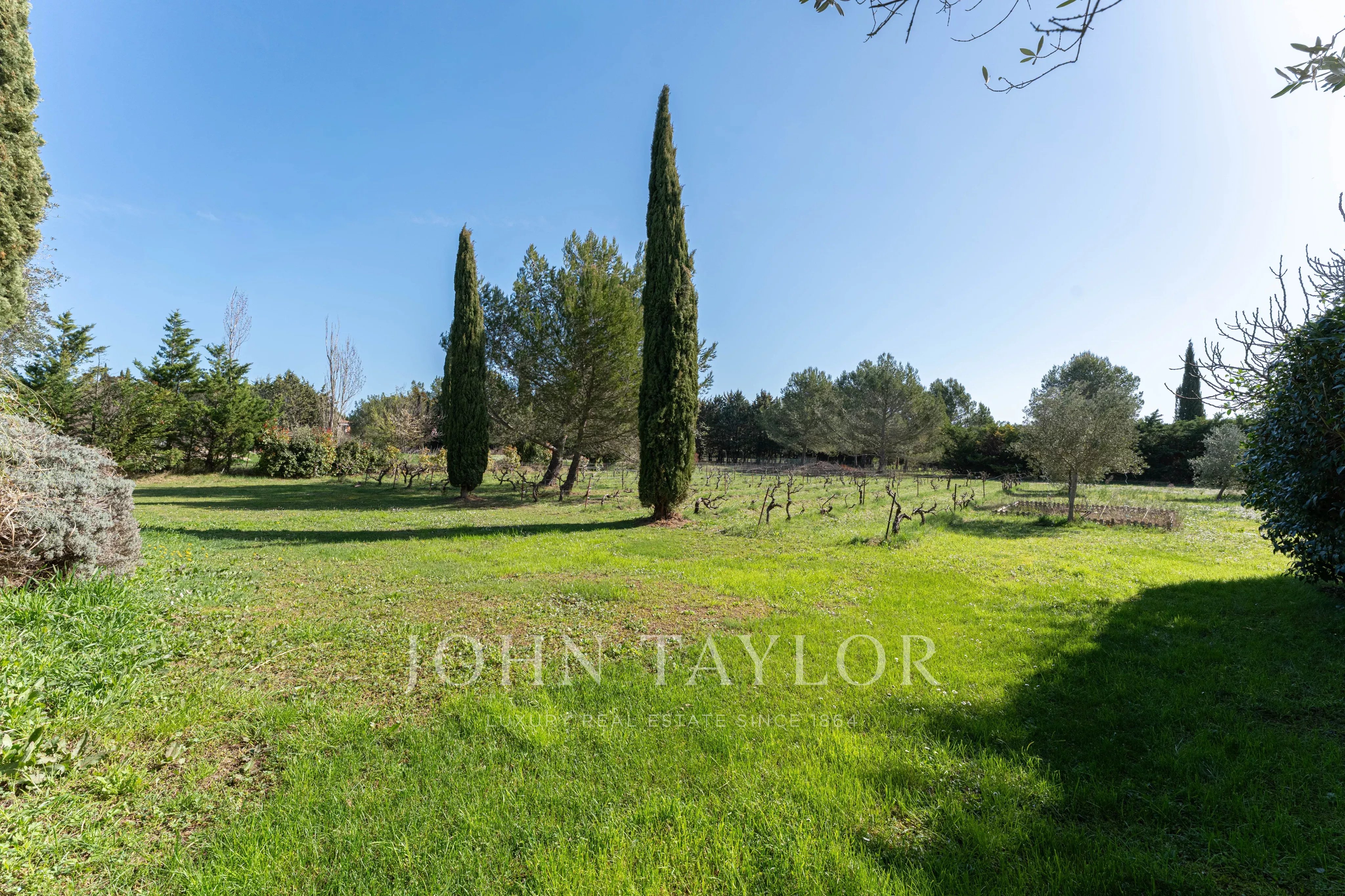 Dans un cadre prisé à Lambesc, à 25 minutes d’Aix-en-Provence, cette élégante villa de plain-pied d’environ 250 m² s’épanouit sur un superbe terrain arboré de 6 000 m², plein sud, au calme absolu.