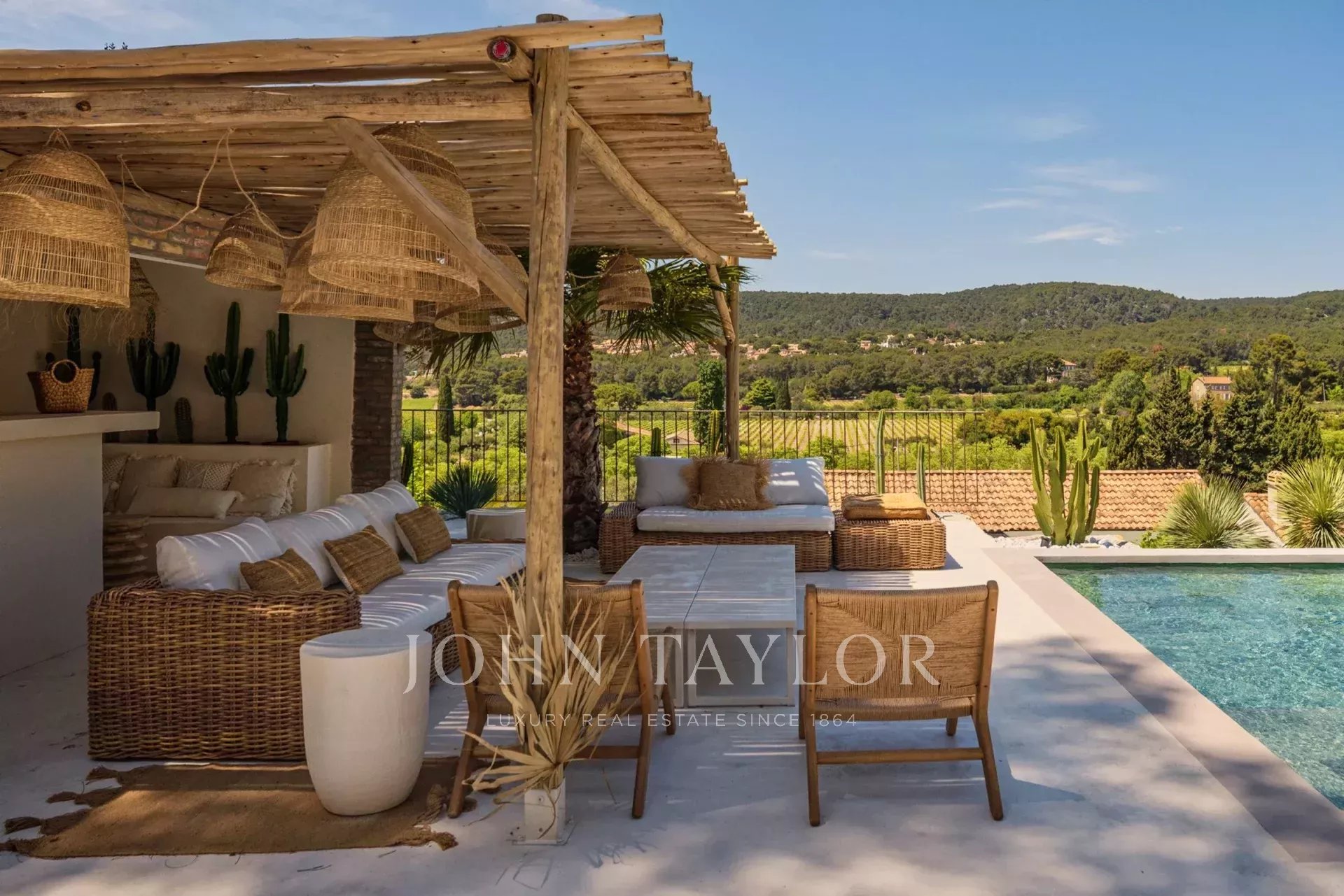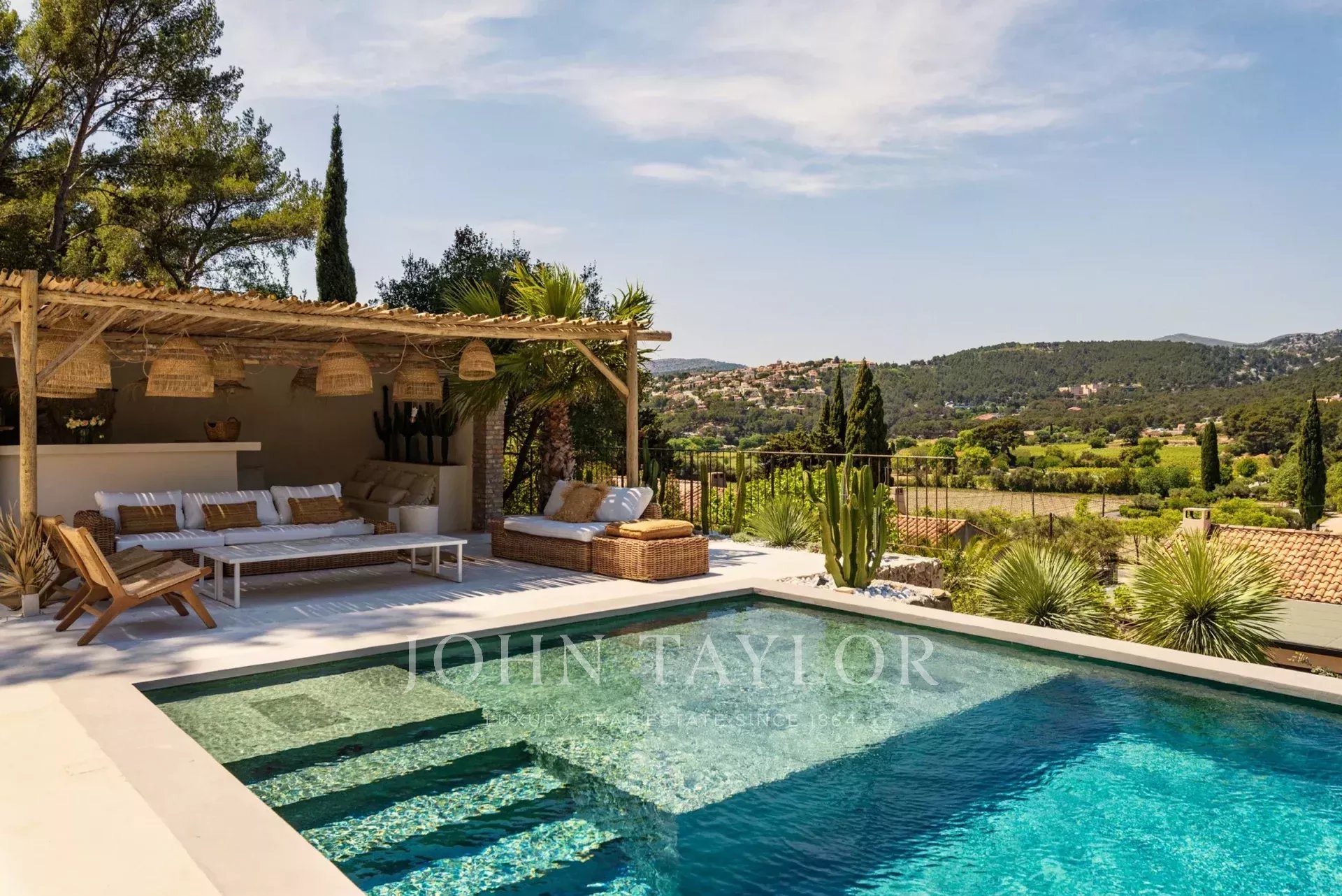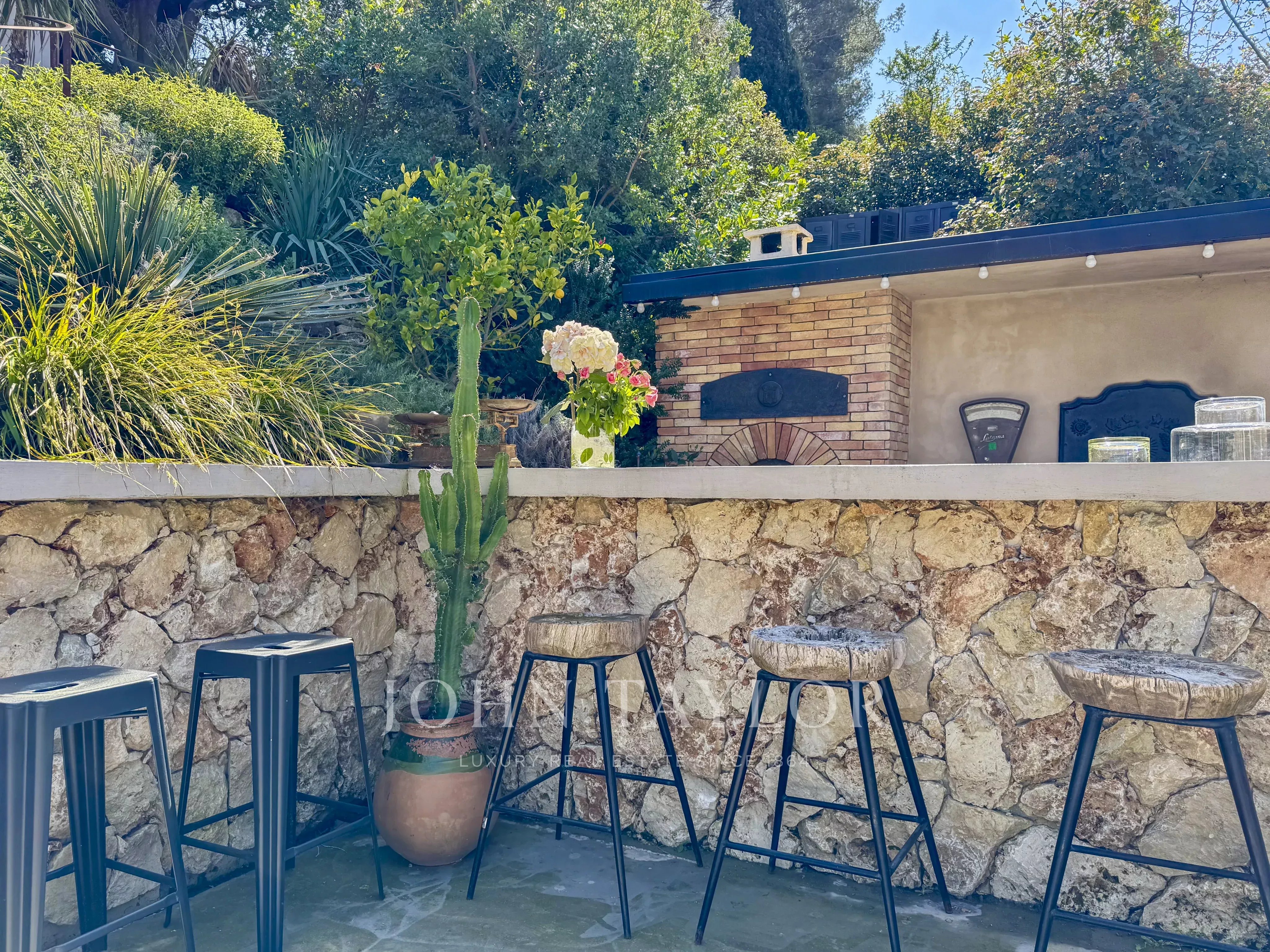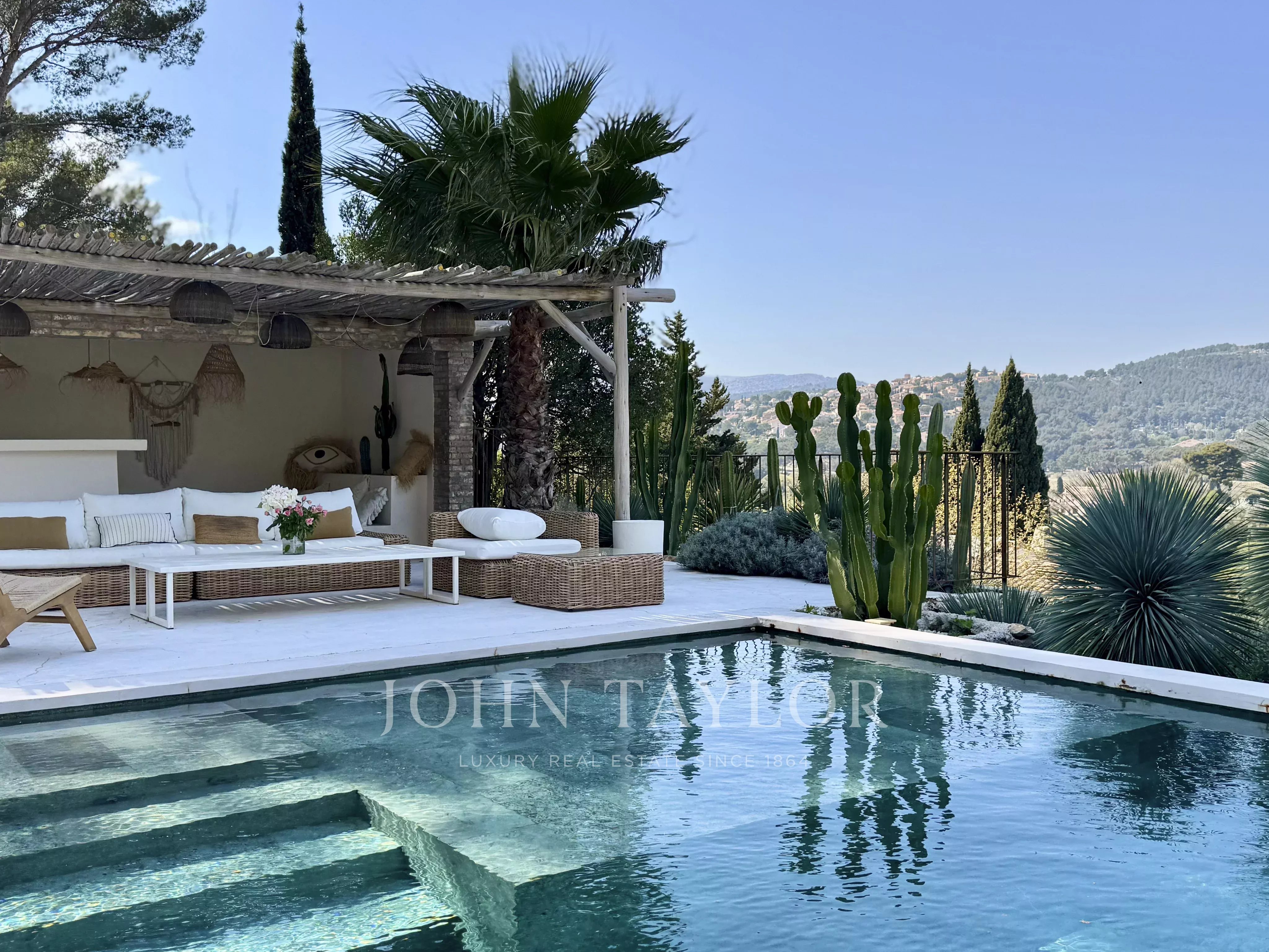 Cette villa méditerranéenne offre un cadre de vie idyllique entre un jardin luxuriant inspiré du maquis corse rempli d’essences aromatiques et d’oliviers centenaires et son élégante piscine et espace de villégiature profitant de magnifique couchers de soleils toute l’année.