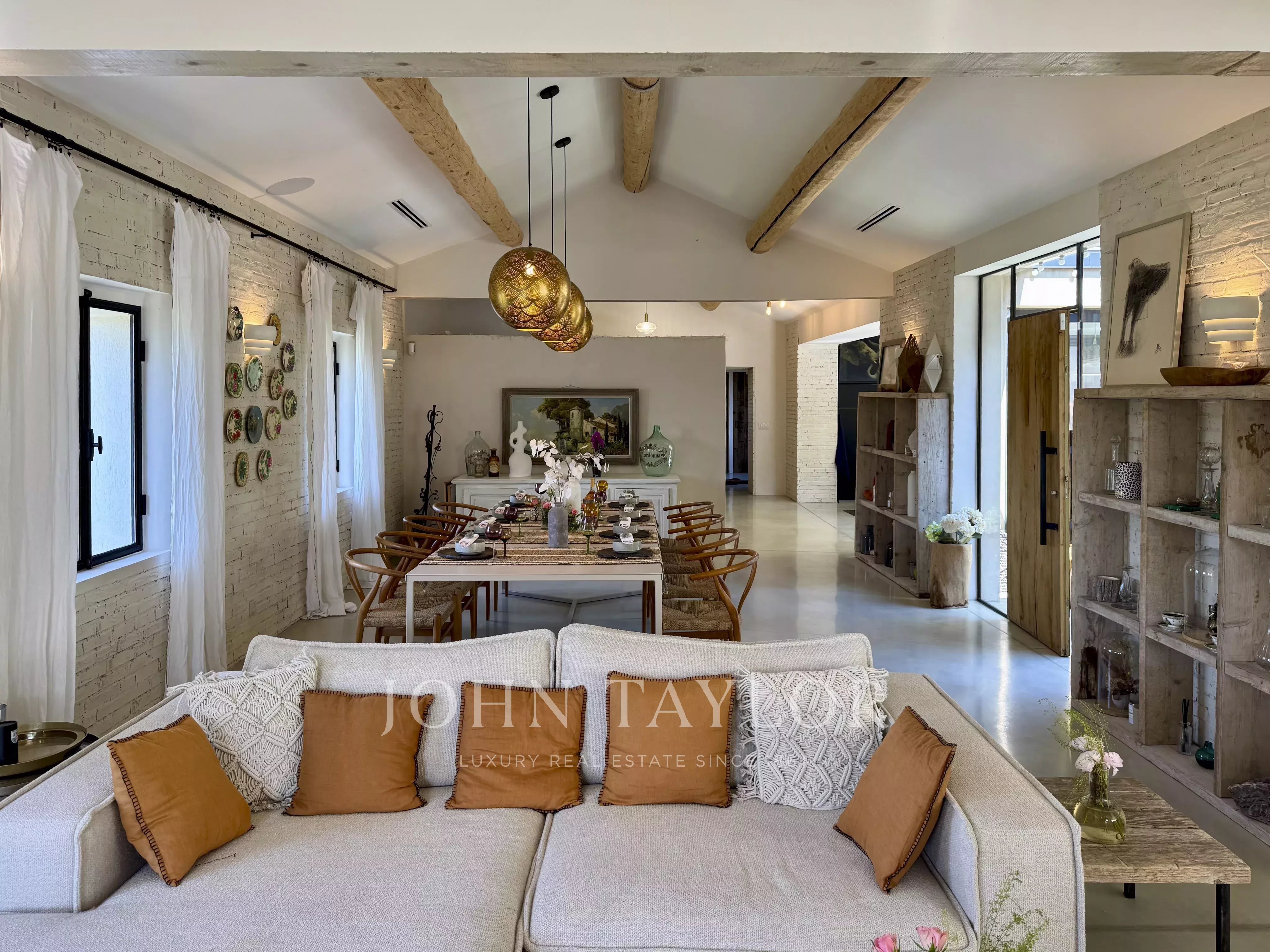 Passé la porte d’entrée vous serez tout de suite plongé dans l’ambiance cocooning et stylée de cette demeure. La propriétaire des lieux a su sublimer cette maison ancienne en conservant une authenticité dans sa décoration et dans un « clash » de style la rendre très moderne et actuelle. L’espace de plus de 80m² composé de 2 espaces salon, d’une salle à manger et de la cuisine sont entièrement ouvert sur l’extérieur, de plain-pied avec ses grandes baies vitrées et l’on aperçoit de partout l’aménagement très réussi du jardin.