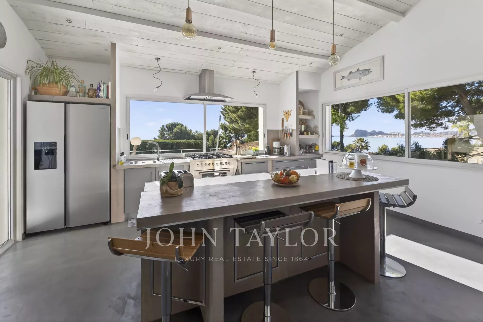On appréciera son exposition plein Sud et ses espaces de vie baignés de lumière et bien entendu, sa vue panoramique sur la mer. La pièce de vie ainsi que la cuisine bénéficie d'une très belle hauteur de plafond. Cuisiner dans cet espace sera un pur plaisir grâce au panorama dégagé et ses ouvertures sur la belle terrasse extérieure et son coin repas.