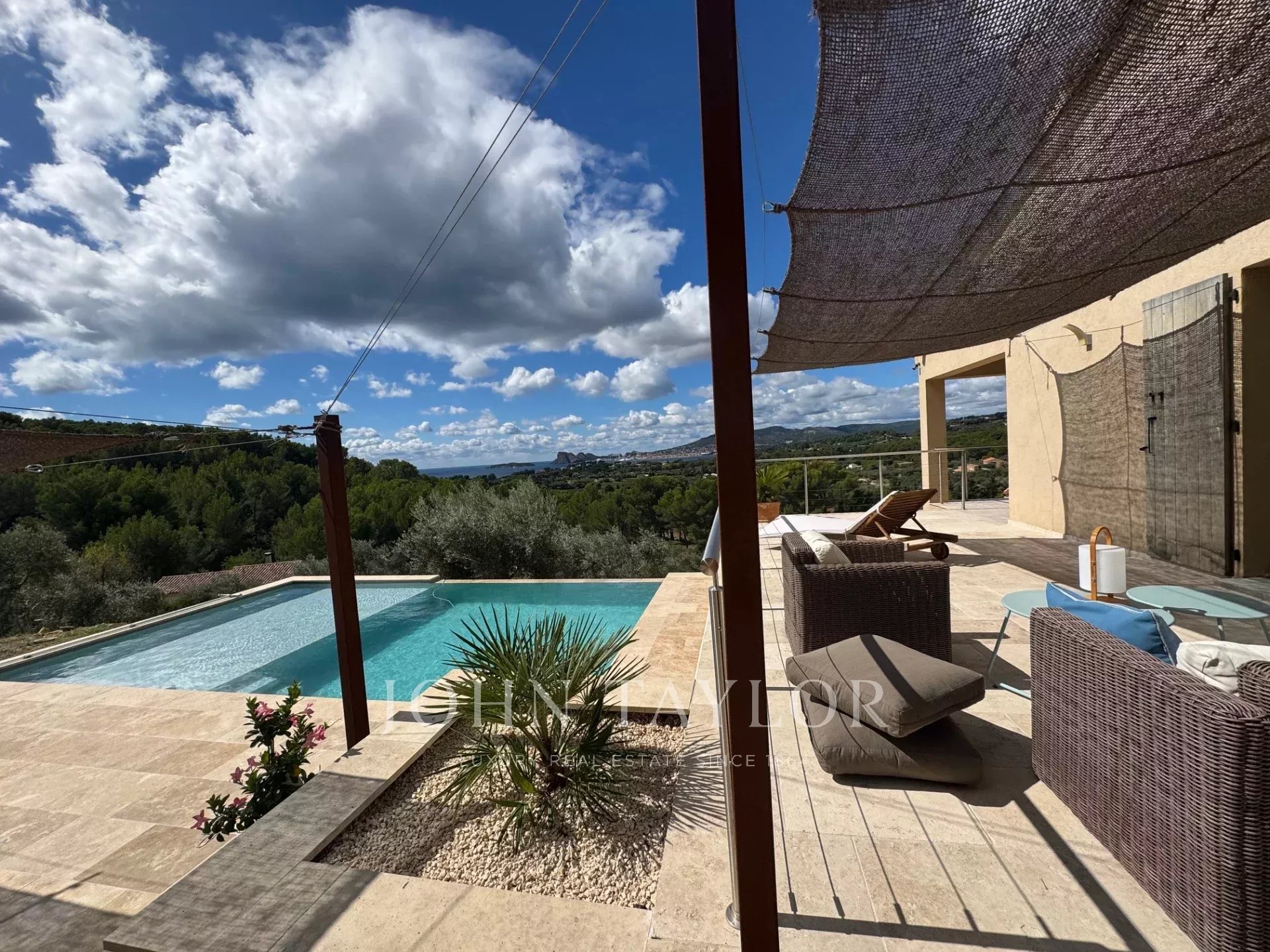 La propriété se situe à quelques minutes en voiture de la mer, dans un environnement campagne bénéficiant d'une superbe orientation Sud Ouest et d'une belle vue directe sur toute la baie de La Ciotat.