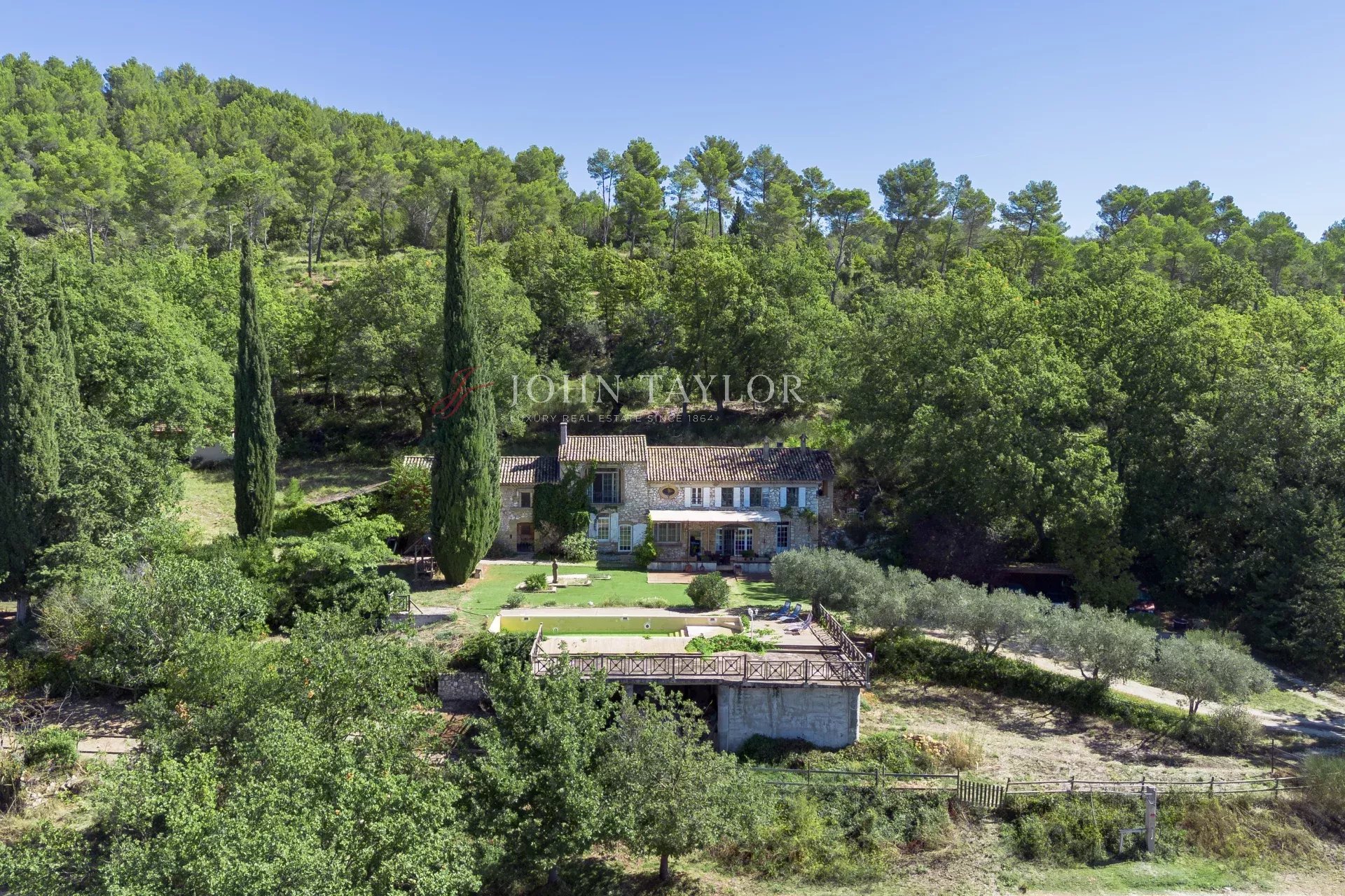 Luberon. A 35 km de la ville d'Aix en Provence et sa gare TGV. A 10mn du village de Lourmarin l’agence immobilière John Taylor vous propose à à la vente en EXCLUSIVITE, dans un secteur calme, privilégié, surplombant la vallée de la Durance avec une superbe vue sur la Sainte Victoire, une imposante Bastide en pierre, entourée de son terrain de 1ha6 hectares (possibilité d'acheter plus de terrain) orné de plantes méditerranéennes.