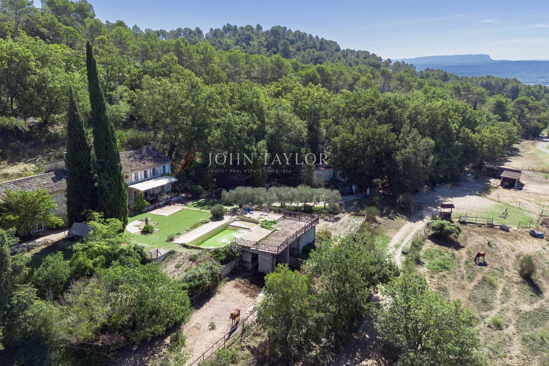 EXCLUSIVITE à vendre Luberon Sud Mas en pierre sur un terrain de 1ha6, vue dominante sur la Sainte Victoire. Calme absolu