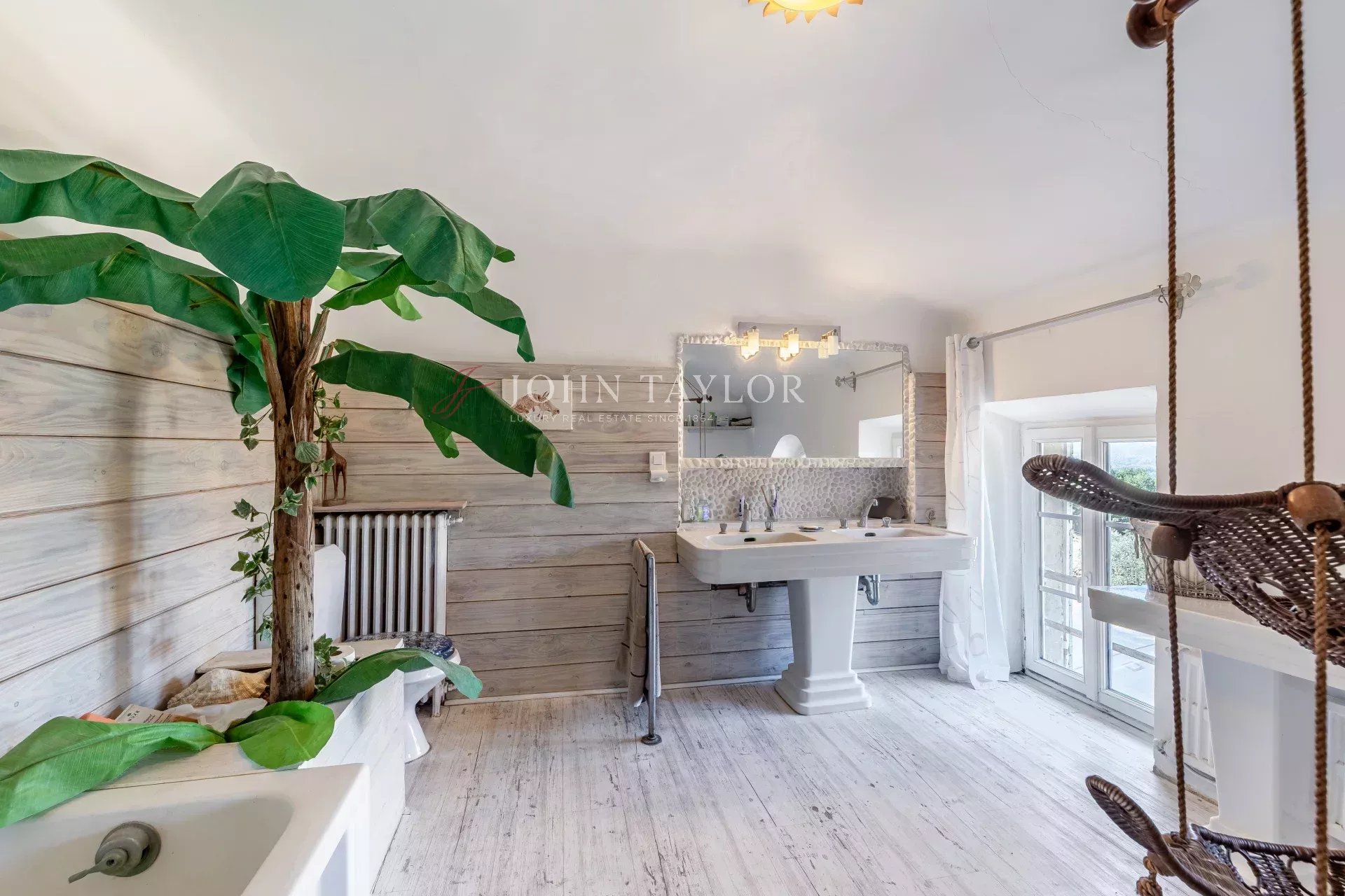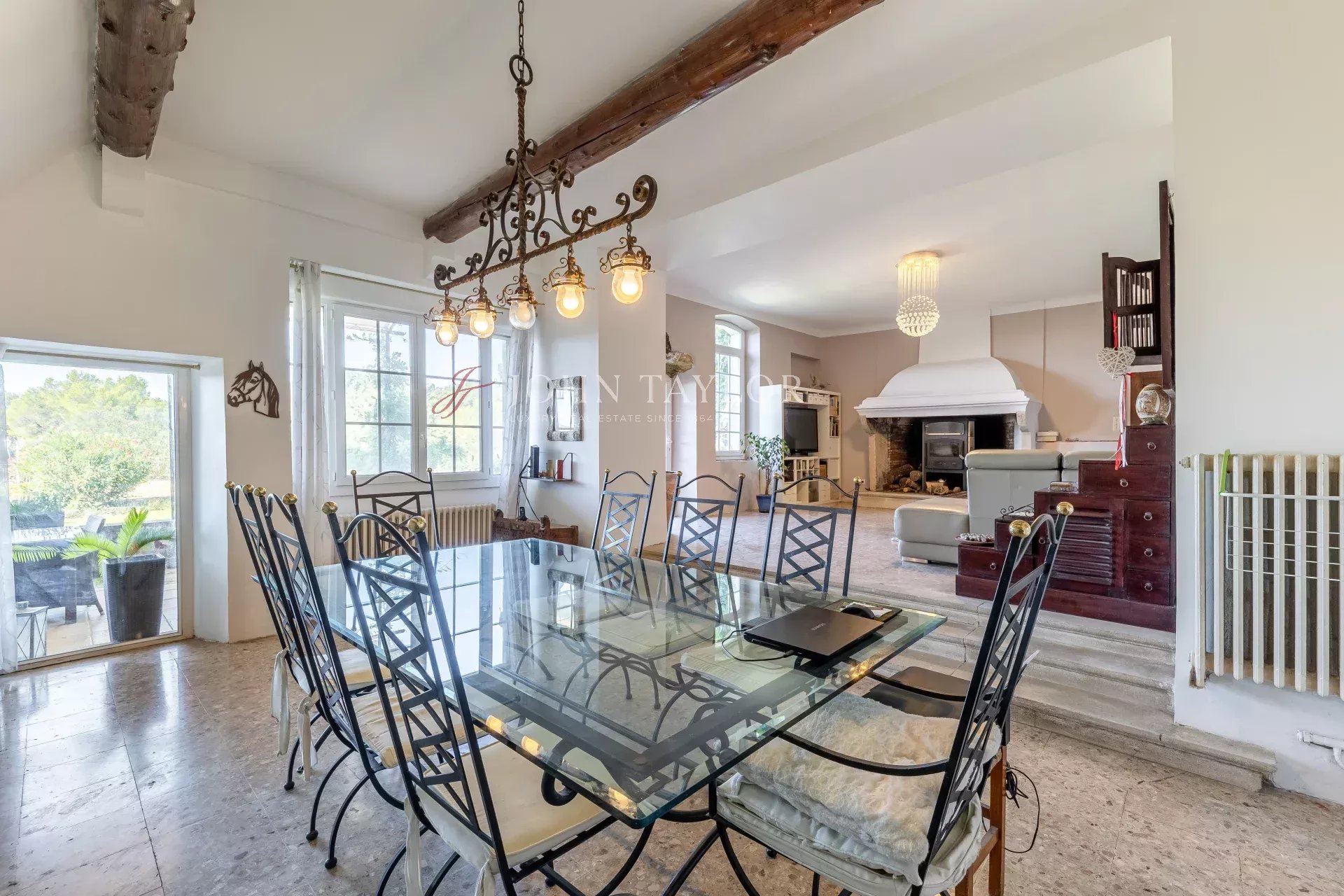 Cette très belle bastide d’environ 250m² sur deux niveaux, dispose de très beaux volumes dans les pièces de vie, les espaces intérieurs réaménagés sont confortables et offrent une belle harmonie entre la pierre et le bois. Cette véritable maison de famille comprend 4 chambres dont une suite parentale avec grand balcon avec vue au Sud. Un appartement mitoyen de type 2 avec terrasse indépendante vous permettra de recevoir de la famille, des amis en gardant votre intimité, possibilité d'un rapport locatif. La terrasse exposée Sud est accessible directement par la cuisine et le salon et dispose d'une vue dominante. Dépendance de 60 m2.