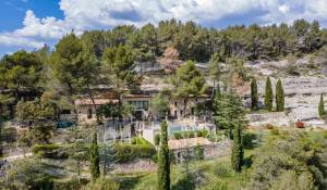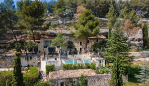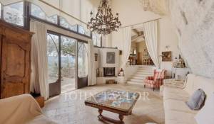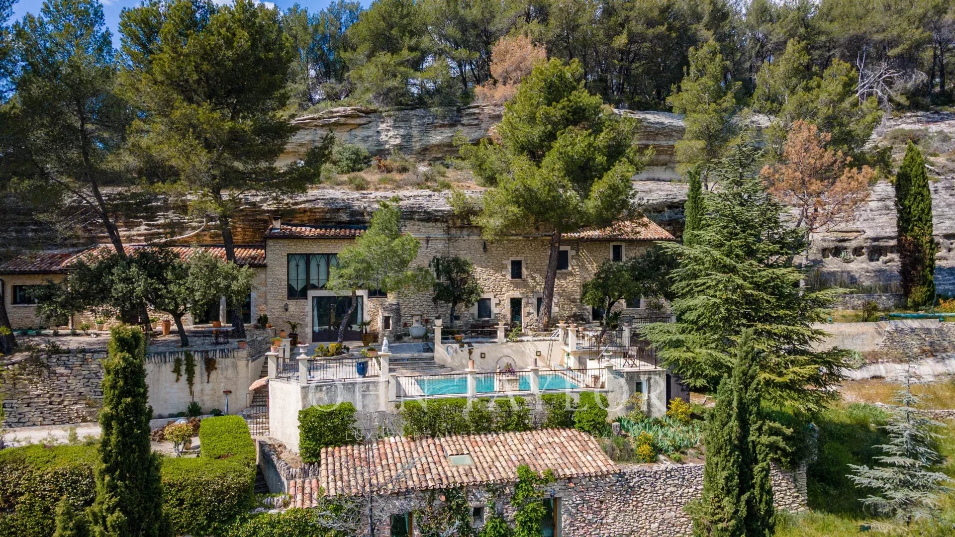 Édifiée sur un terrain de près de 8 hectares et rénovée avec des matériaux de qualité, cette maison, adossée au rocher offre de grandes ouvertures pour un intérieur lumineux quelle que soit la saison.