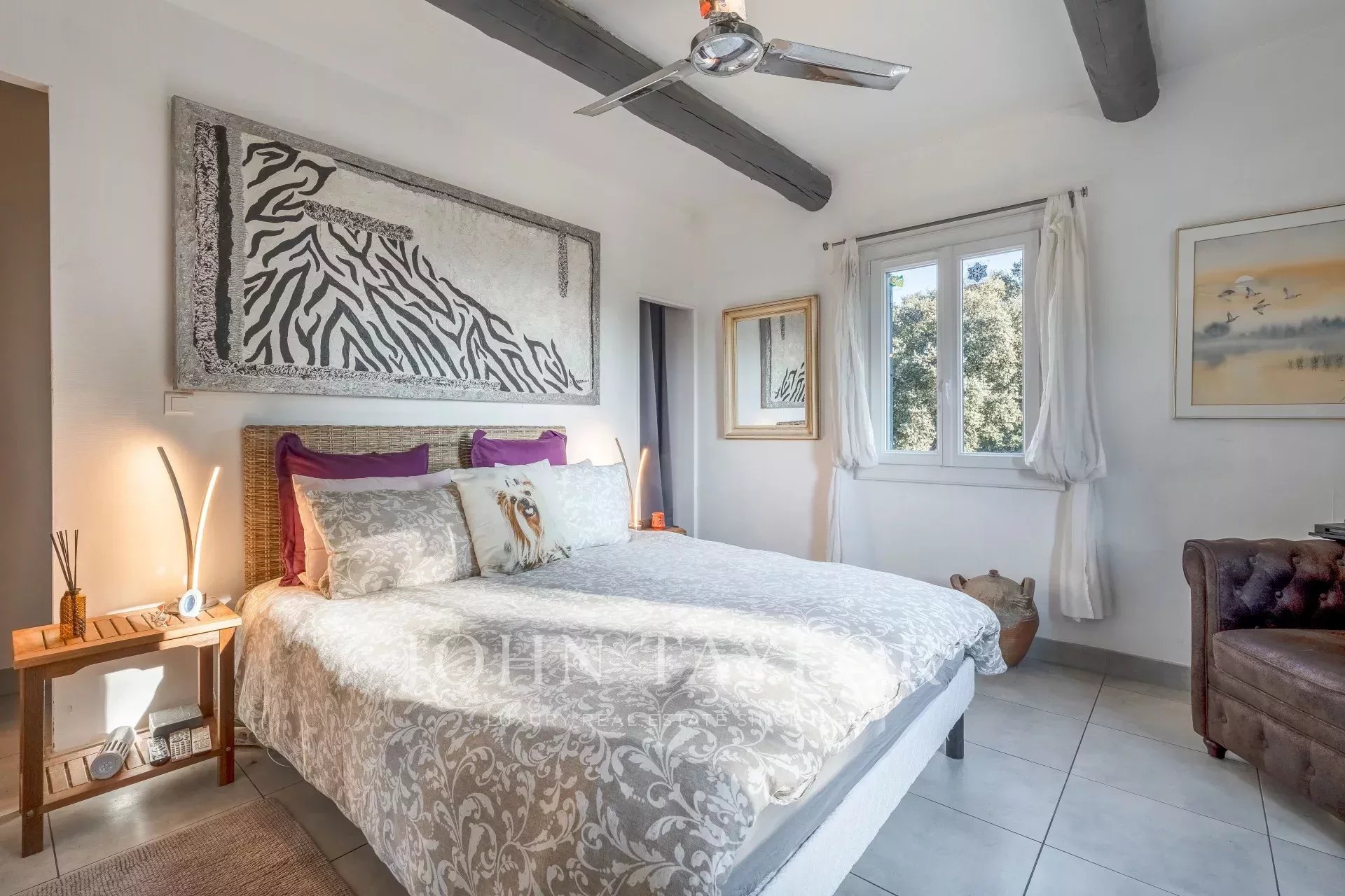 Un mazet indépendant de 39 m² complète cette propriété. Il offre un séjour avec cuisine ouverte, une chambre à l’étage et une petite terrasse pour profiter de l’extérieur. Cet agencement assure confort et flexibilité dans un cadre calme et accueillant.