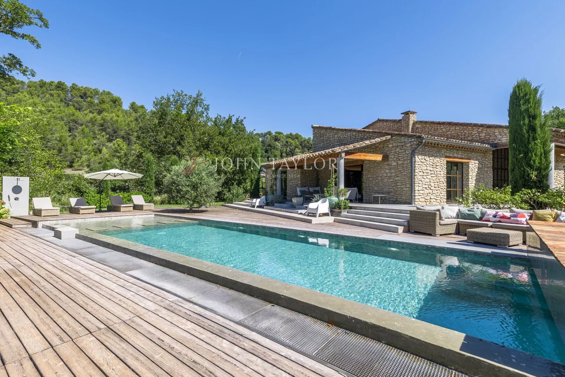 John Taylor Luberon a le plaisir de vous présenter cette élégante propriété aux lignes épurées et à l’âme résolument provençale, idéalement située à quelques minutes du cœur du village de Ménerbes, classé parmi les plus beaux de France.