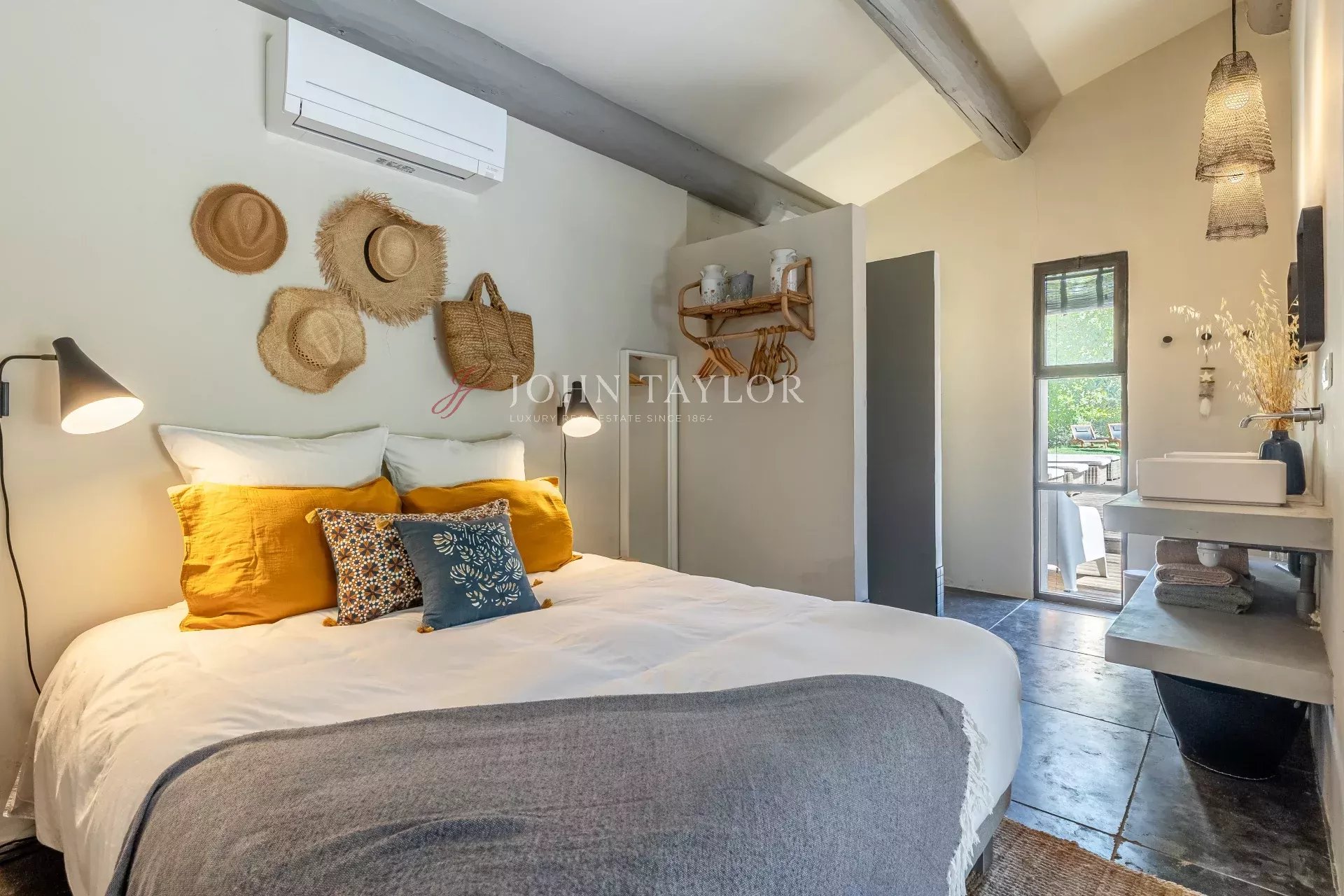 La maison dispose de quatre grandes chambres en suite, toutes ouvertes sur le jardin ou une terrasse, garantissant intimité et confort à chaque hôte. Une cinquième chambre indépendante avec salle de douche attenante, située à proximité du pool house, complète ce bien et permet de recevoir famille et amis en toute autonomie.