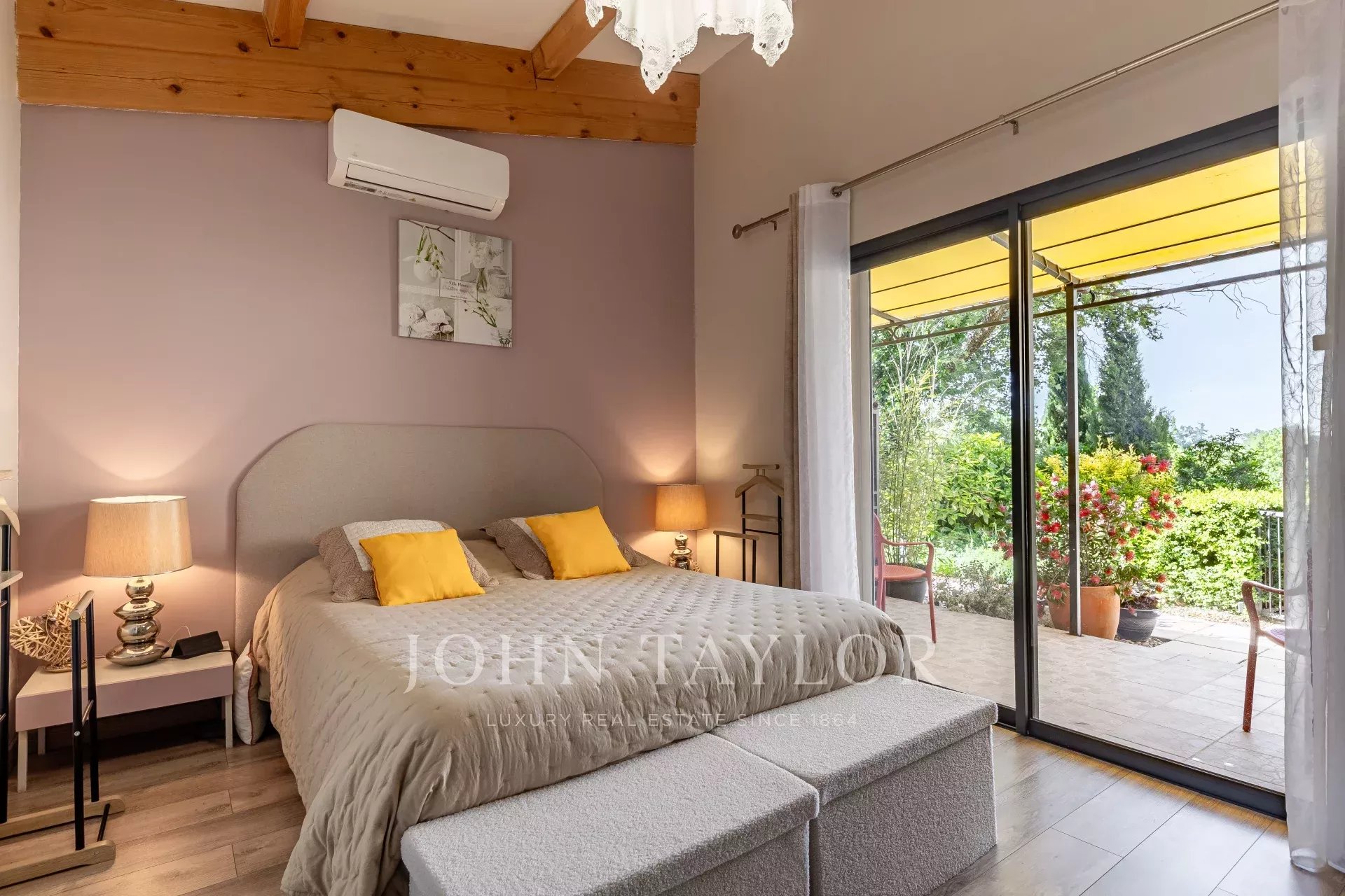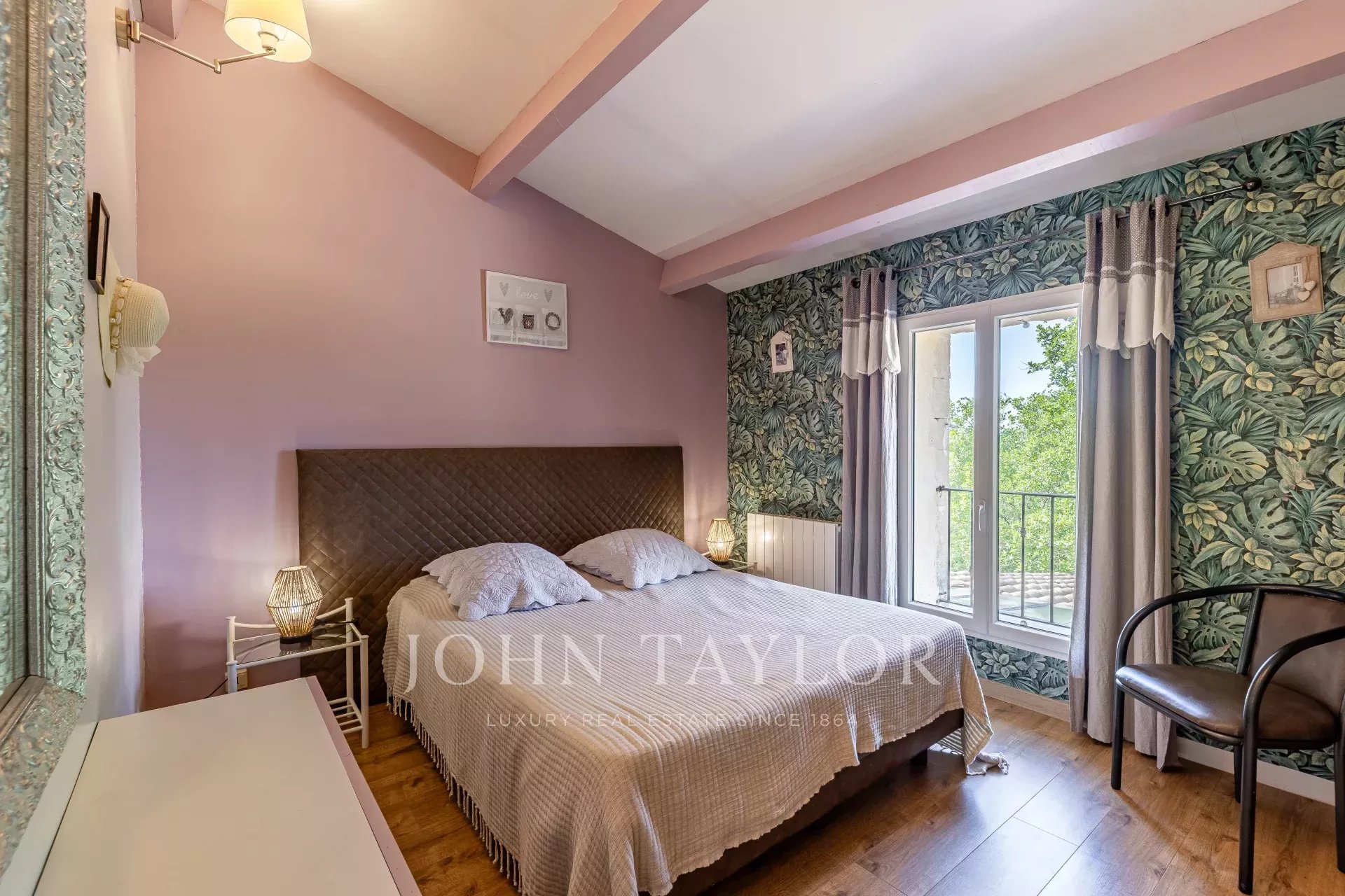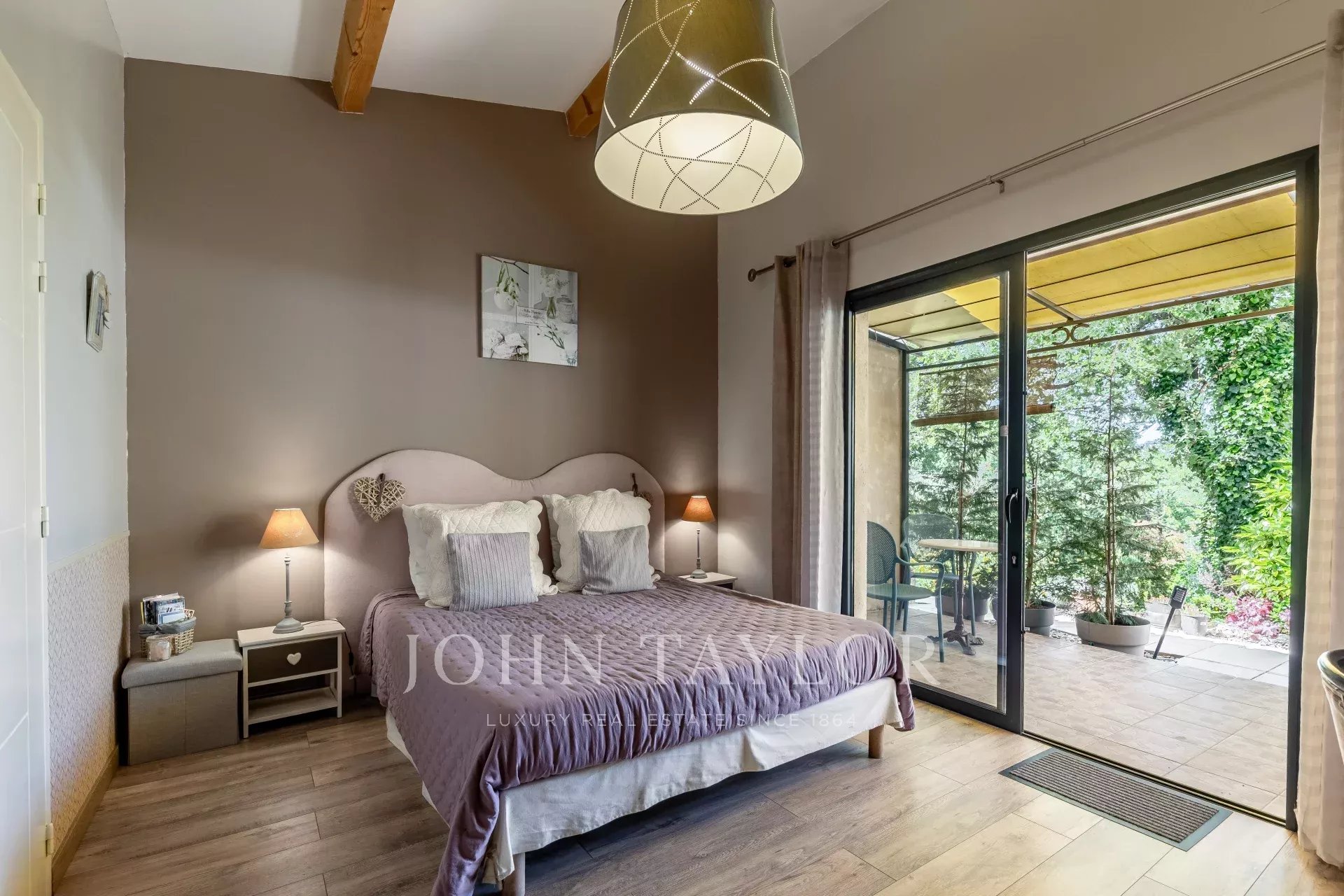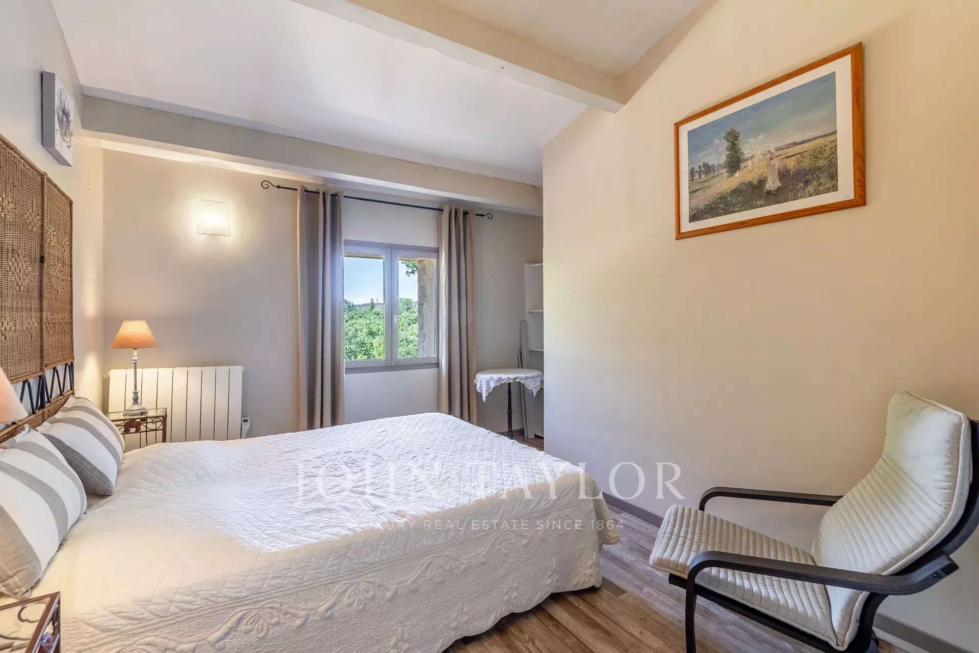 - Un second studio de 36 m², situé dans l’aile est de la propriété, accueille une grande suite récemment rénovée, dotée de baies vitrées, d’une salle d’eau contemporaine, de WC séparés et d’une terrasse avec vue dégagée.
