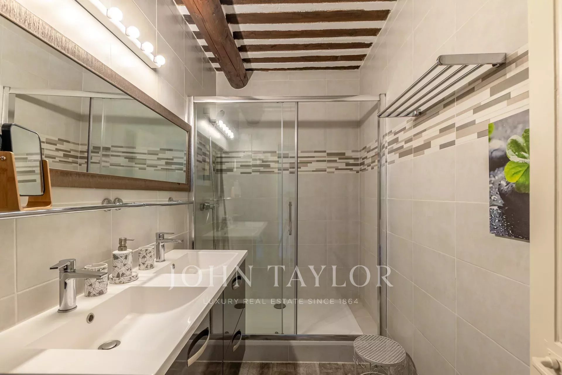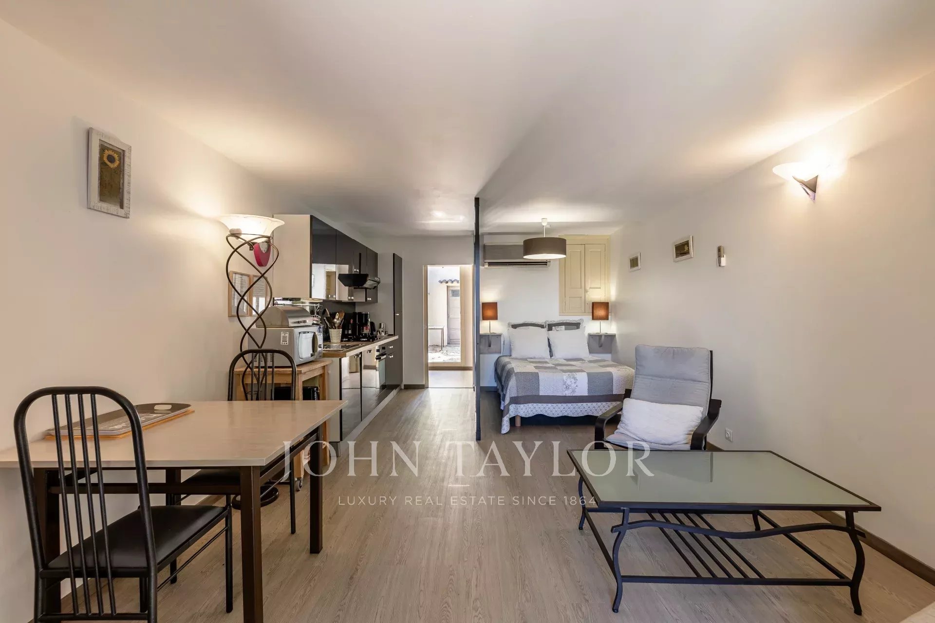 - Un premier studio de 29 m², situé au niveau des suites du rez-de-jardin, avec chambre, cuisine équipée, salle d’eau, WC et terrasse privative