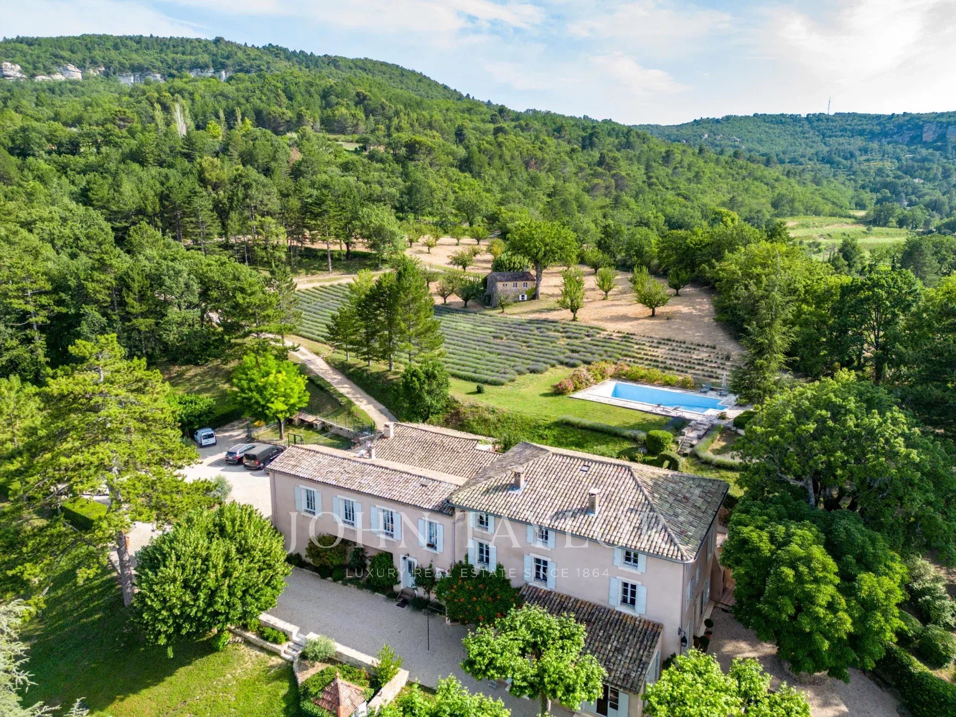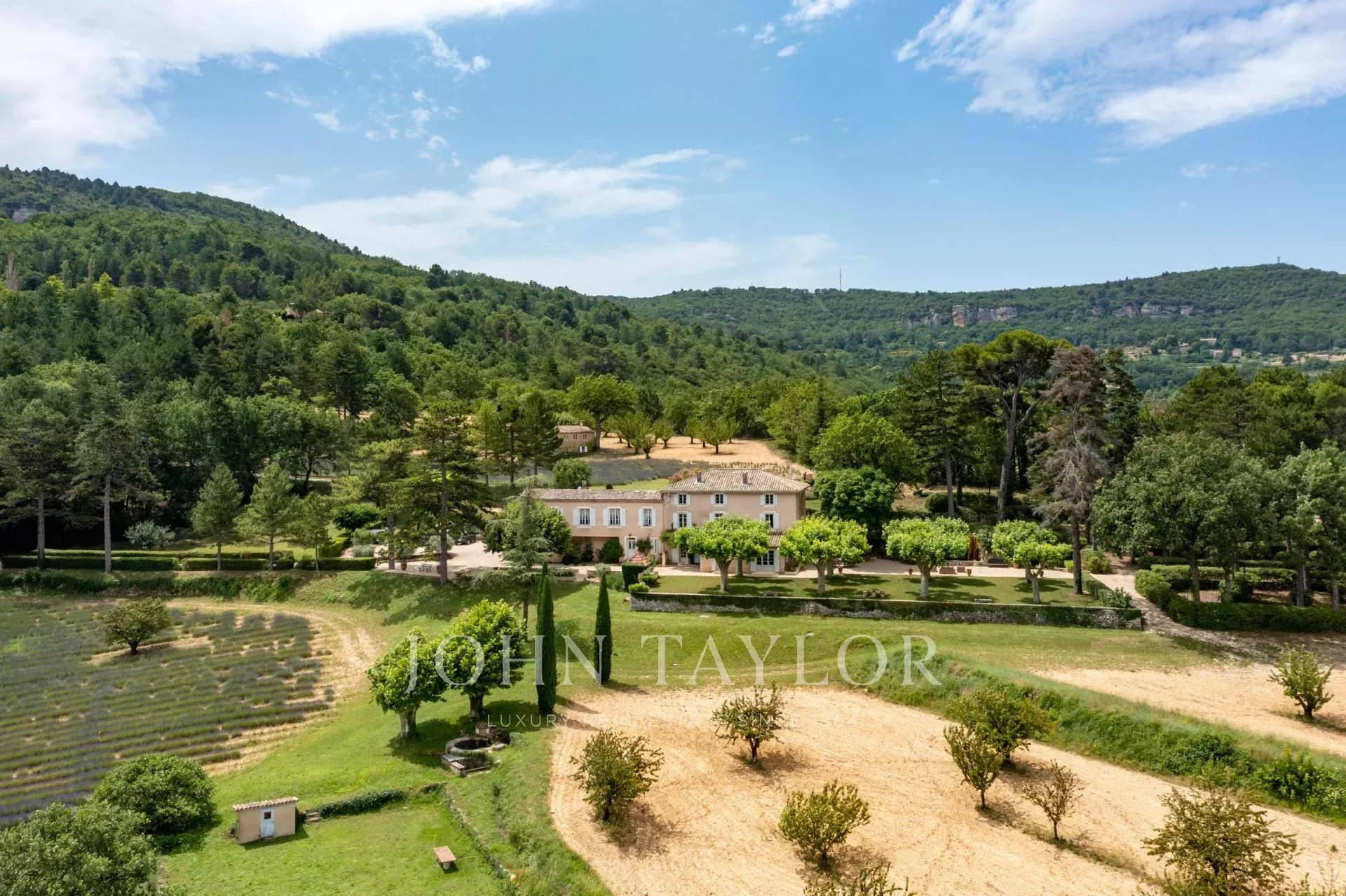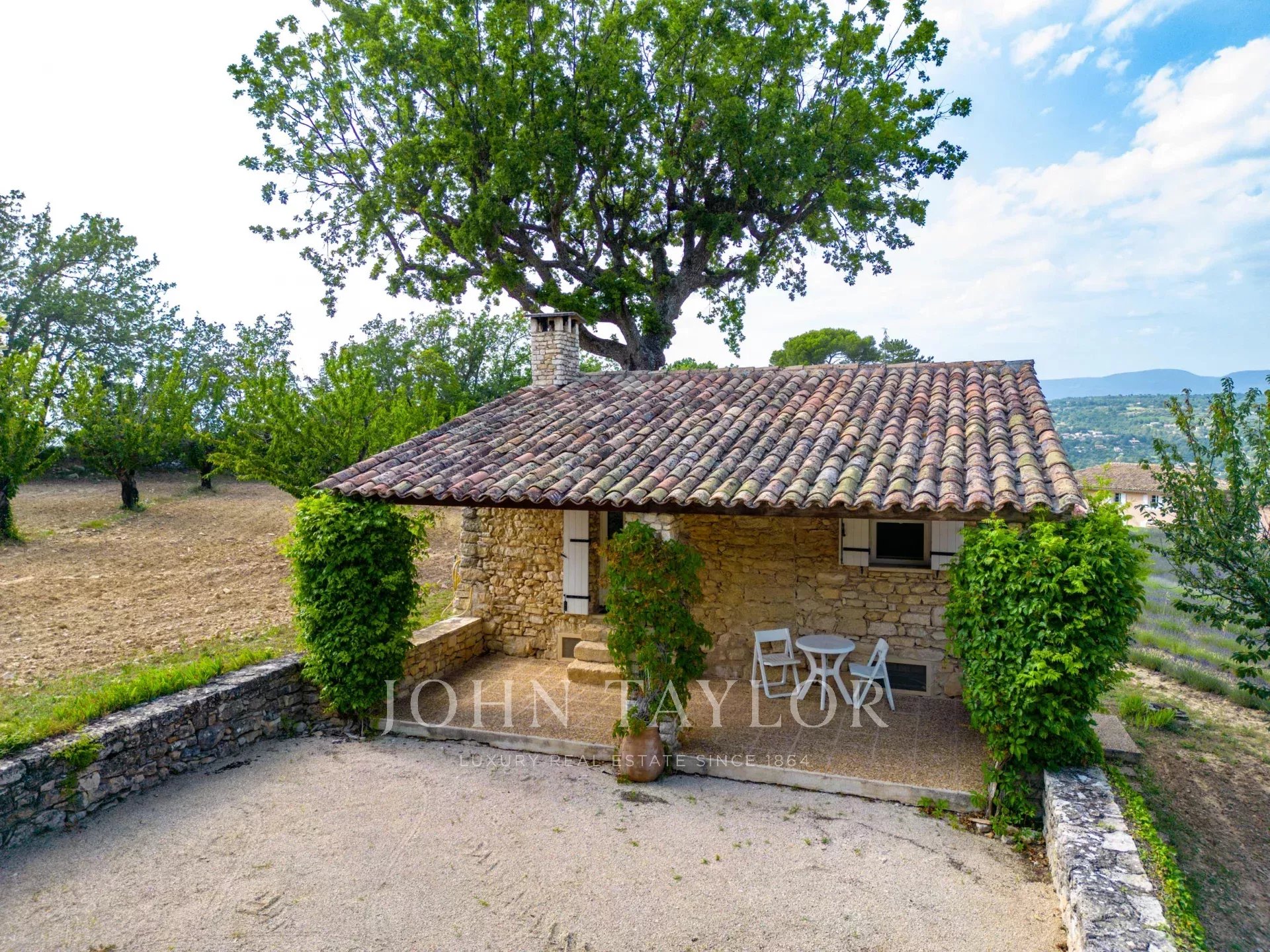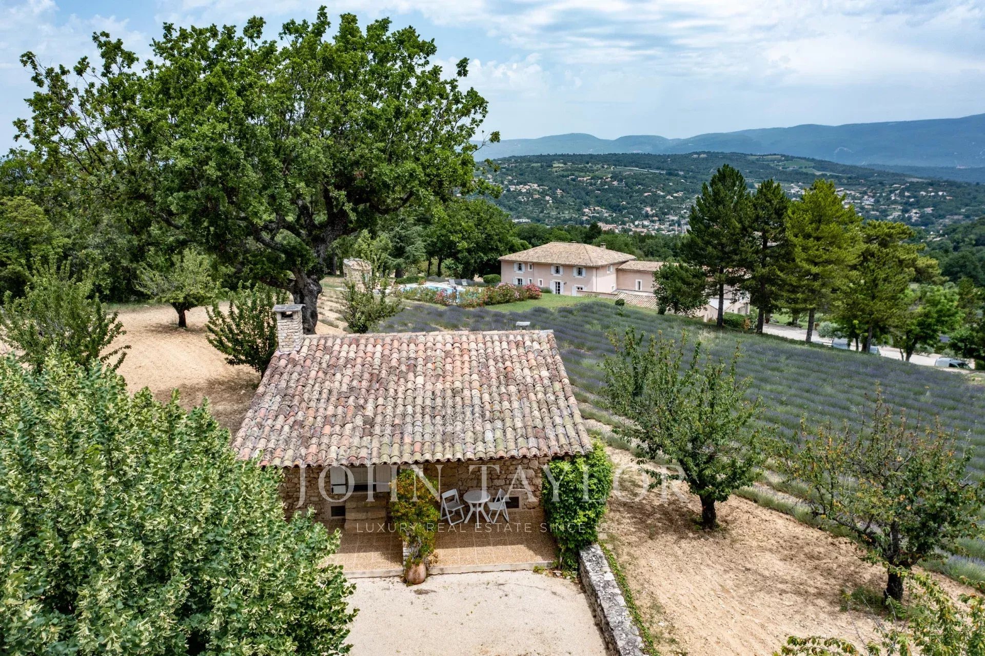 Provence. Luberon Nord. L'agence immobilière de prestige John Taylor Luberon Alpilles vous propose à la vente cette propriété rarissime, édifiée à l'époque romaine, située entre le village de Saignon et Apt. Elle se compose de 3 habitations sur un terrain de plus de 20 hectares de forêt, de chênes, de cerisiers, de lavandes, et de bien d'autres essences provençales, dans un cadre idyllique qui regorge d'histoire et de beauté. Une invitation à la contemplation !