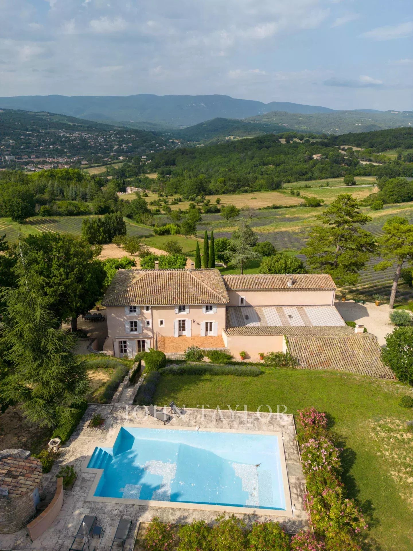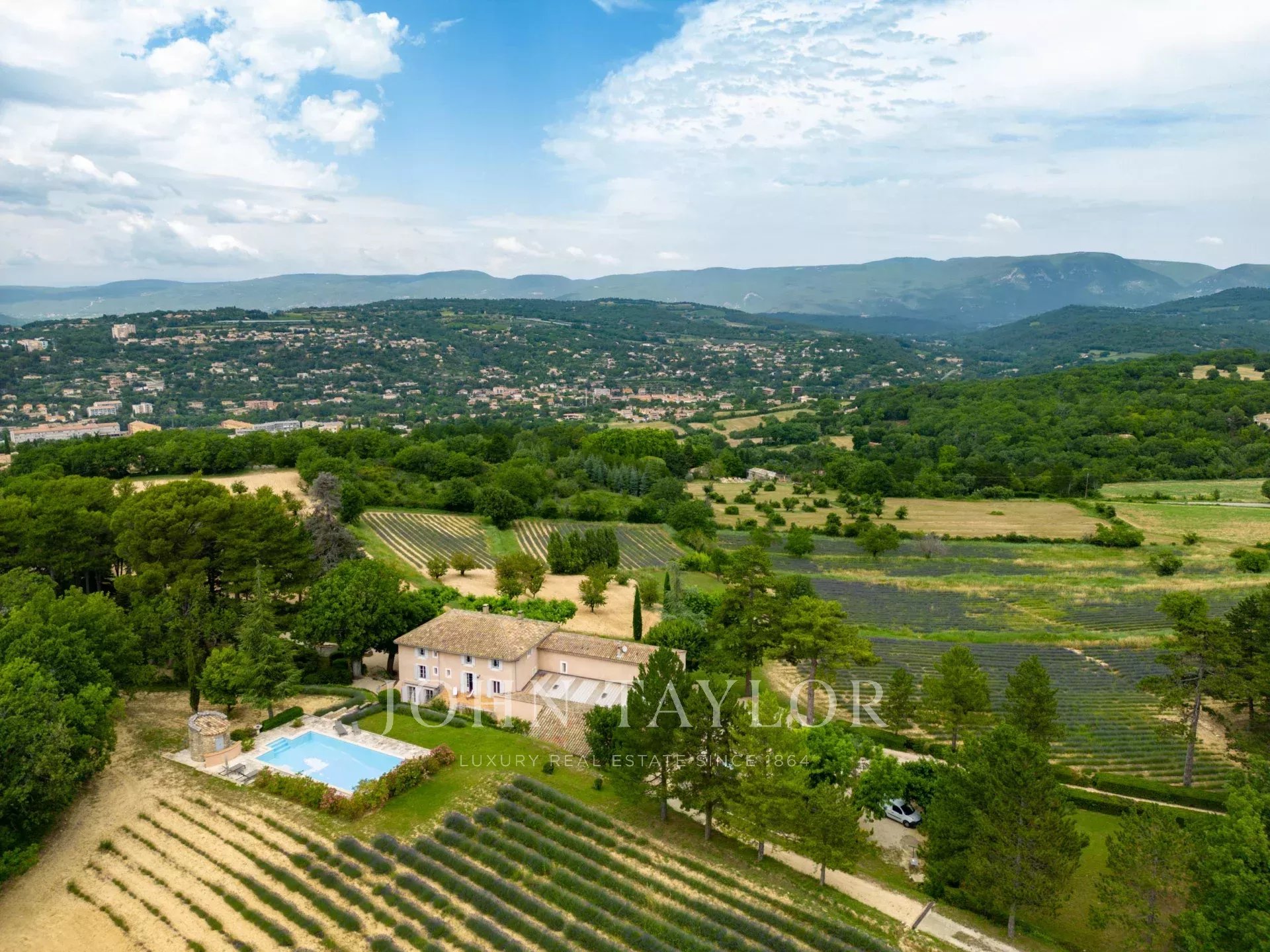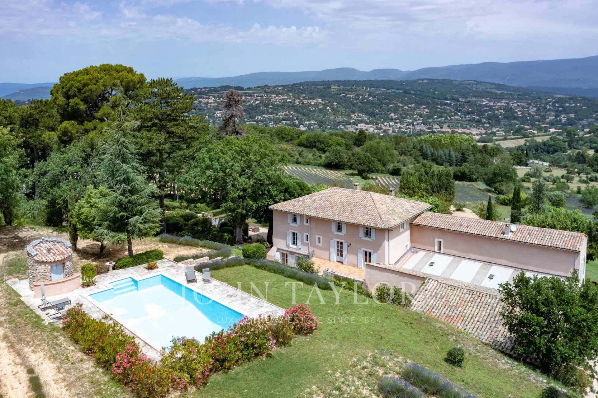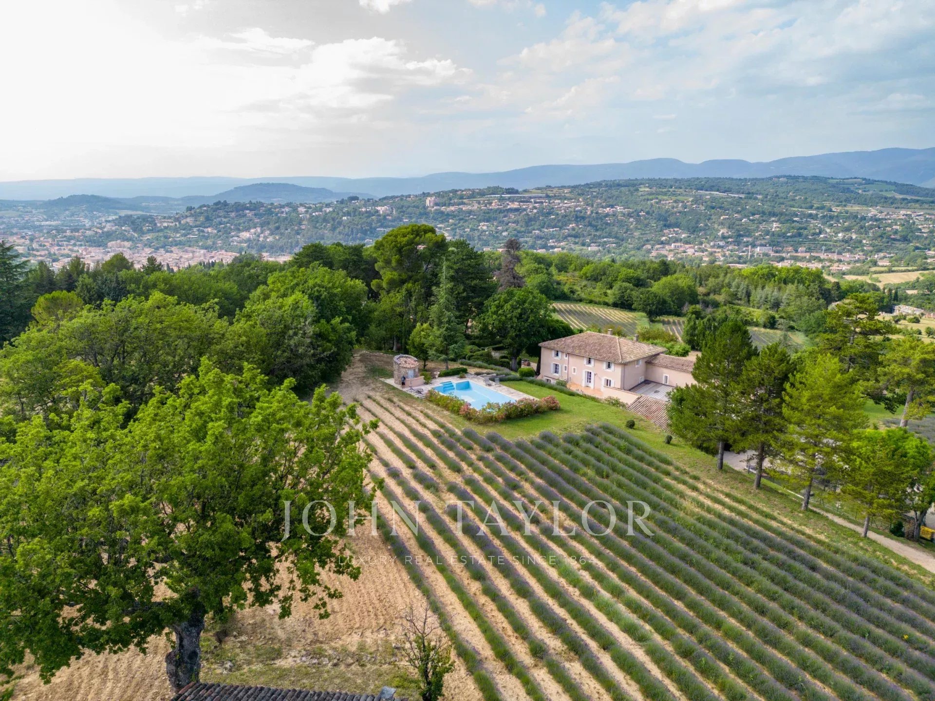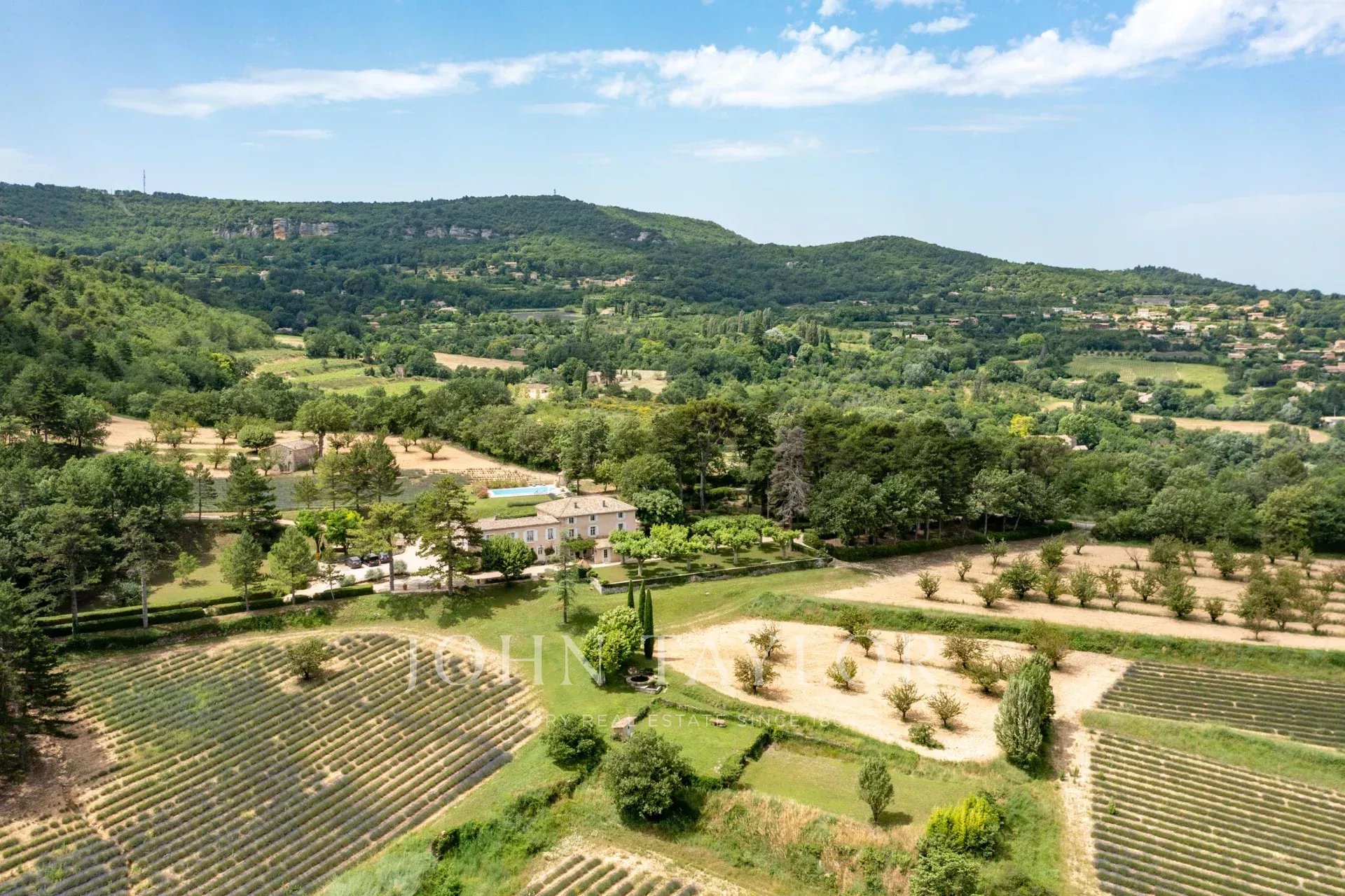 Provence. Luberon Nord. L'agence immobilière de prestige John Taylor Luberon Alpilles vous propose à la vente cette propriété rarissime, édifiée à l'époque romaine, située entre le village de Saignon et Apt. Elle se compose de 3 habitations sur un terrain de plus de 20 hectares de forêt, de chênes, de cerisiers, de lavandes, et de bien d'autres essences provençales, dans un cadre idyllique qui regorge d'histoire et de beauté. Une invitation à la contemplation !