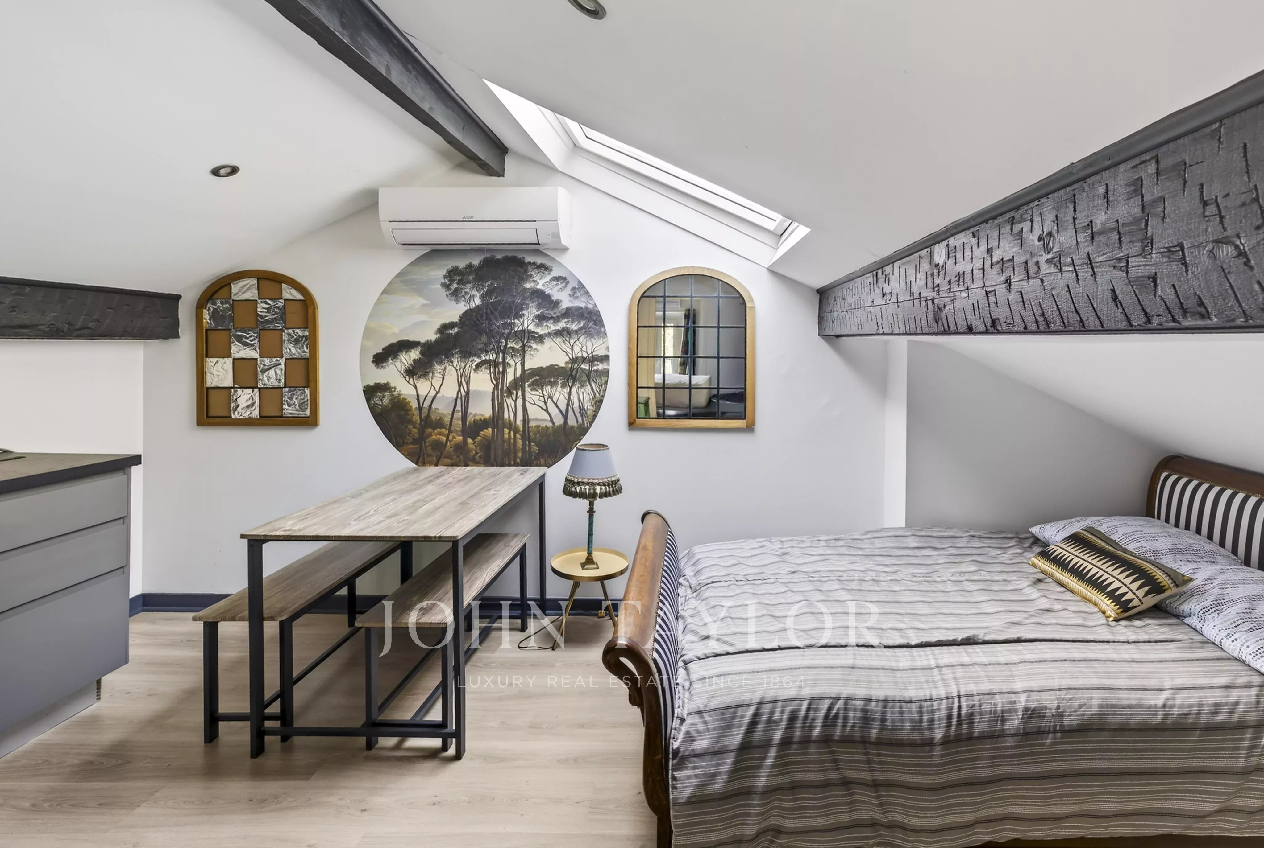 - Enfin au deuxième étage, un espace supplémentaire, mansardé, comprenant un coin cuisine, un salon, une chambre et une salle d’eau avec toilettes.