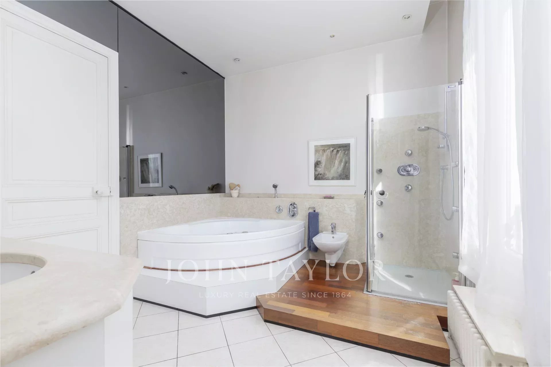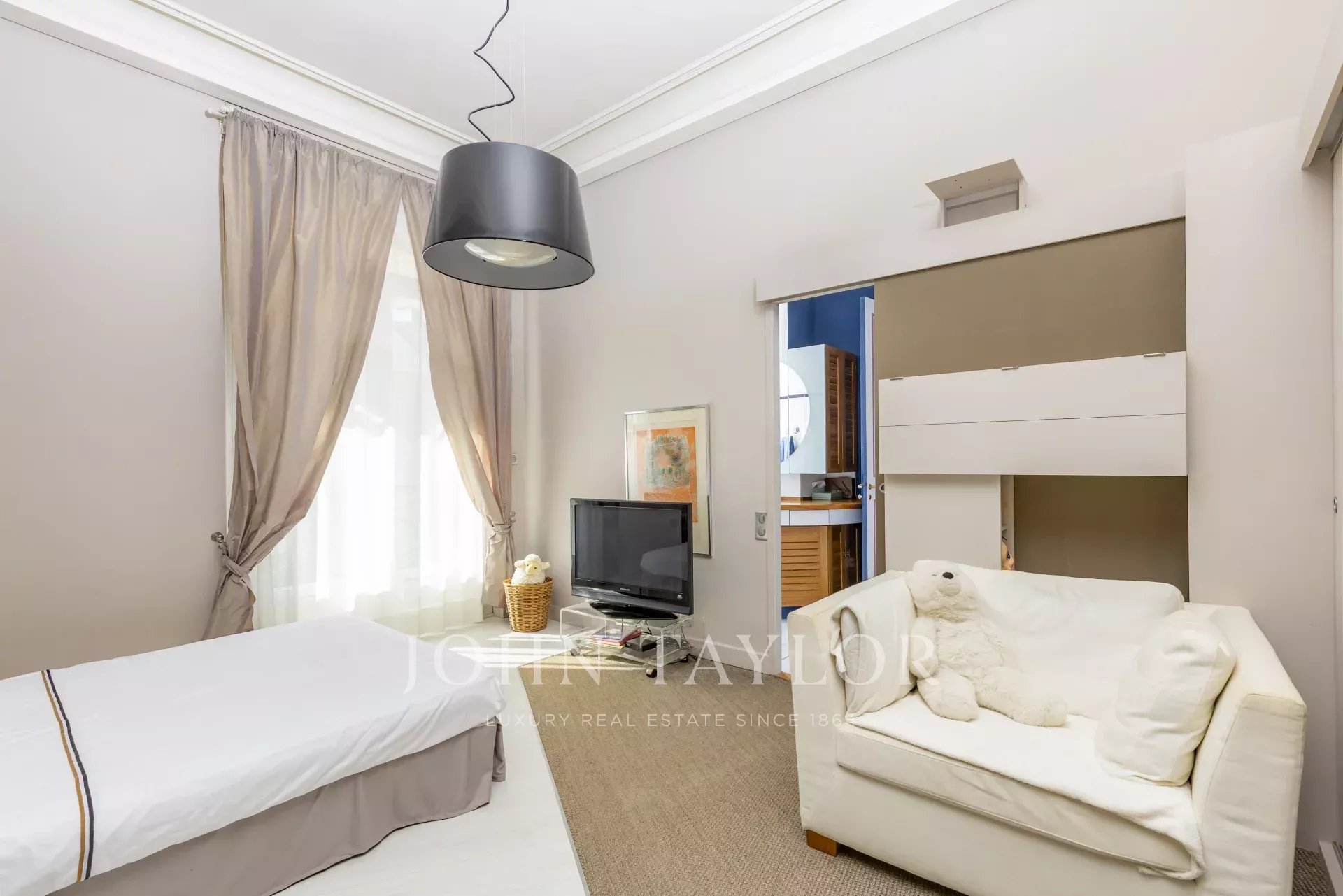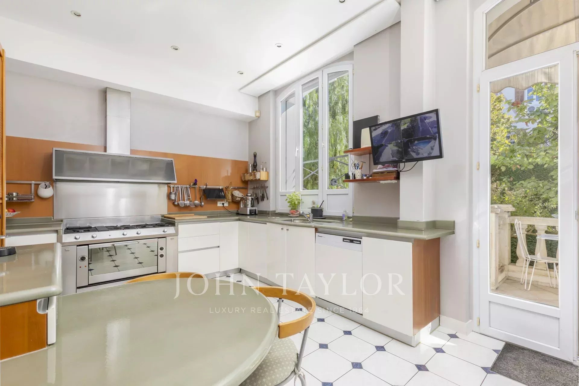 Édifiée sur une parcelle paysagée d’environ 1 000 m², la propriété développe plus de 500 m² habitables répartis sur quatre niveaux, tous desservis par un ascenseur intérieur. Elle offre de vastes pièces de réception aux volumes généreux, cinq chambres, ainsi qu’un studio indépendant d’environ 30 m², idéal pour recevoir famille ou invités.