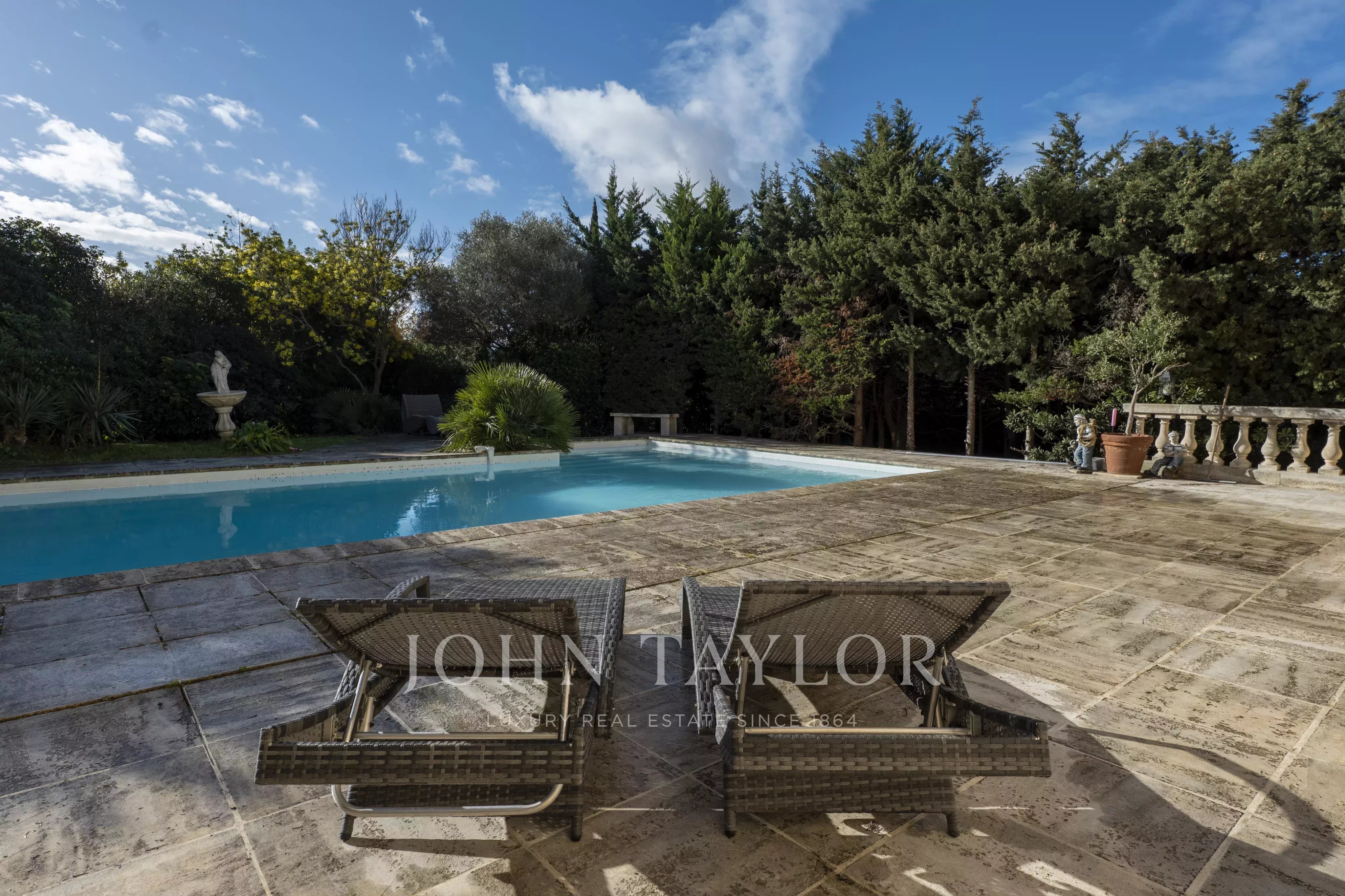 À l’extérieur, le terrain constitue un véritable atout patrimonial, rare sur le secteur, permettant d’envisager un projet d’extension ou de construction complémentaire. La piscine en béton armé avec filtration au chlore, le pool house et le garage d’environ 50 m² viennent parfaire les prestations de cette propriété raccordée au tout-à-l’égout.