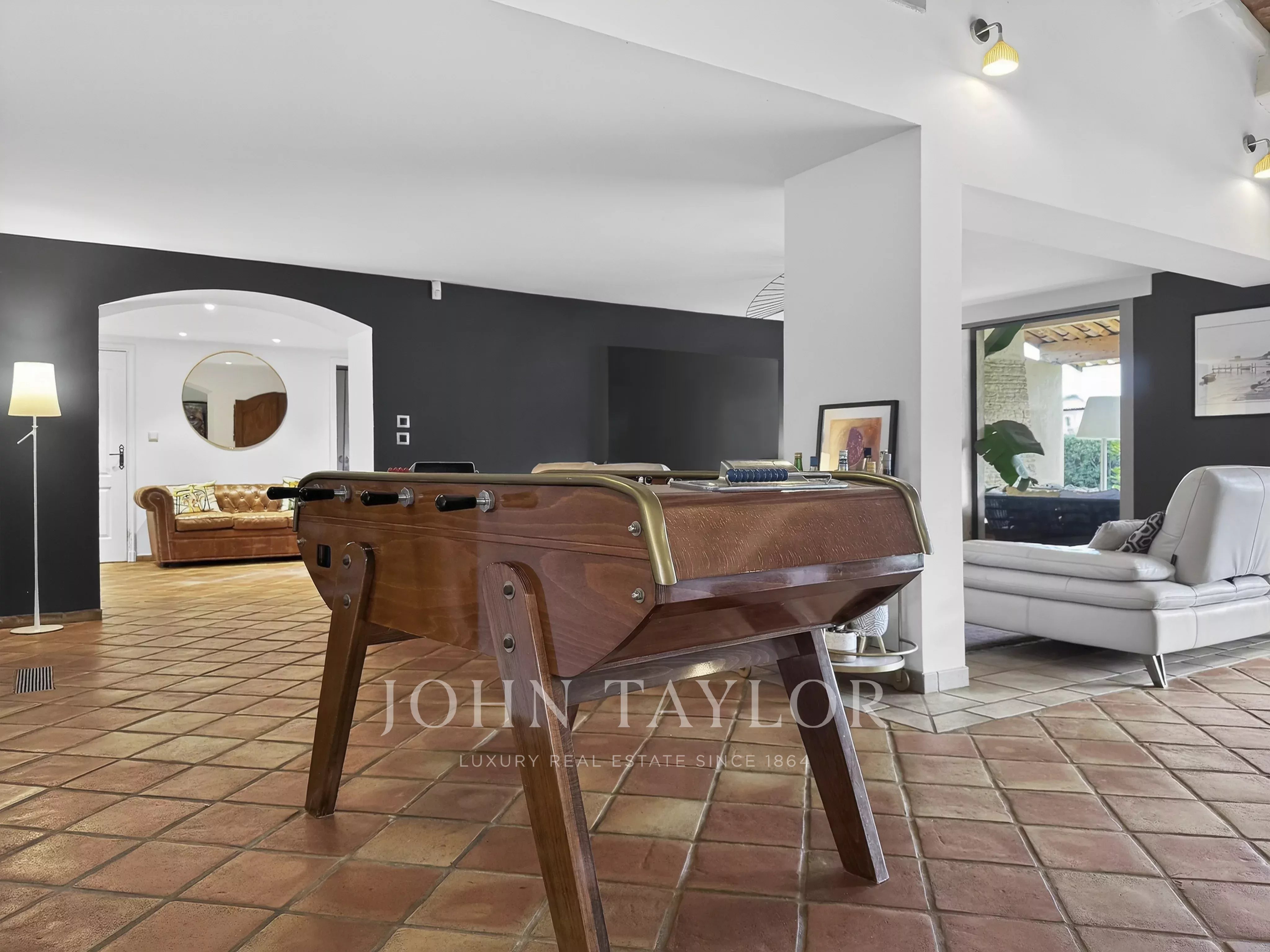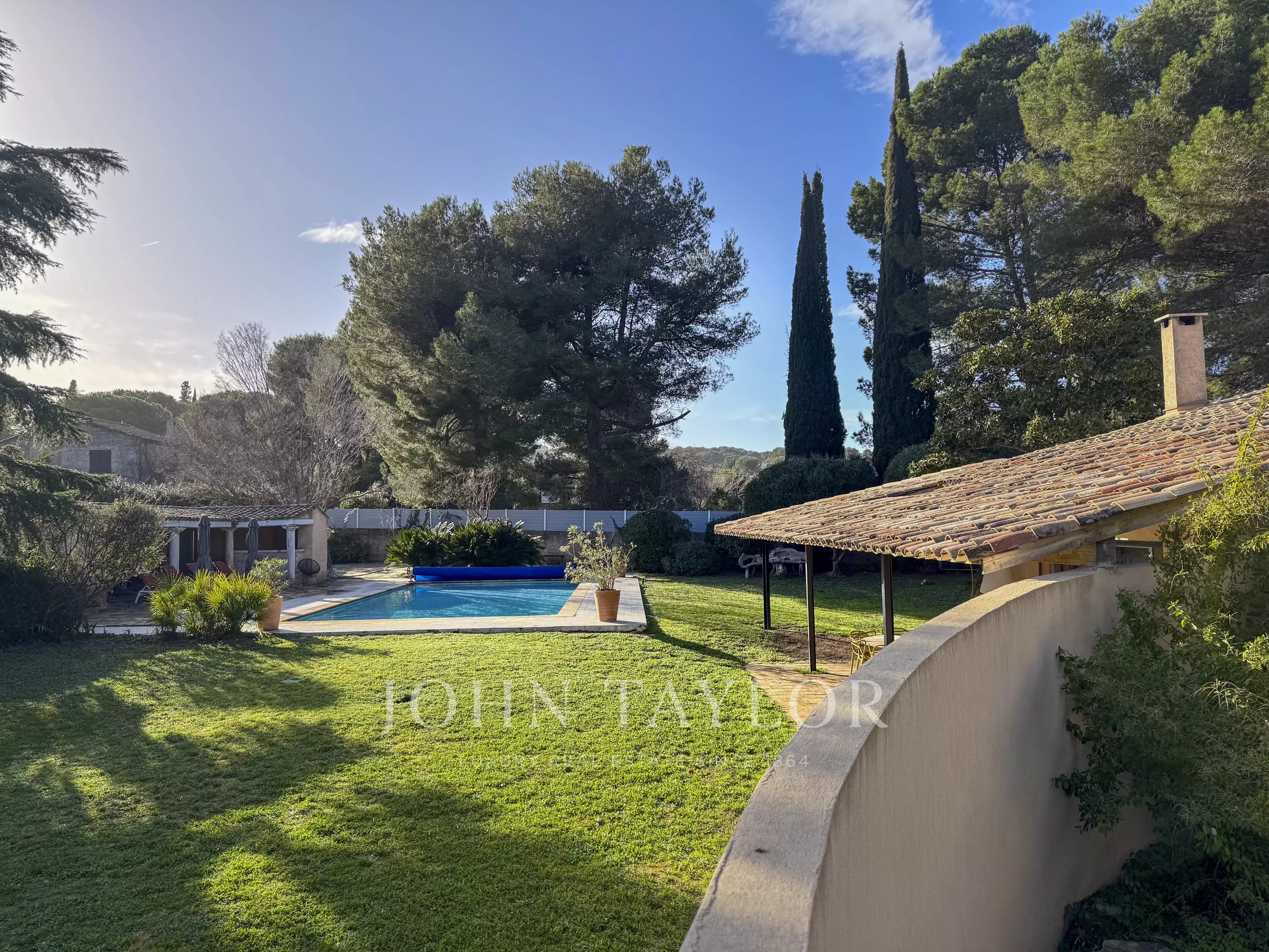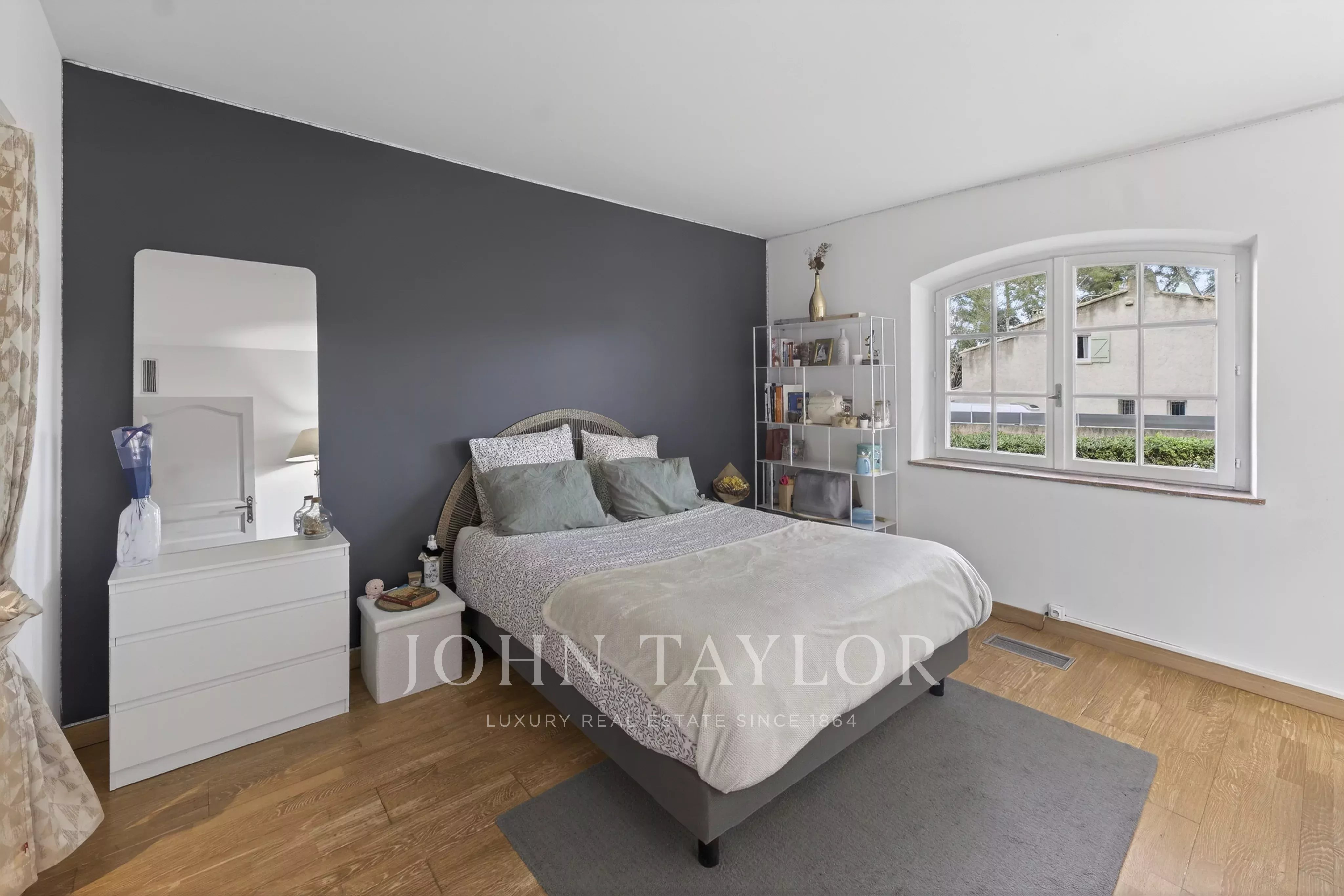 À l’extérieur. le parc paysager offre un environnement naturel préservé. propice à la détente. Une piscine chauffée avec pool house et cuisine d’été permet de profiter pleinement des beaux jours. tandis que des abris pour voitures et un atelier complètent les prestations.