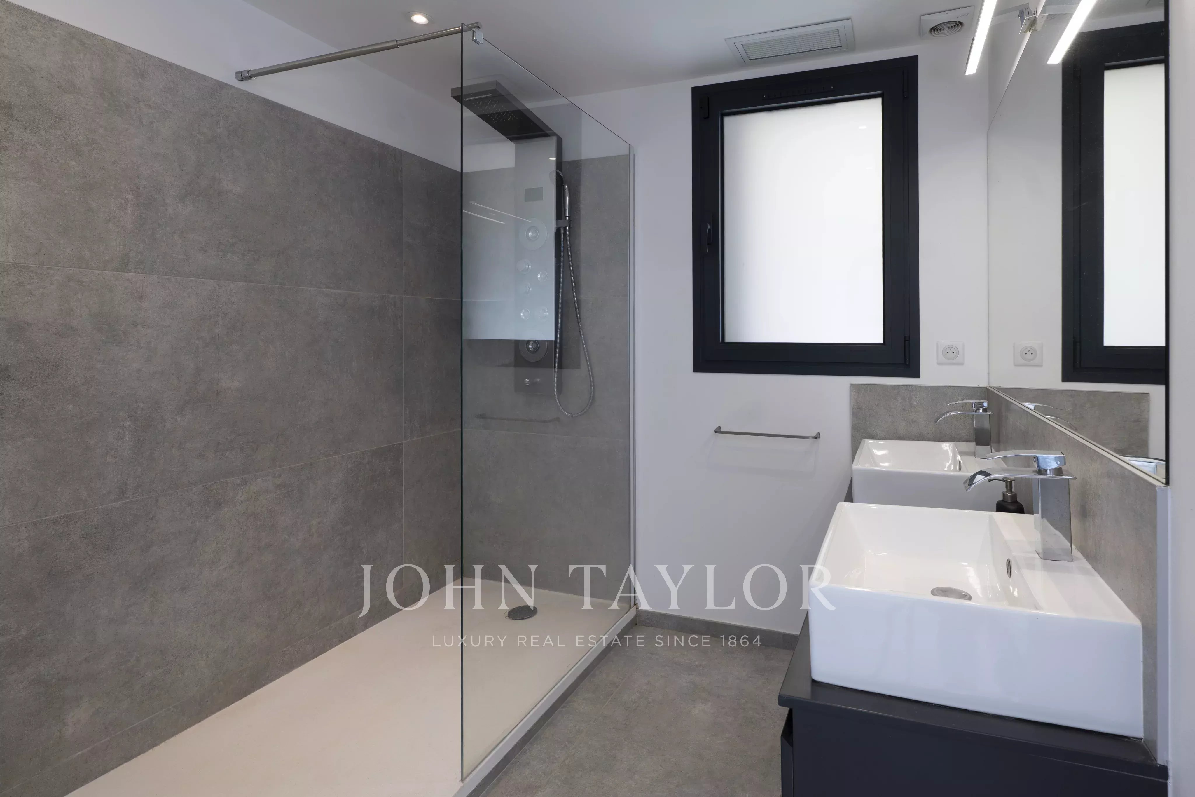 Signature unique du bien, le rooftop aménagé avec jacuzzi dévoile une vue panoramique sur la mer, constituant un espace privilégié pour se détendre ou recevoir dans un cadre exceptionnel.