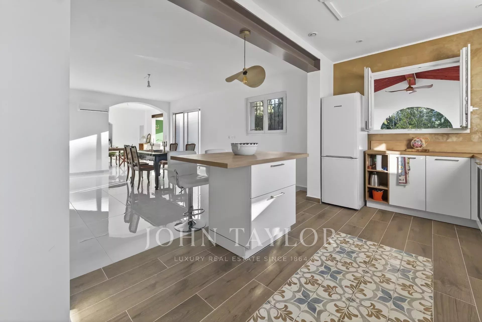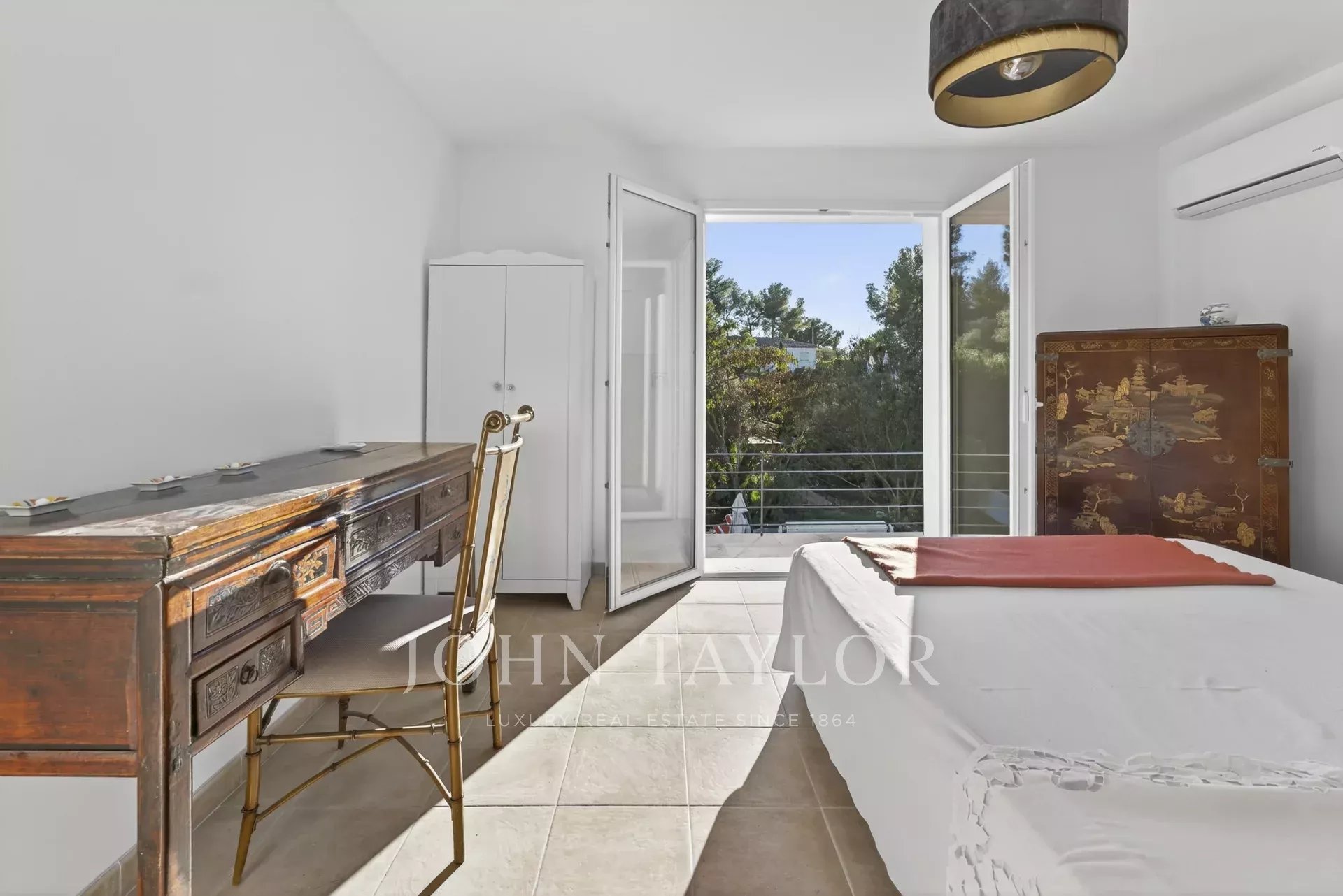 L’agence John Taylor Sanary vous présente à Sanary-sur-Mer, à seulement 5 minutes à pied des plages et 10 minutes du port de Bandol, une élégante villa familiale T6 de 183 m², entièrement rénovée, édifiée sur un terrain clos et paysager de 1 215 m², offrant de très belles prestations.