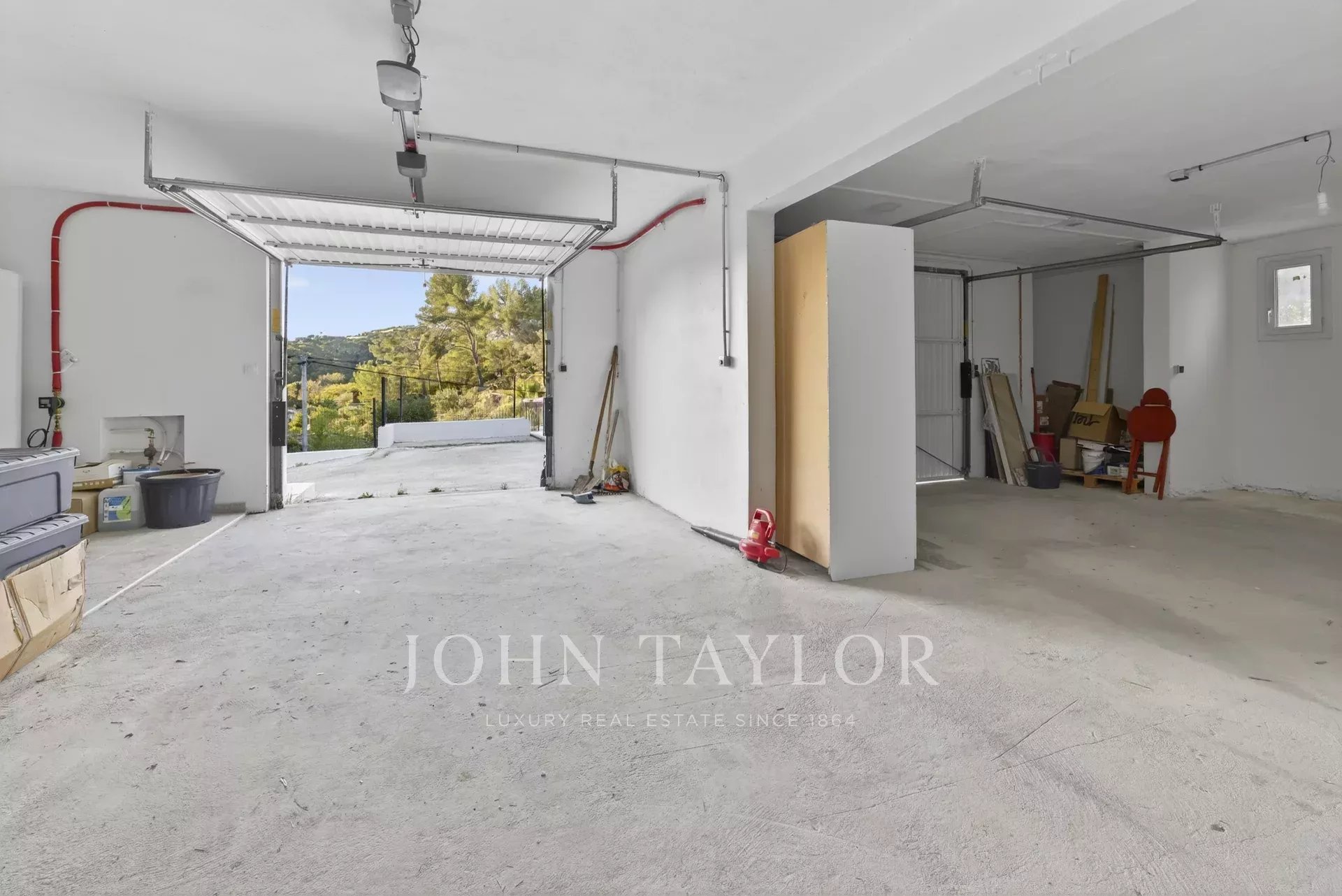 En rez-de-jardin, un double garage de 60 m² accessible depuis l’intérieur complète l’ensemble, ainsi qu’un espace buanderie.