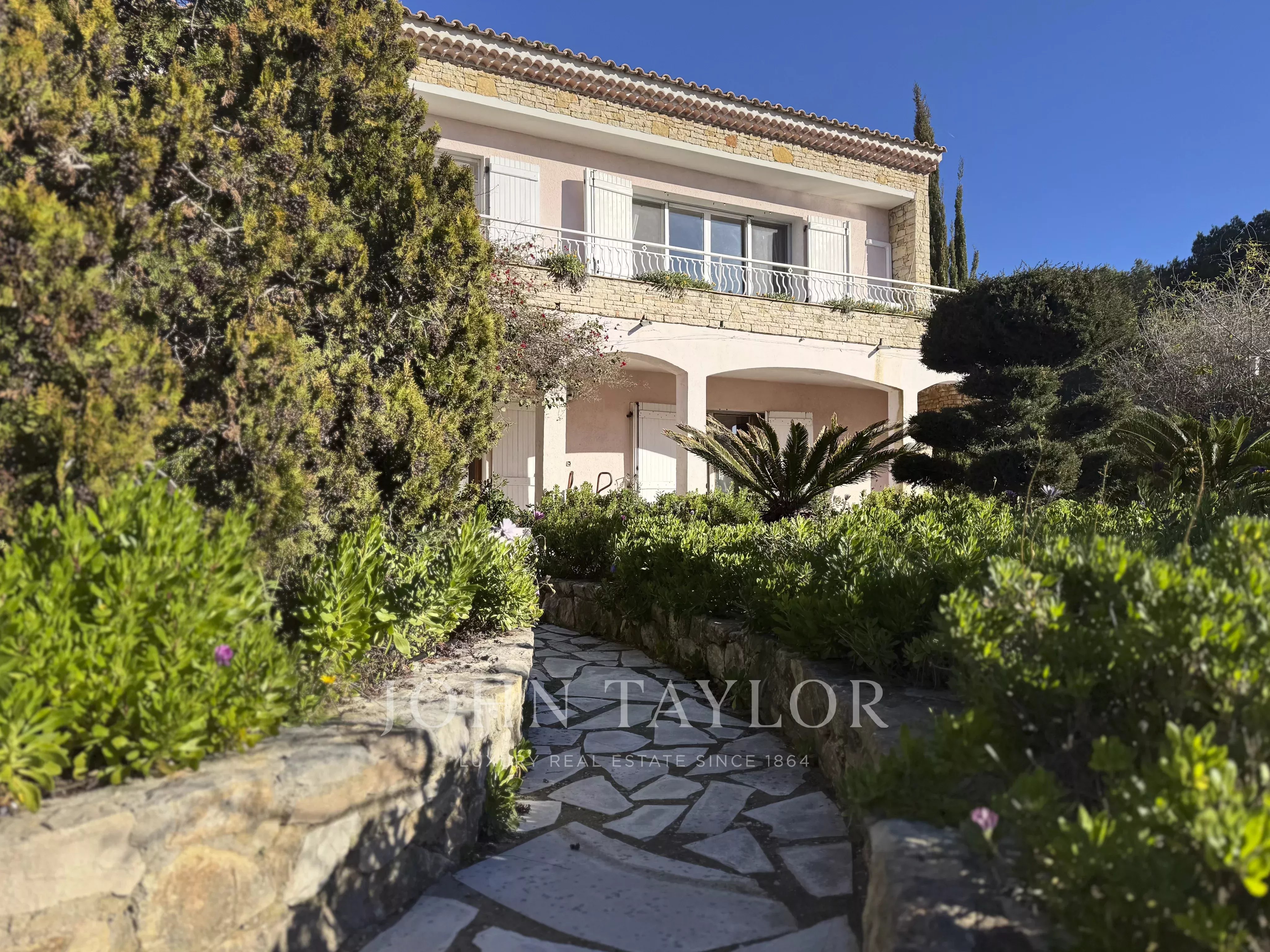 L’agence John Taylor Sanary vous présente, dans le secteur recherché de La Cride à Sanary-sur-Mer, à proximité des plages et du port, cette propriété exposée plein sud bénéficiant d’une belle vue mer, développant environ 290 m² sur deux niveaux, édifiée sur un terrain plat d’environ 2 000 m² avec piscine.