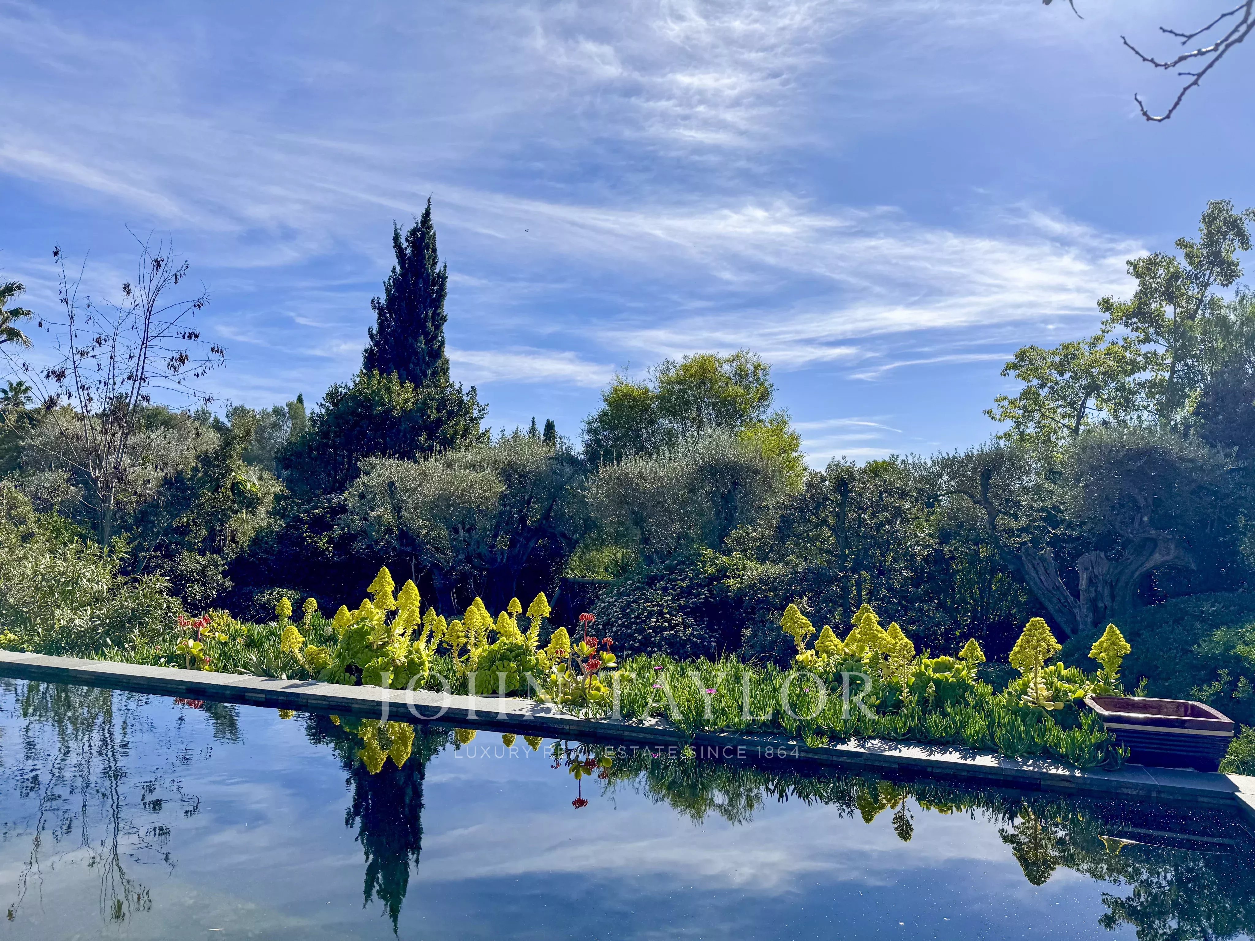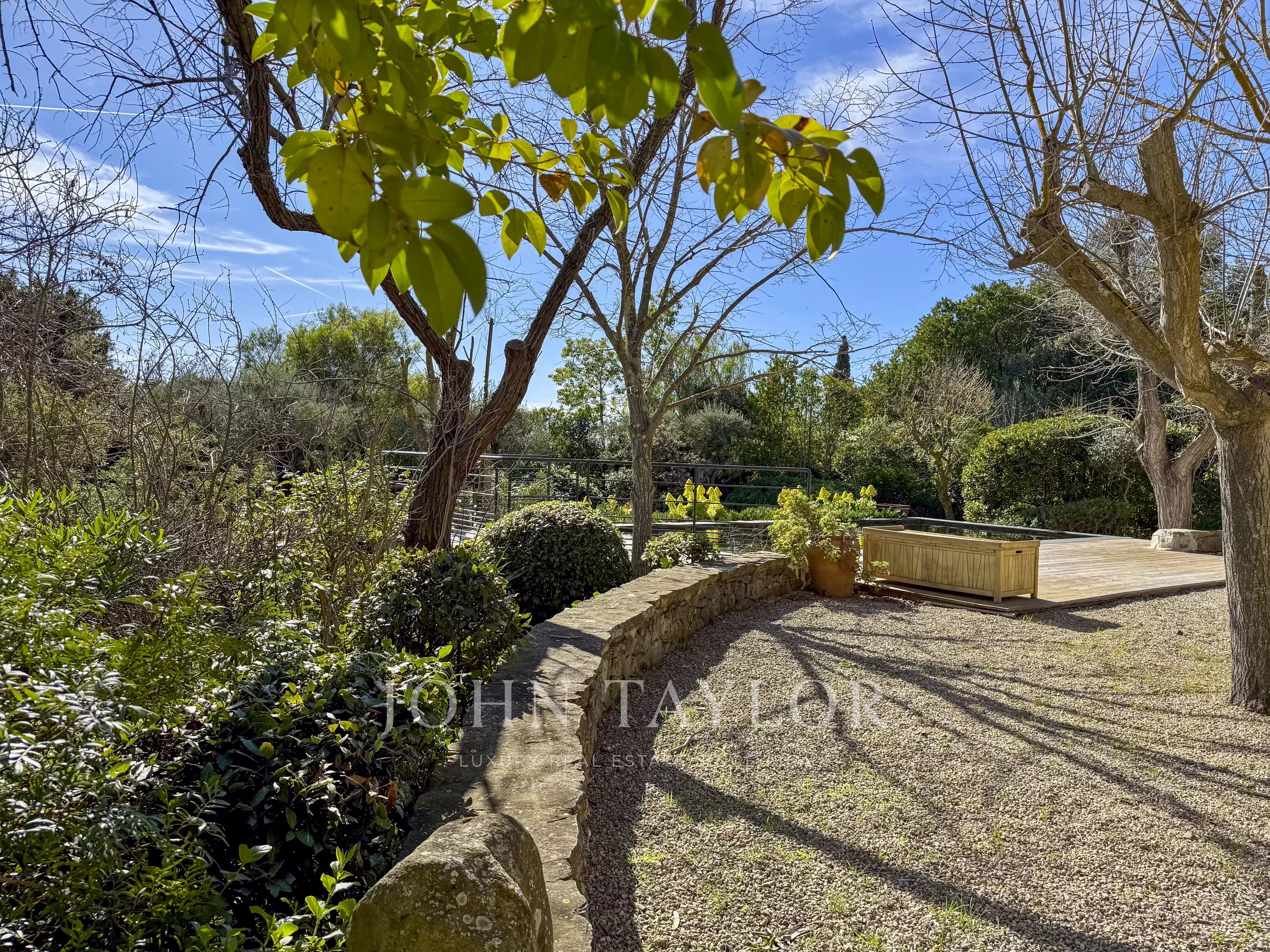 Les extérieurs sont soignés et bien structurés : jardin paysager aux ambiances naturelles, piscine de style balinais, plusieurs terrasses ombragées et espaces de détente.