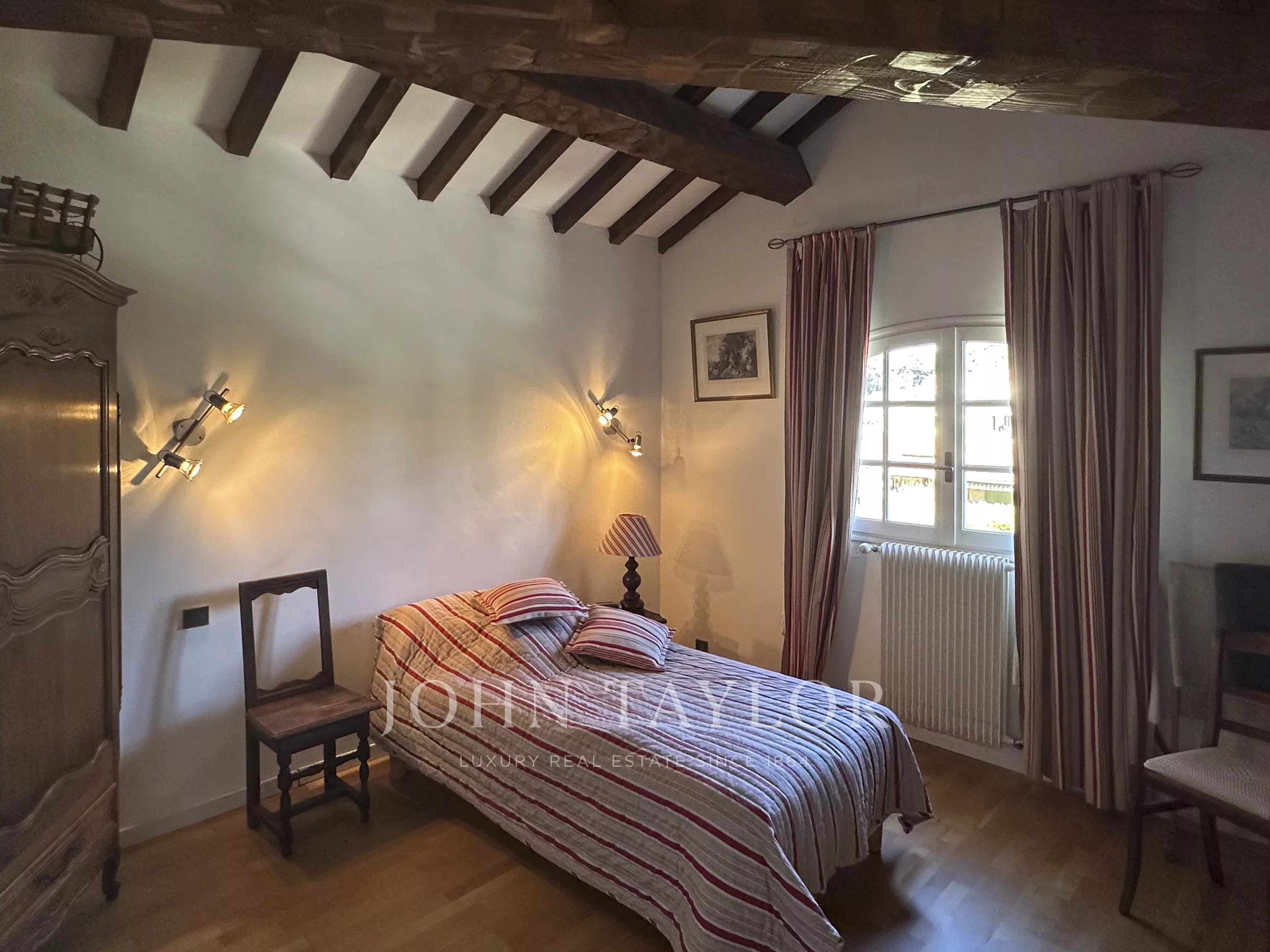 À l’extérieur, le jardin luxuriant invite à la détente, avec de vastes terrasses ensoleillées et une grande piscine, véritable cœur de vie aux beaux jours.