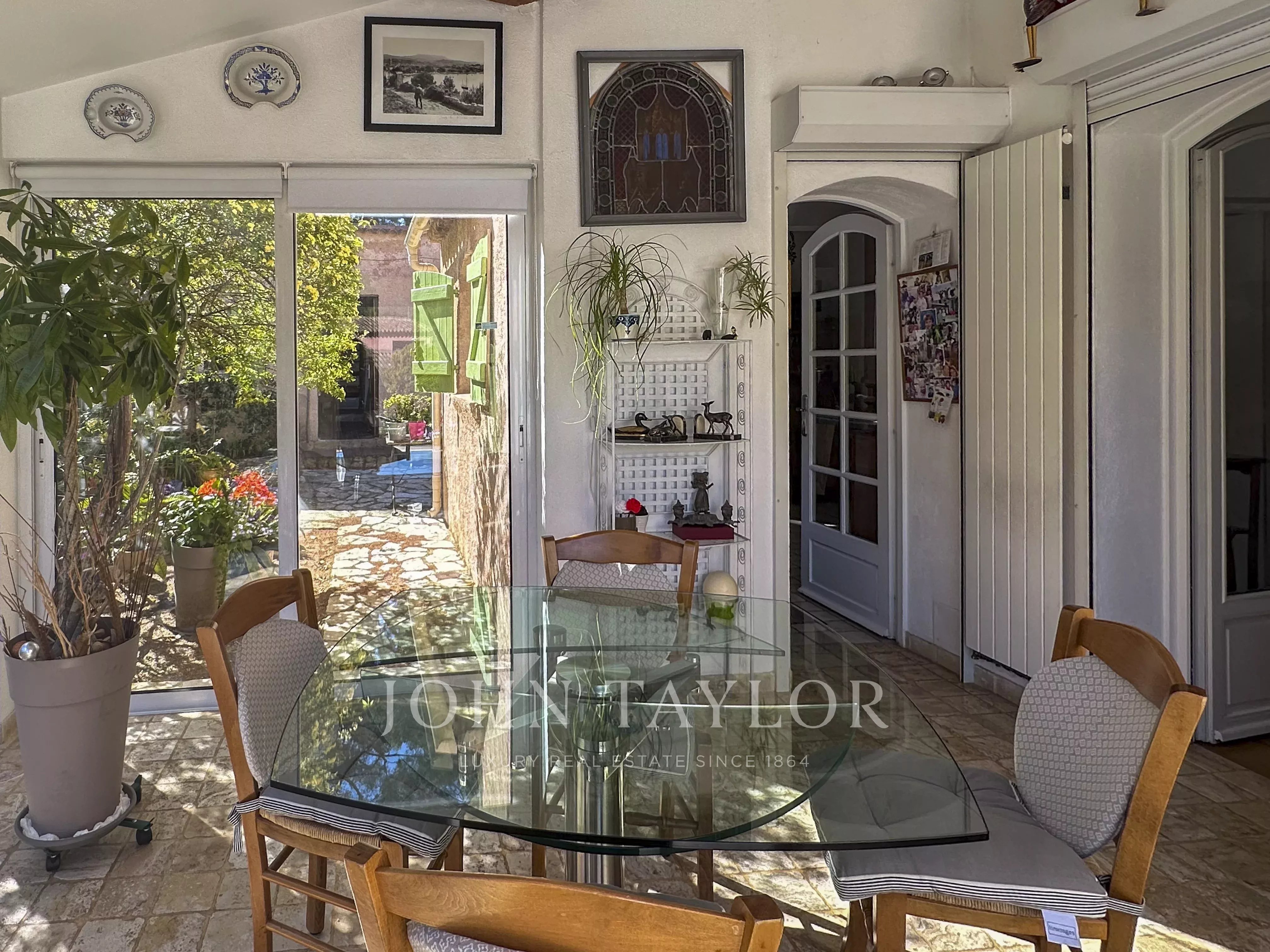 Implantée sur un terrain paysager d’environ 985 m², la propriété développe environ 170 m² habitables et séduit par ses volumes généreux et son atmosphère authentique provençale.