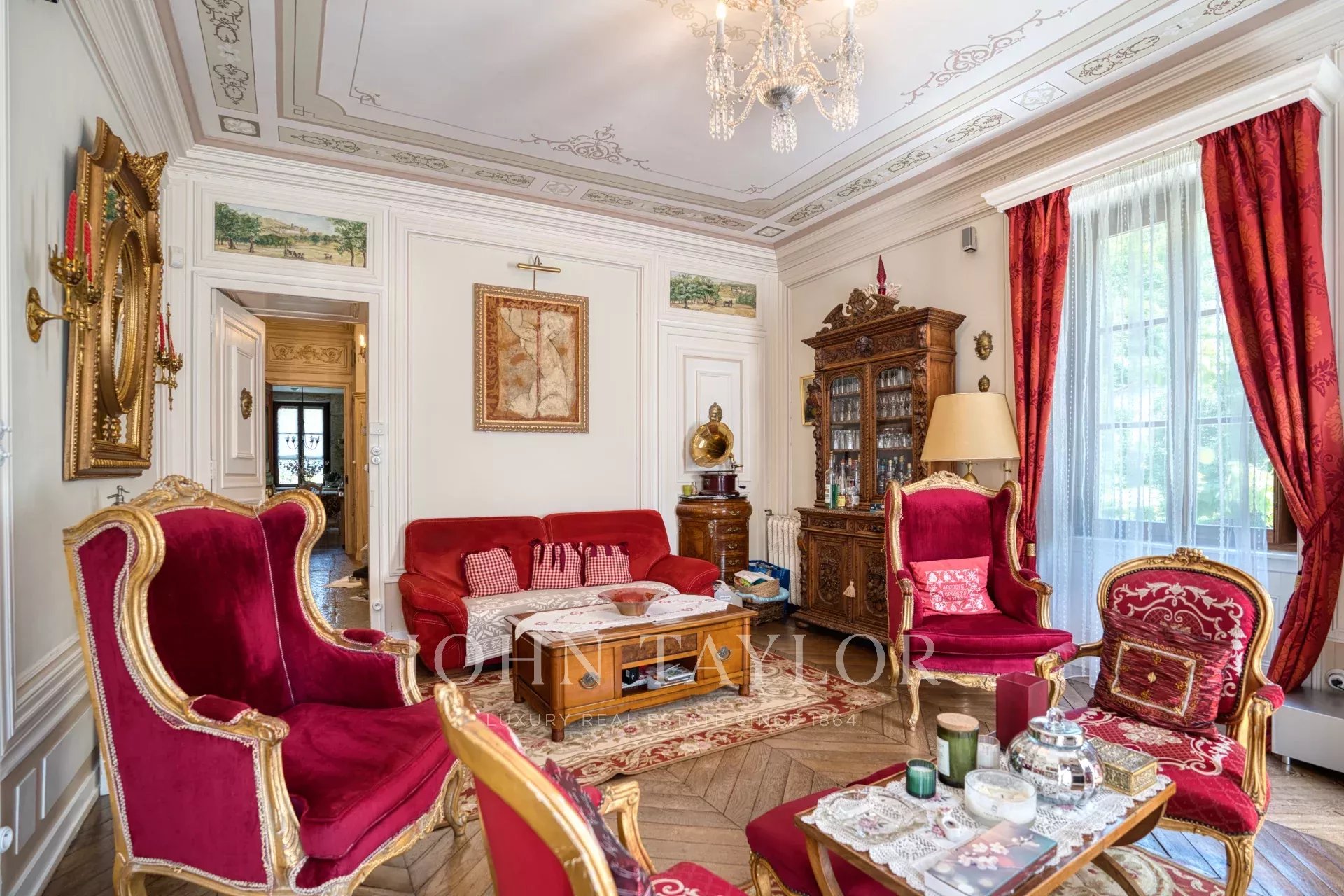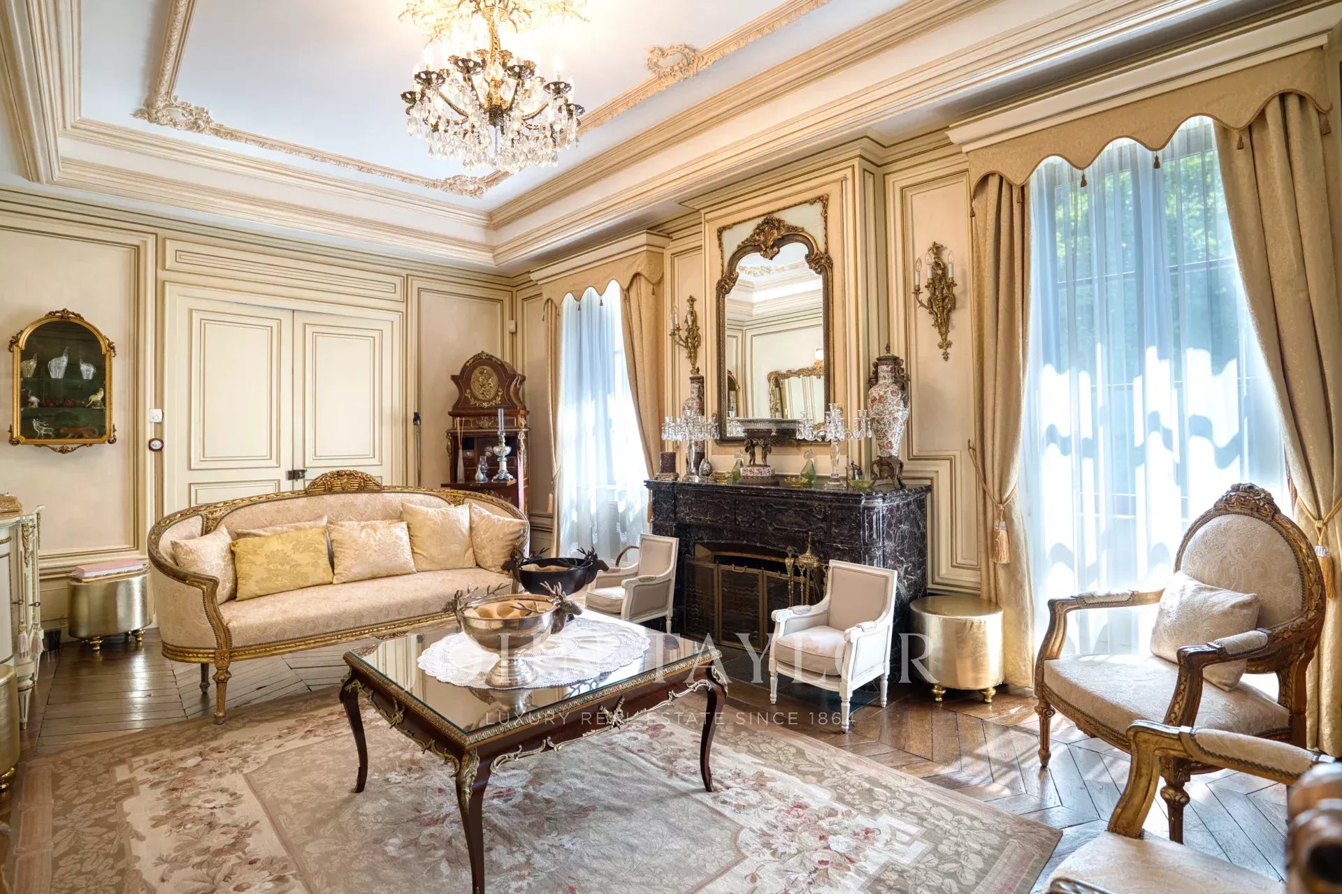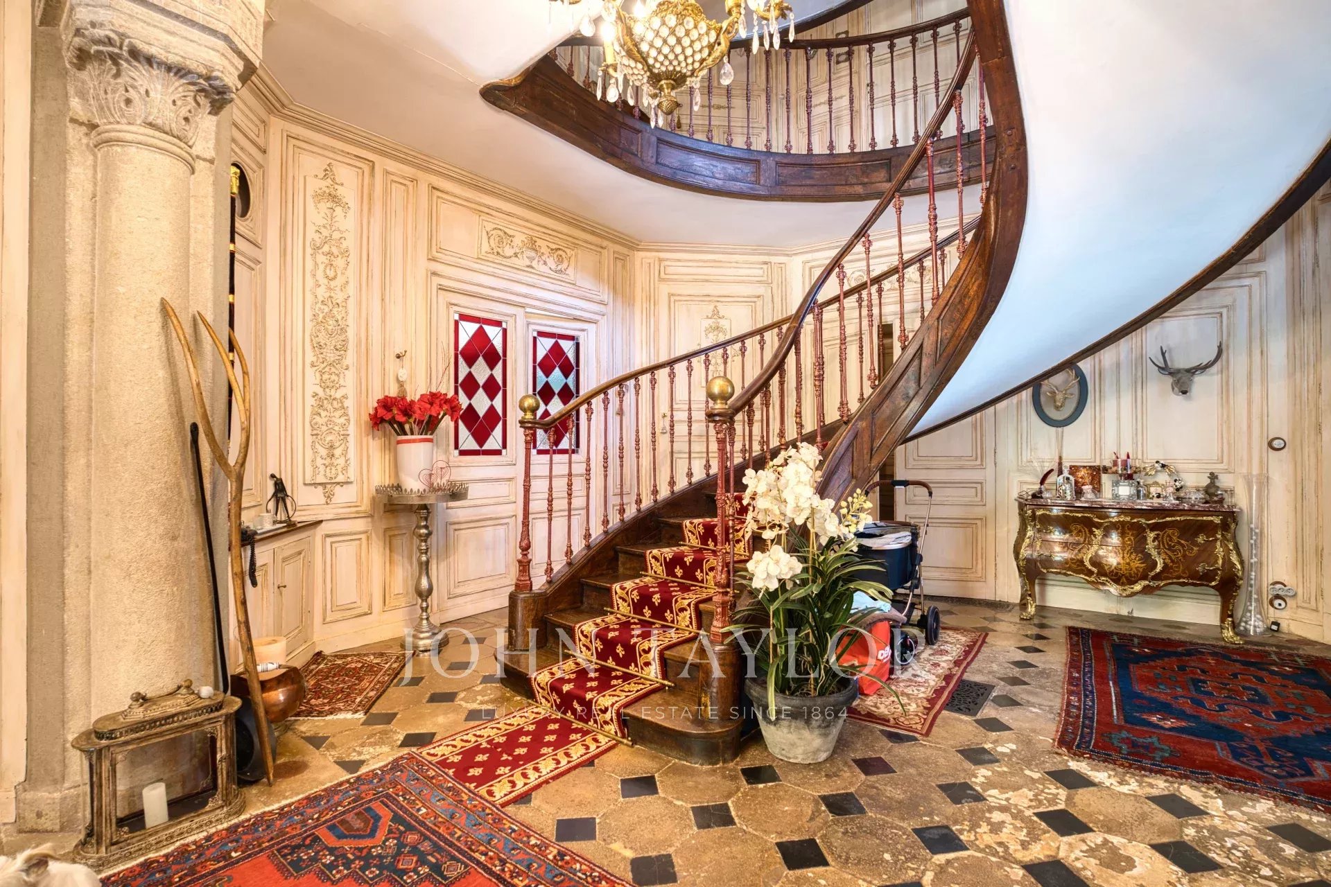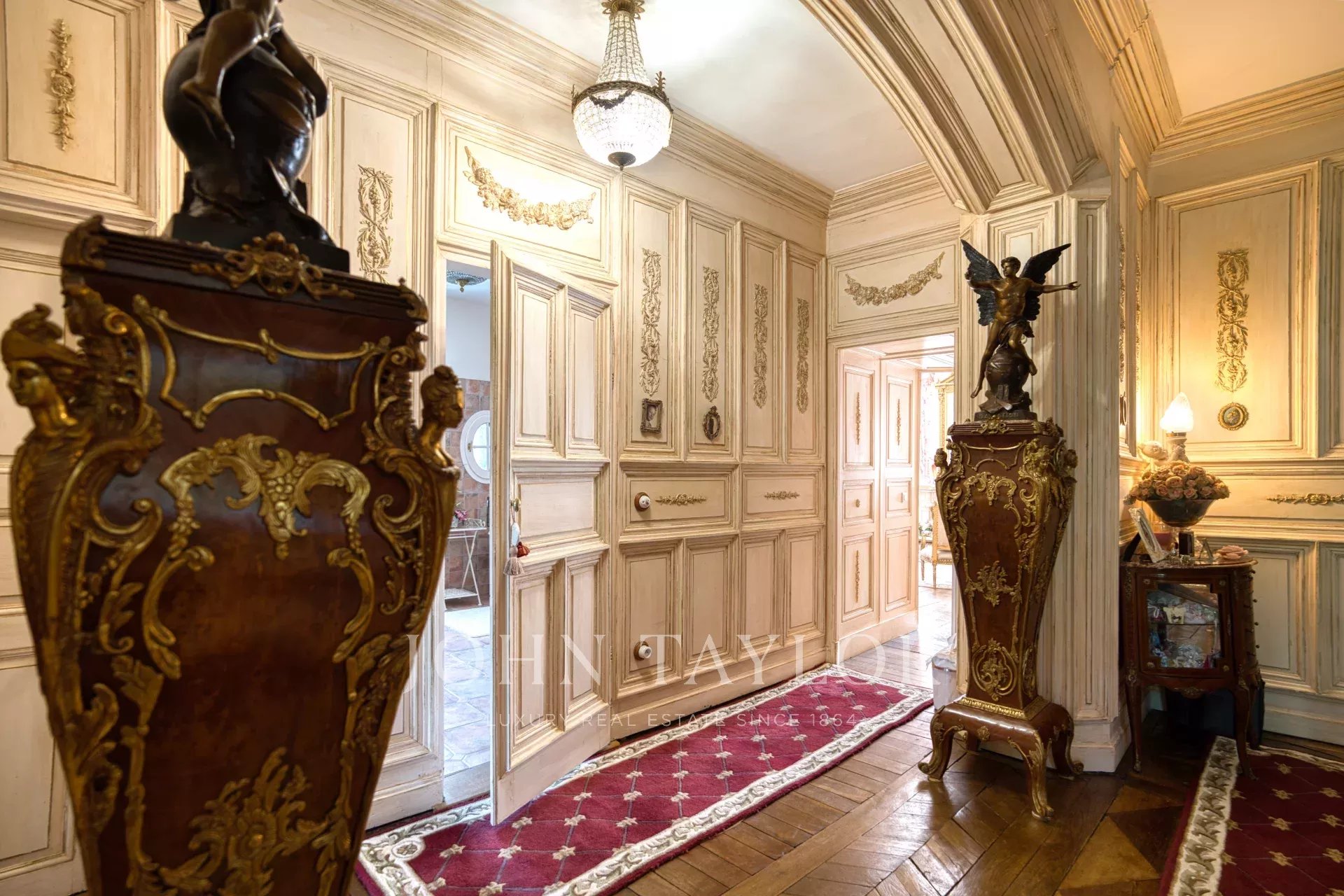 Au rez-de-chaussée, se trouvent les pièces de vie : plusieurs salons, la salle à manger, une grande cuisine donnant sur la terrasse ombragée et une salle de billard.