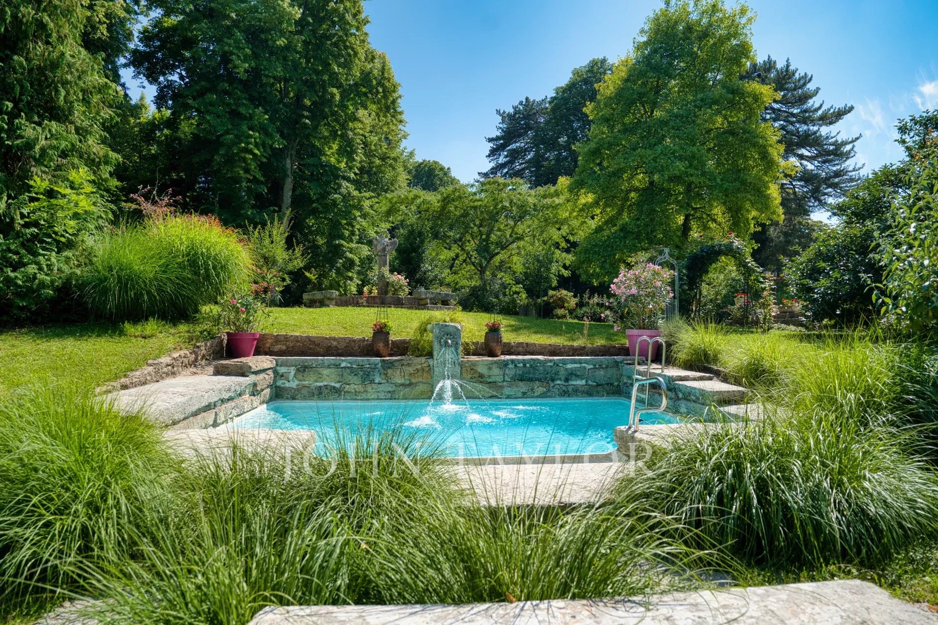 Des arbres centenaires composent le parc, ainsi que des prairies. La propriété est close de murs. Ce bien d’exception est relié au tout à l’égout, le chauffage central est assuré par une chaudière au fioul.