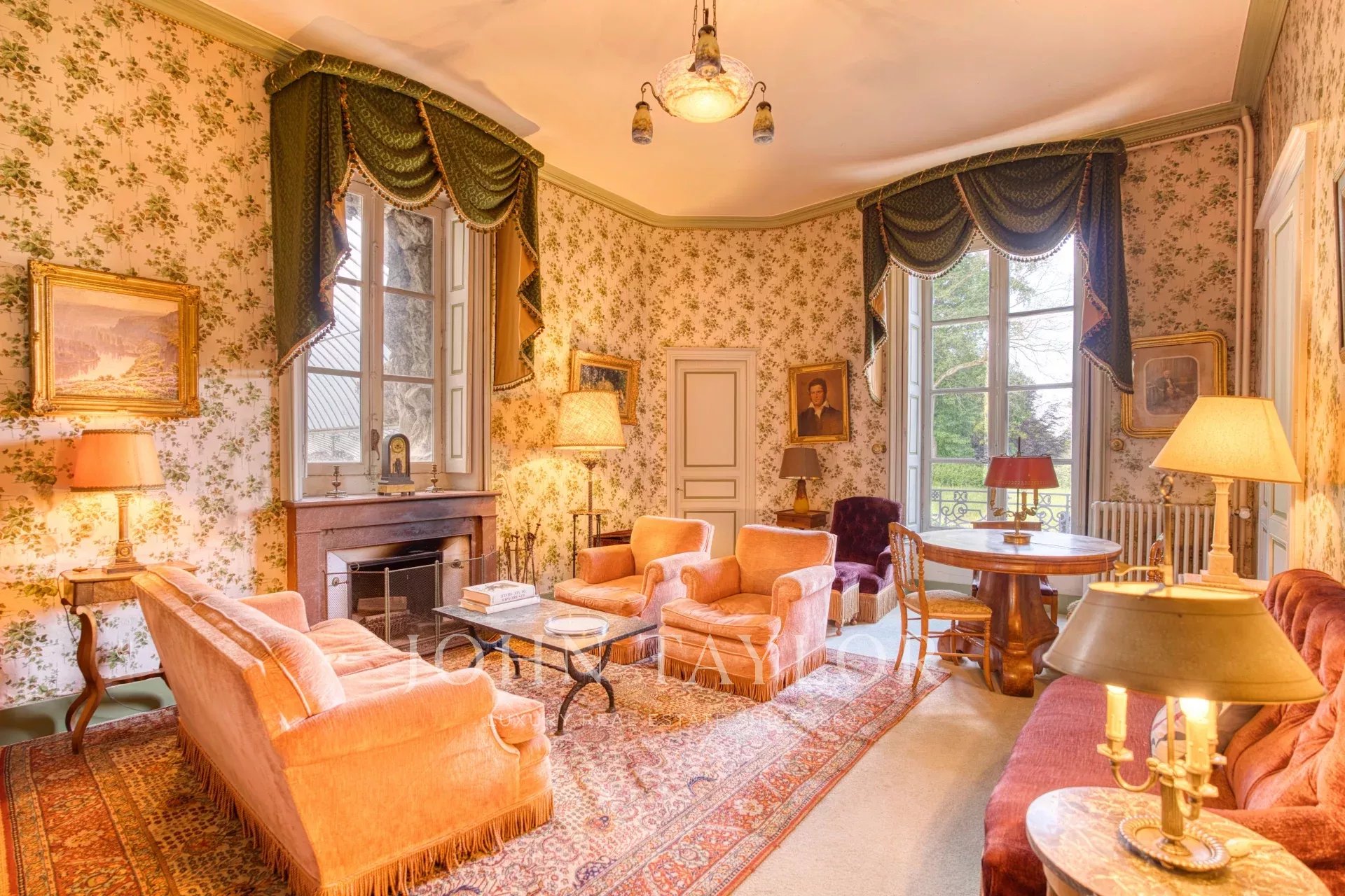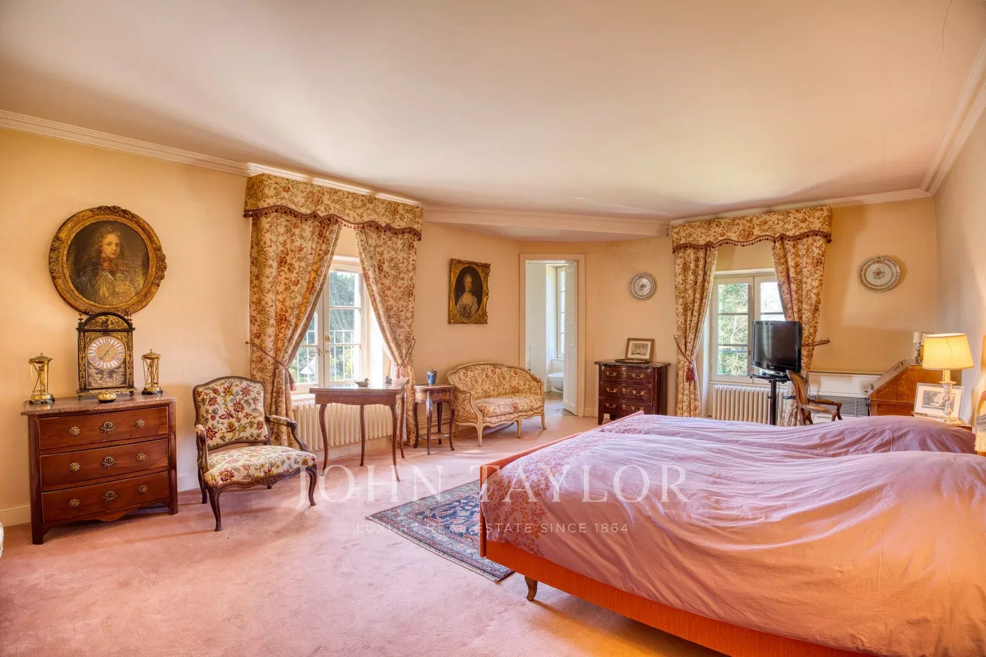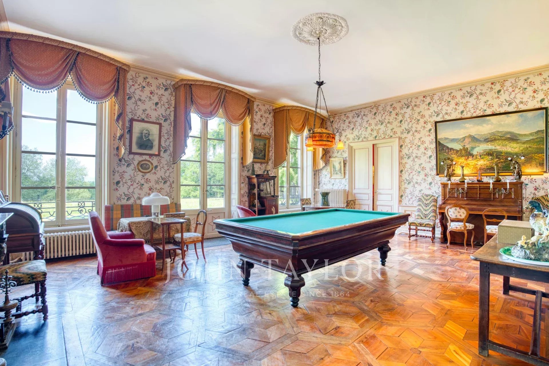 Cette vaste propriété se compose du bâtiment principal, le Château, d’une surface habitable d’environ 1 200 m², de nombreuses dépendances, d’une maison de gardien d’environ 90 m², une maison de jardinier à rénover d’environ 120 m², ainsi qu’une petite chapelle. Le parc clos de murs et de grillage offre des promenades dans un cadre bucolique avec côté piscine de beaux parterres de fleurs harmonieusement répartis le long d’allées menant à un kiosque d’été, des rosiers, un grand verger et deux étendues d’eaux (une marre et un étang).