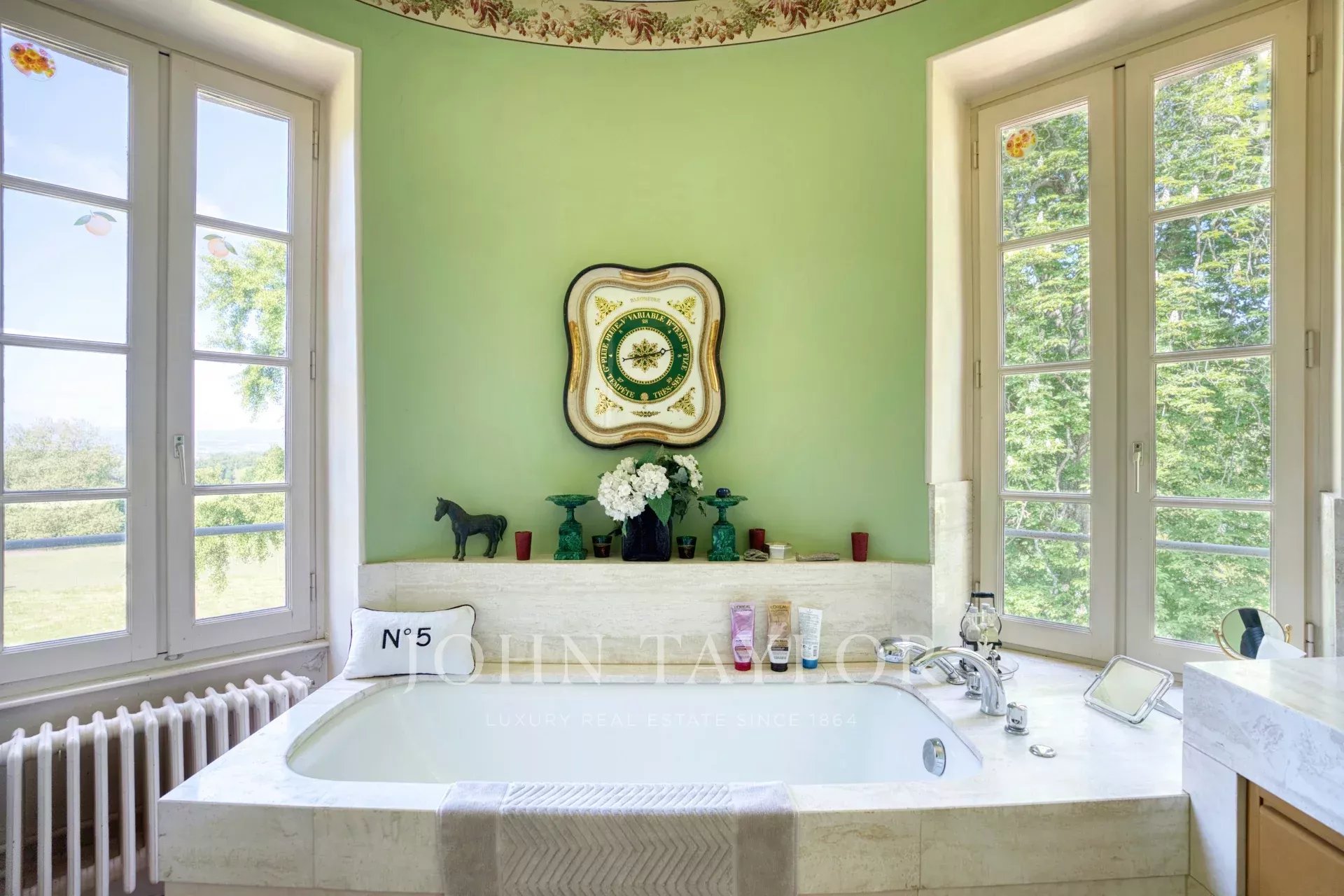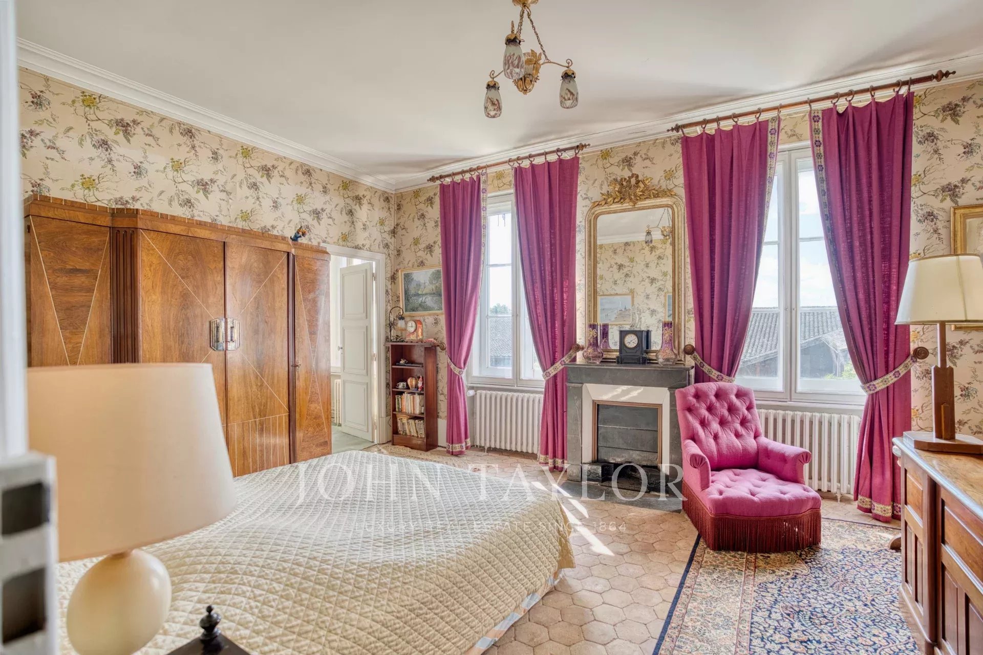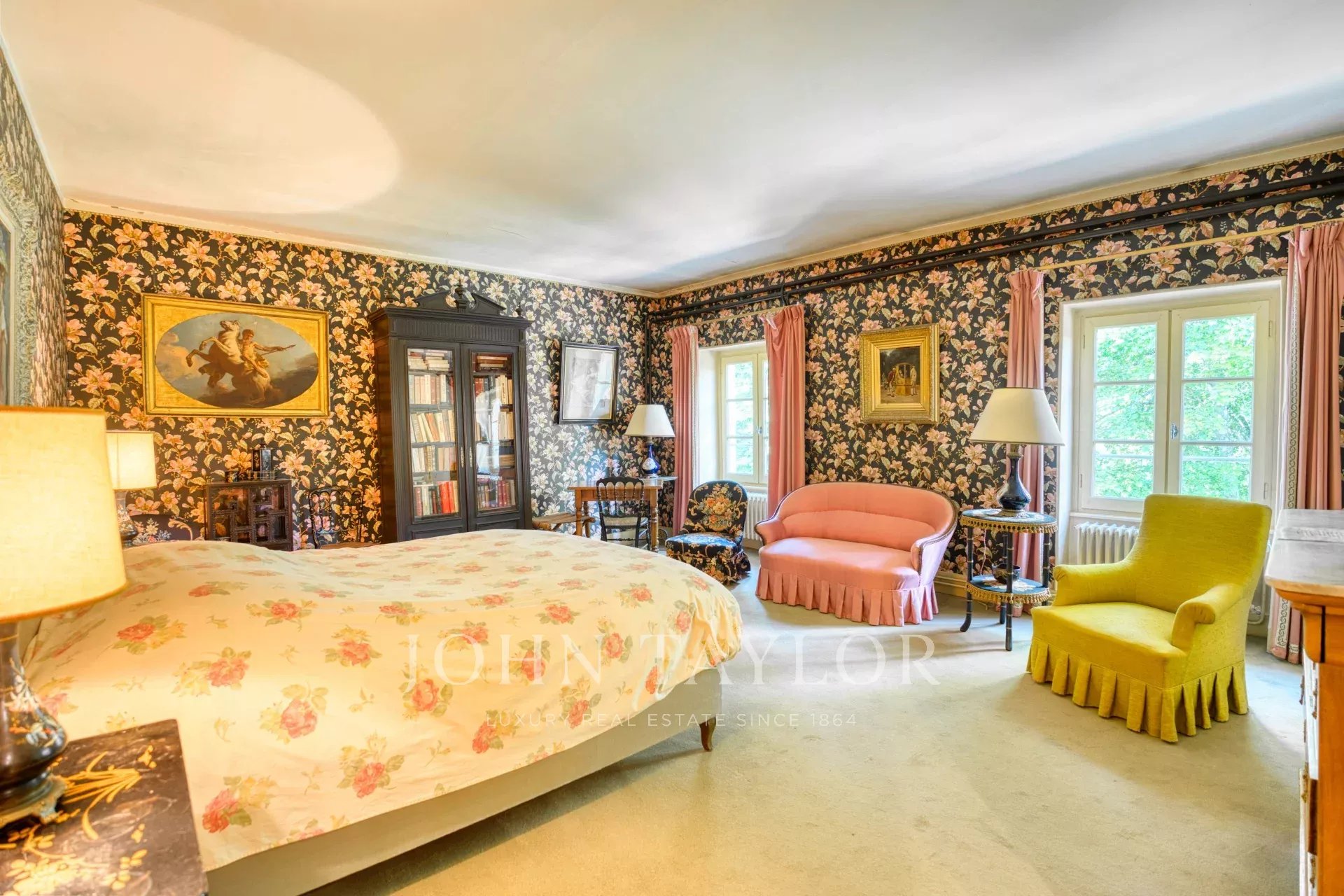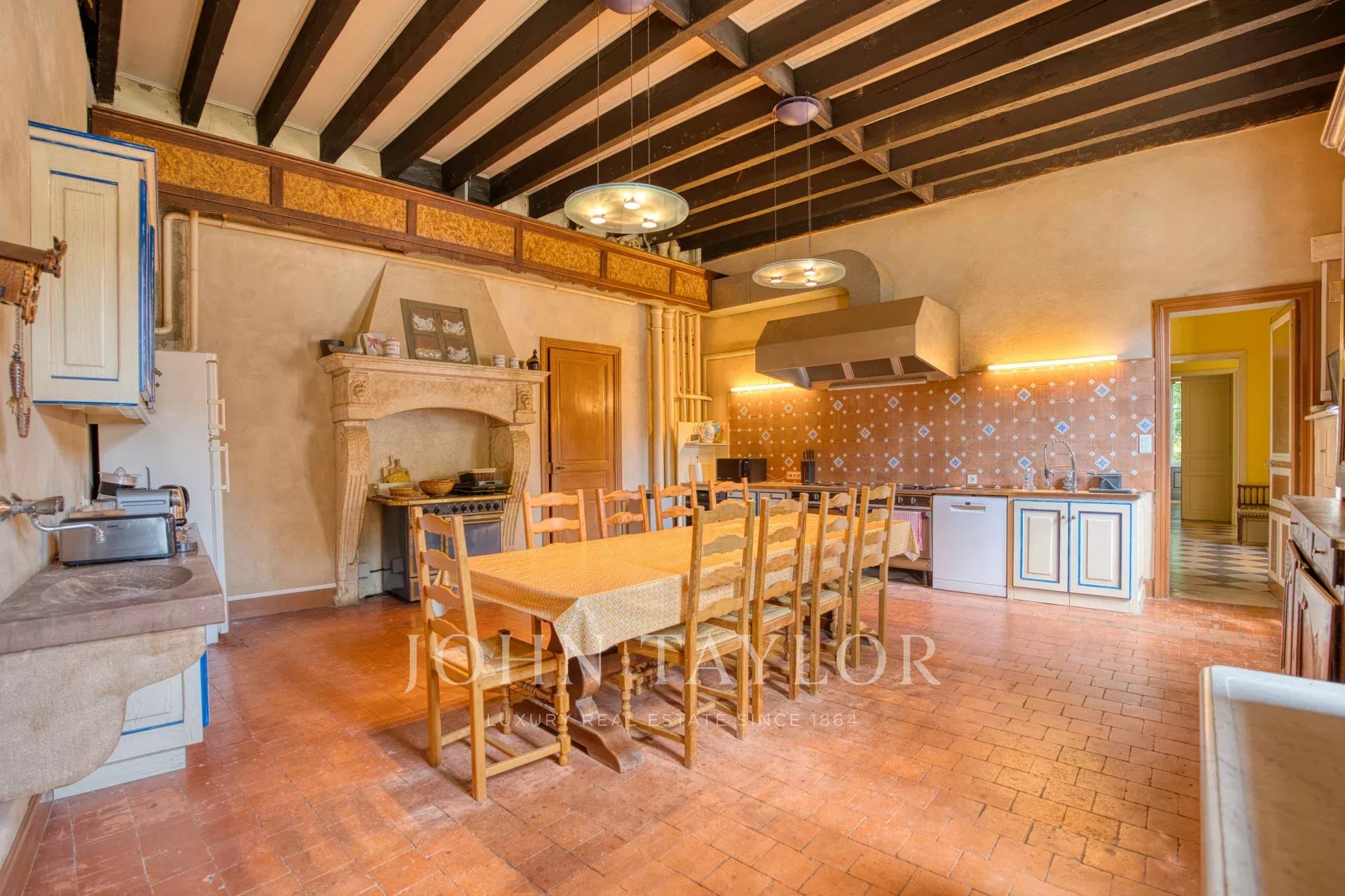 Cette vaste propriété se compose du bâtiment principal, le Château, d’une surface habitable d’environ 1 200 m², de nombreuses dépendances, d’une maison de gardien d’environ 90 m², une maison de jardinier à rénover d’environ 120 m², ainsi qu’une petite chapelle. Le parc clos de murs et de grillage offre des promenades dans un cadre bucolique avec côté piscine de beaux parterres de fleurs harmonieusement répartis le long d’allées menant à un kiosque d’été, des rosiers, un grand verger et deux étendues d’eaux (une marre et un étang).