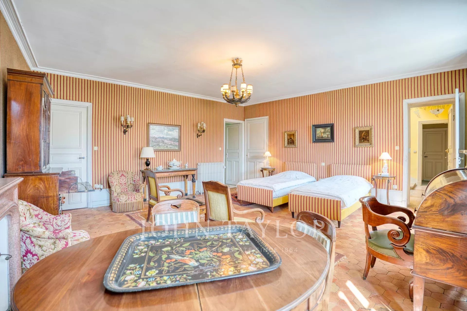 Les ailes réservées à l’habitation entourent la cour d'honneur : elles offrent des pièces de vie en rez-de-chaussée, avec salons, salle à manger, cuisine et office, bureaux, salle de sport et une partie qui pourrait être rénovée en suite. L’escalier central et l’ascenseur desservent les deux étages qui proposent 17 chambres dont 15 avec salle de bains privatives, et des salons. Les dépendances sont vastes et nombreuses : certaines ont été réhabitées comme la salle à manger d’été et son four à pain, de nombreux lieux de stockage, l’atelier, la chaufferie et une petite chapelle. Cette partie date des 18 et 19èmes siècles, et appartient depuis plus d’un siècle à une même famille.