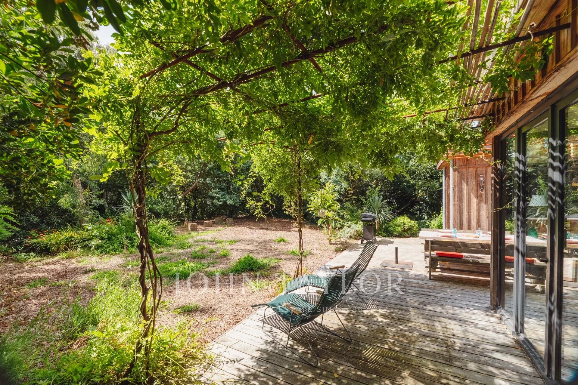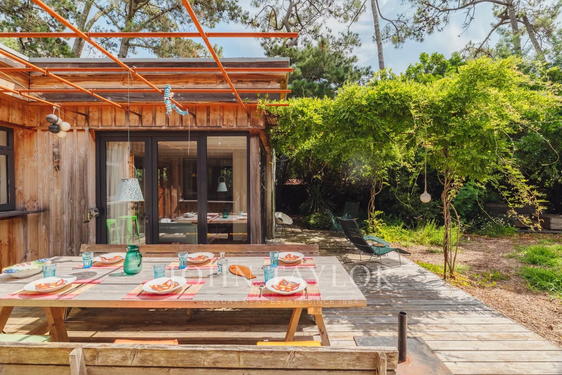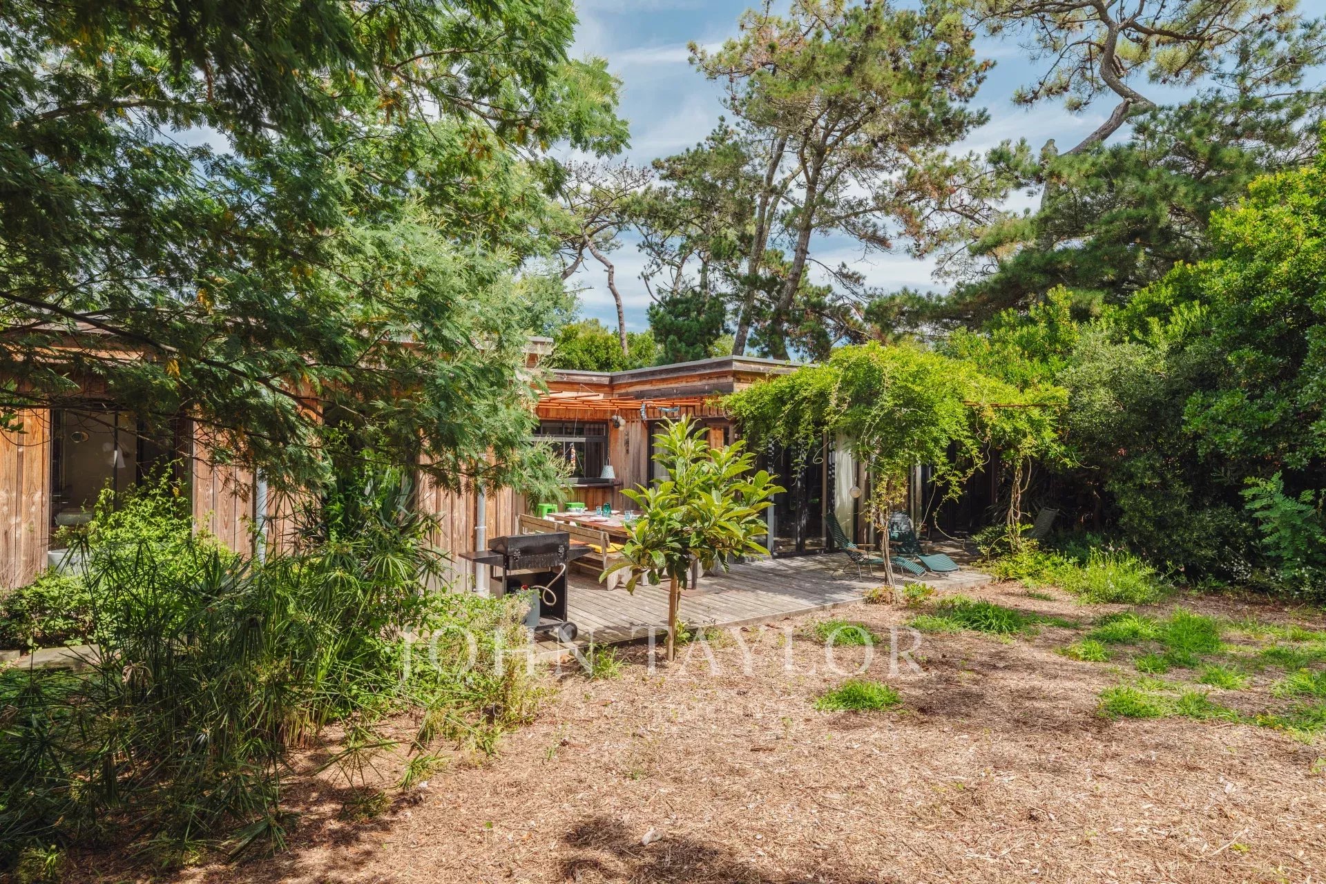 La maison John Taylor Cap ferret est fière de vous proposer cette superbe villa bois rénovée avec gout, sur une rare parcelle de plus de 1200m2 en plein cœur du quartier prisé et protégé des 44 Hectares.