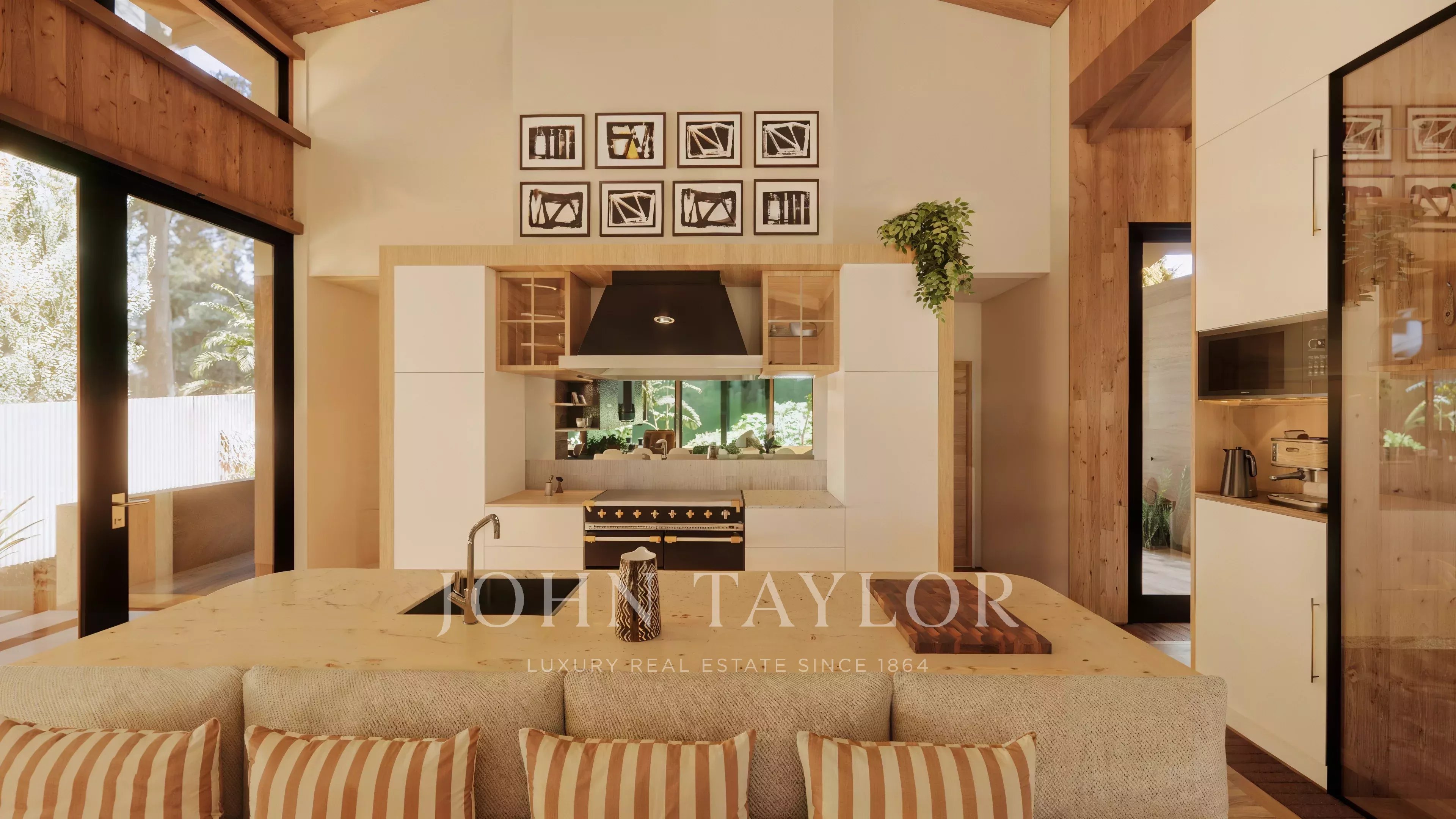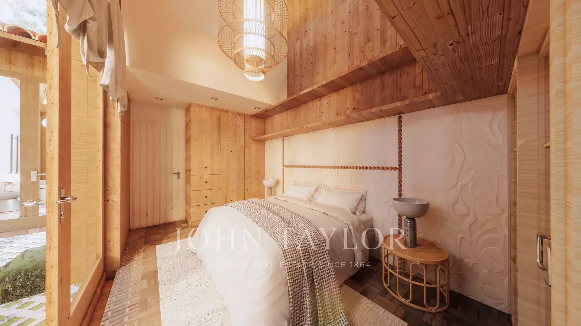 La villa comprend 5 vastes suites et une ravissante chambre de maître de plus de 50 m². Un superbe séjour cathédrale s'ouvre sur une cuisine haut de gamme, baignée de lumière naturelle, avec une vue panoramique sur la canopée.