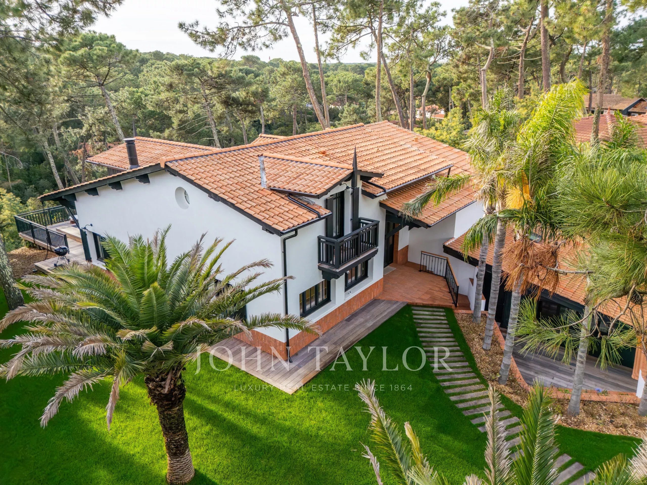 L’agence John Taylor Cap Ferret a l’honneur de vous dévoiler une adresse confidentielle, véritable joyau niché à seulement cinq minutes du cœur battant de la presqu'île. Cette propriété, située dans un environnement préservé, s’affirme comme un havre de paix absolu, où le luxe se conjugue à une discrétion totale.