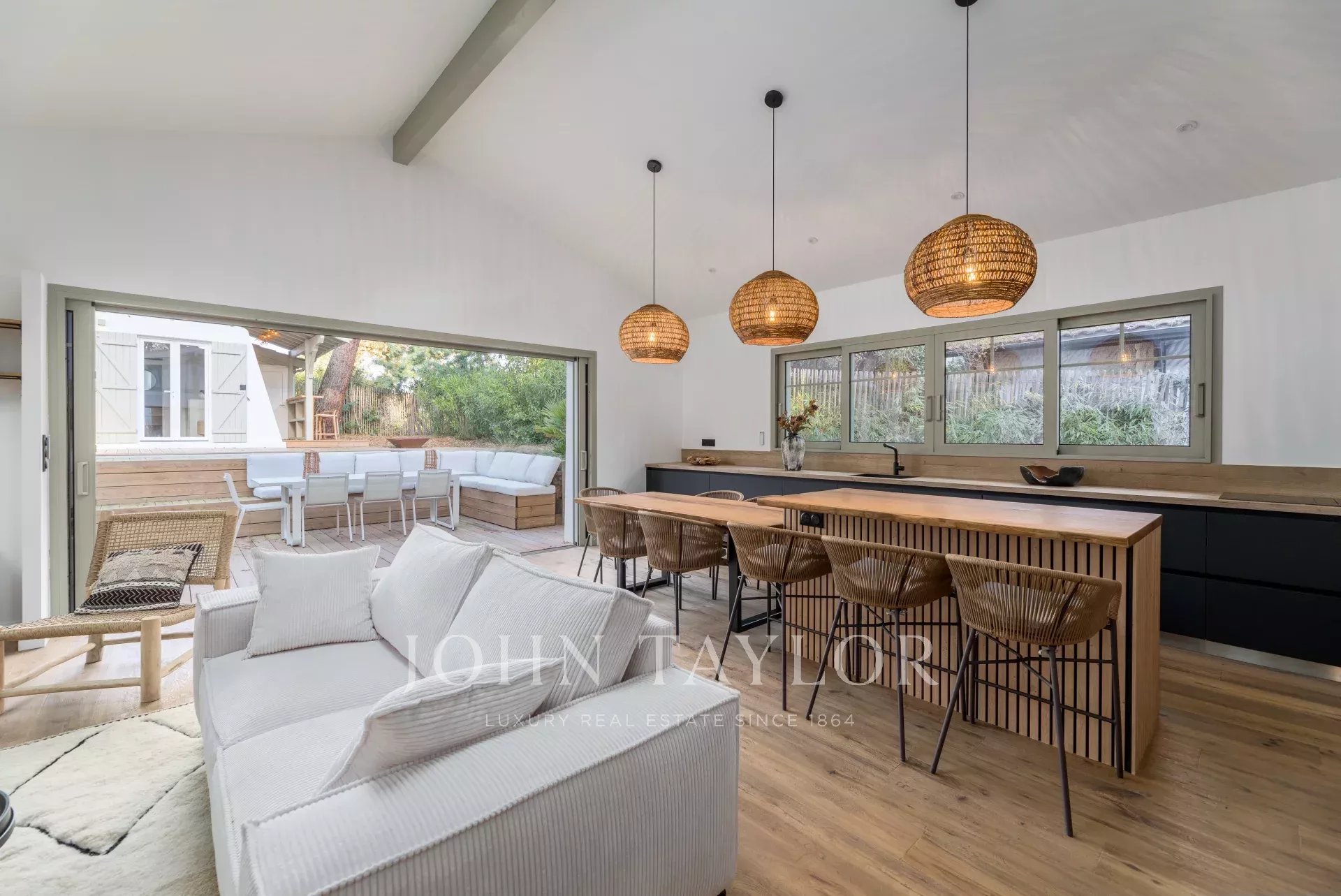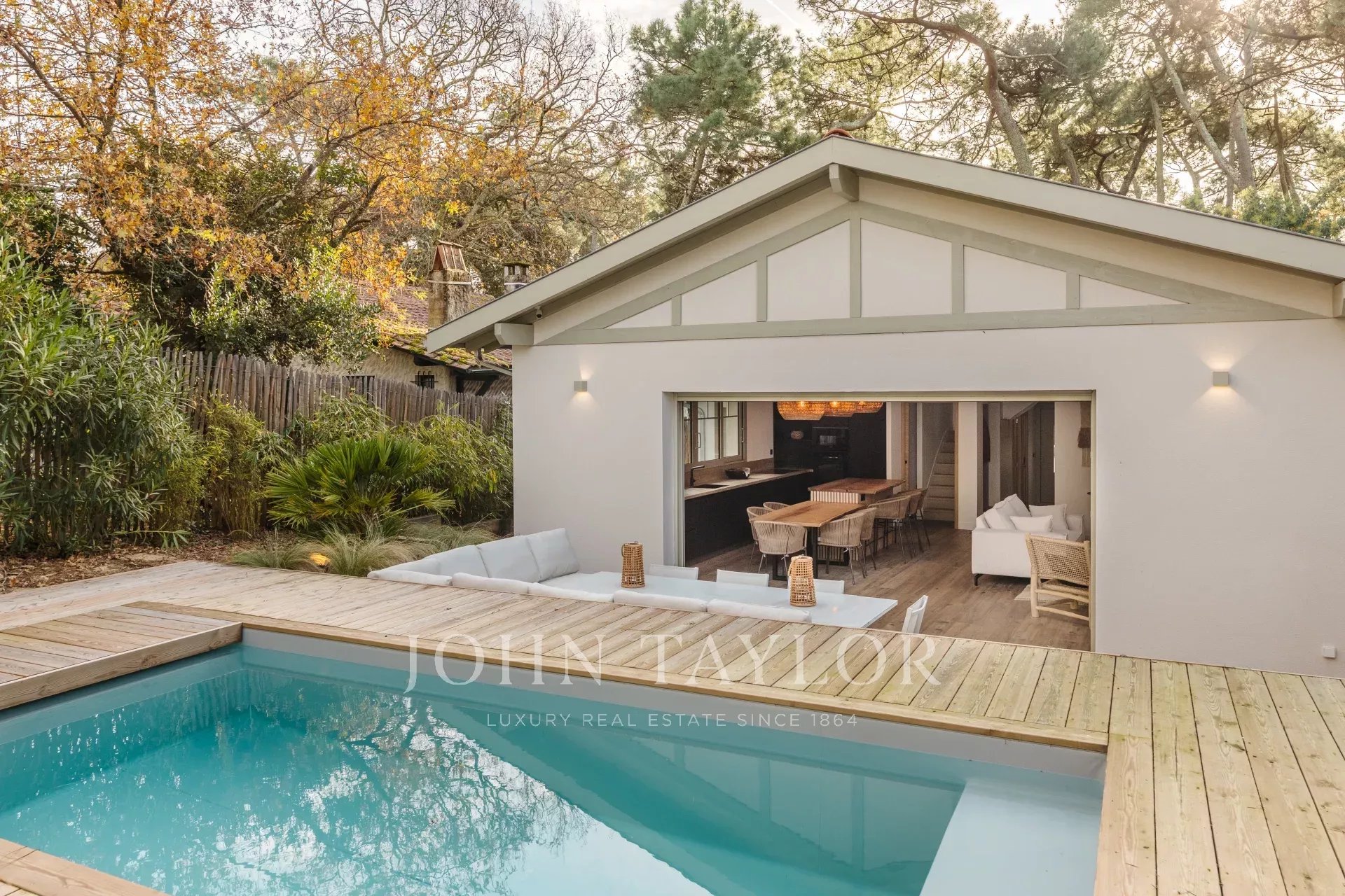 John Taylor Bassin d'Arcachon vous propose cette superbe villa entièrement rénovée, située dans le secteur recherché de l’Haïtza, à seulement 200 mètres de la plage.