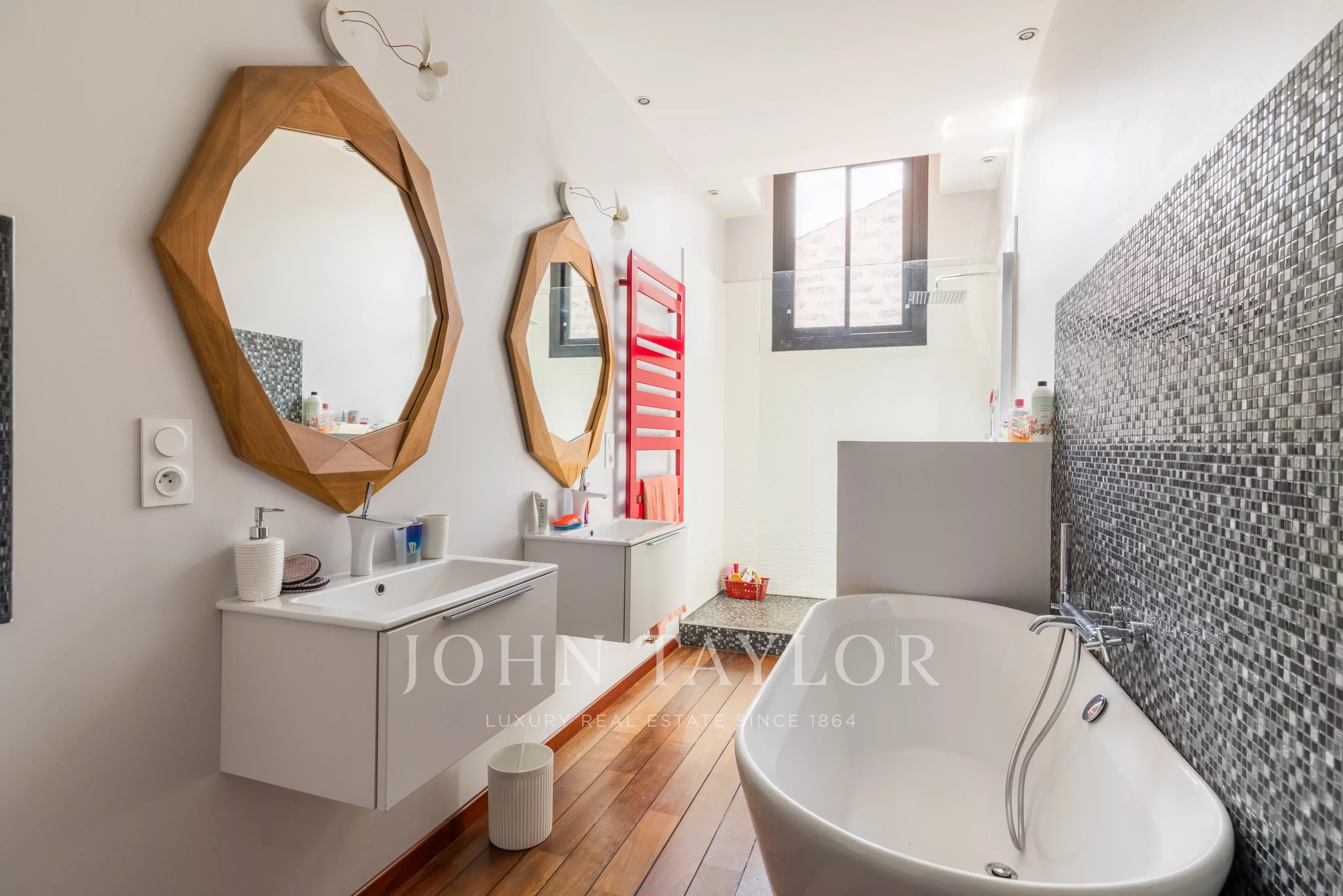 Édifiée en 1880 et entièrement rénovée avec soin, la propriété se déploie sur trois niveaux et propose des volumes généreux baignés de lumière.