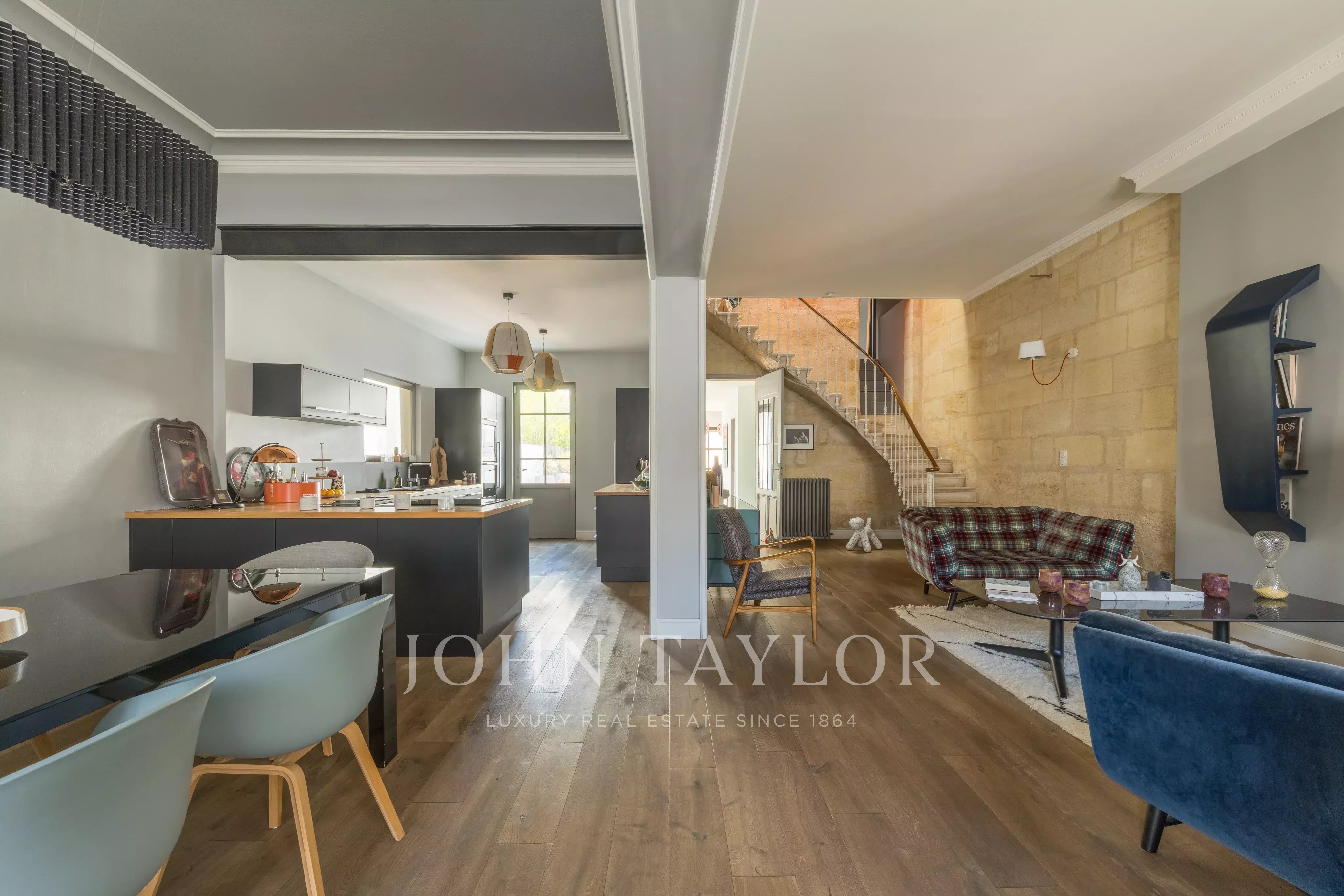 Située à Bègles, à proximité des commerces, écoles et transports, cette élégante maison de ville de 236 m² offre un cadre de vie rare, alliant avec subtilité le charme de l’ancien et le confort contemporain.