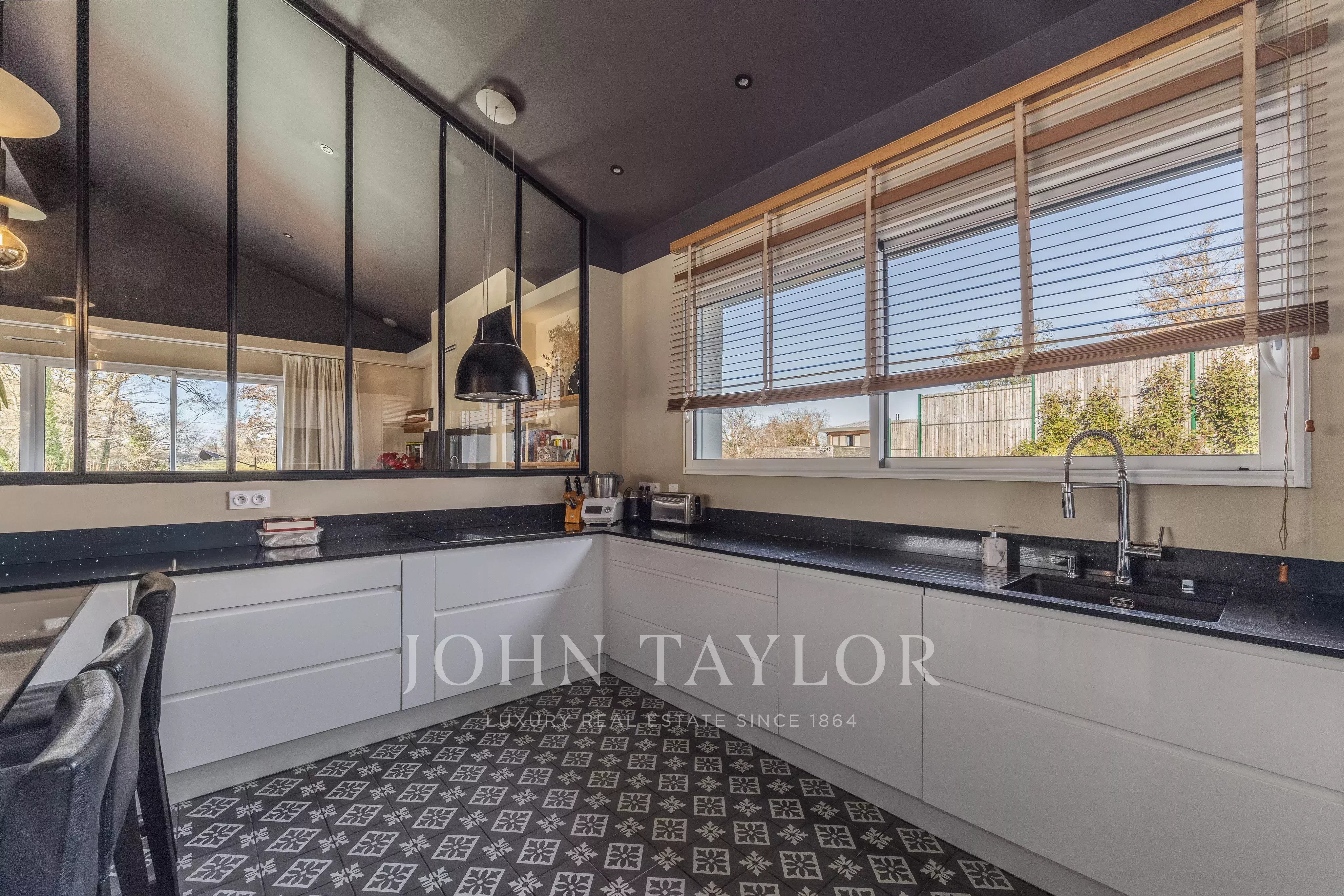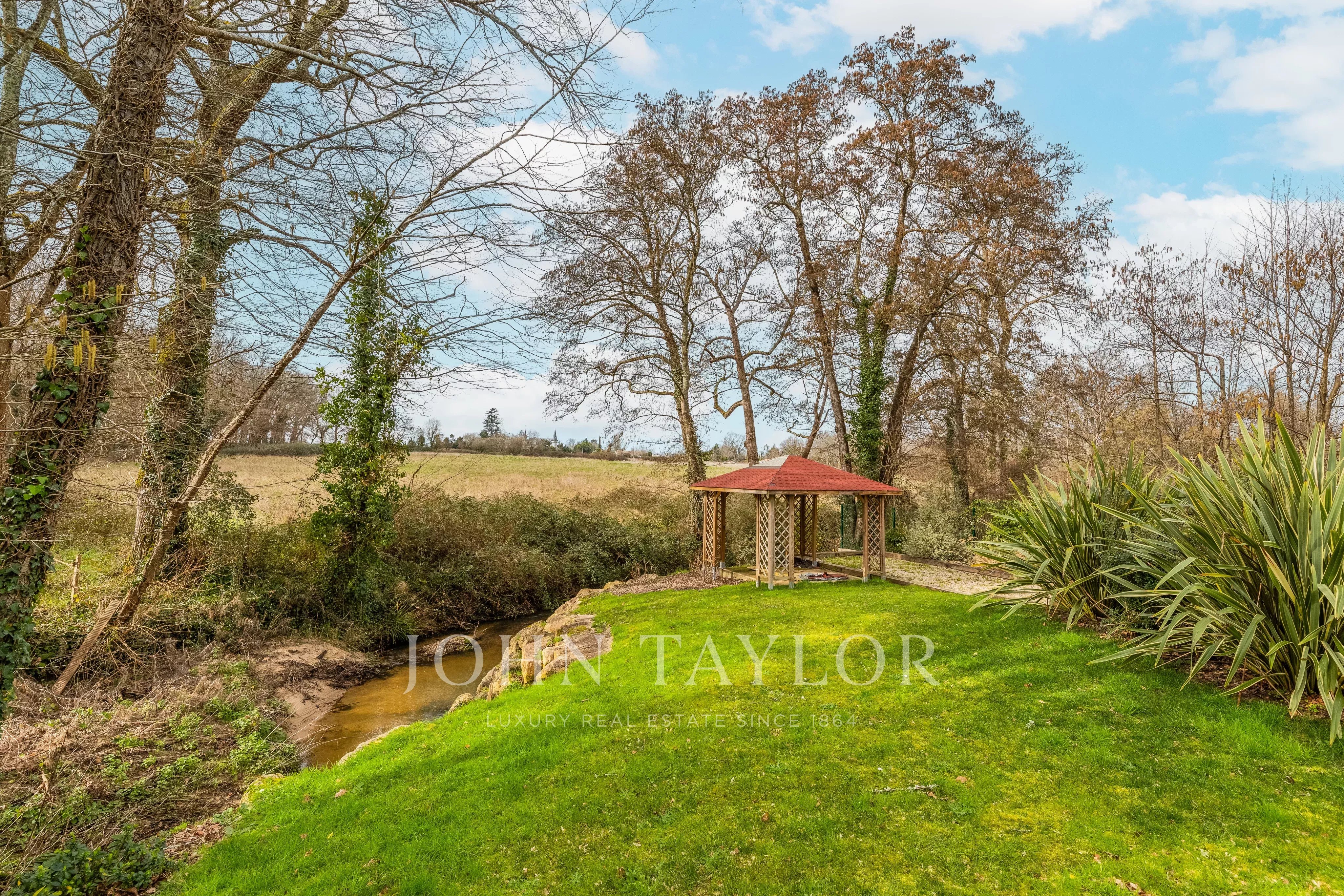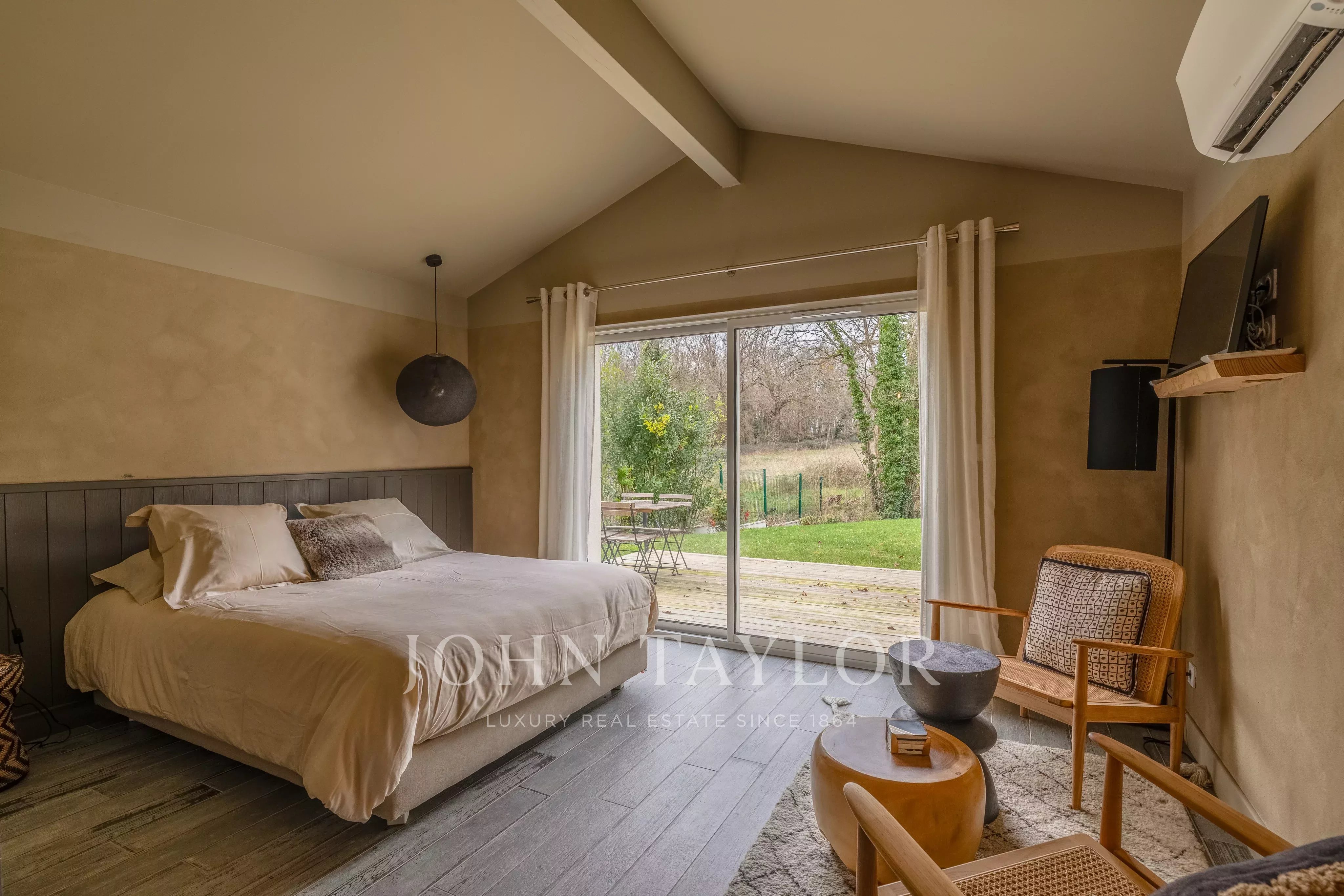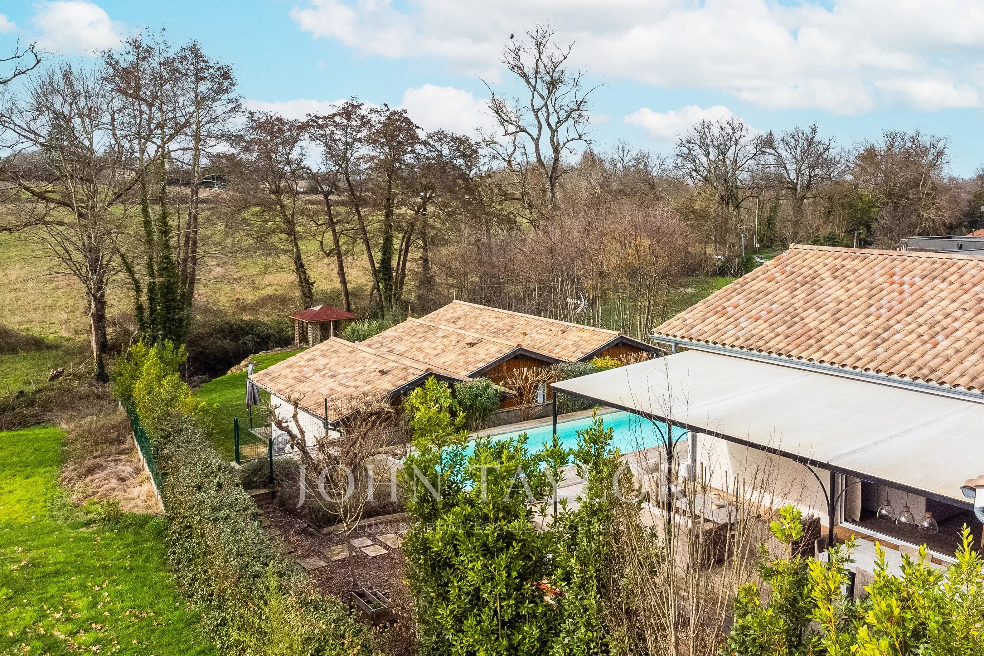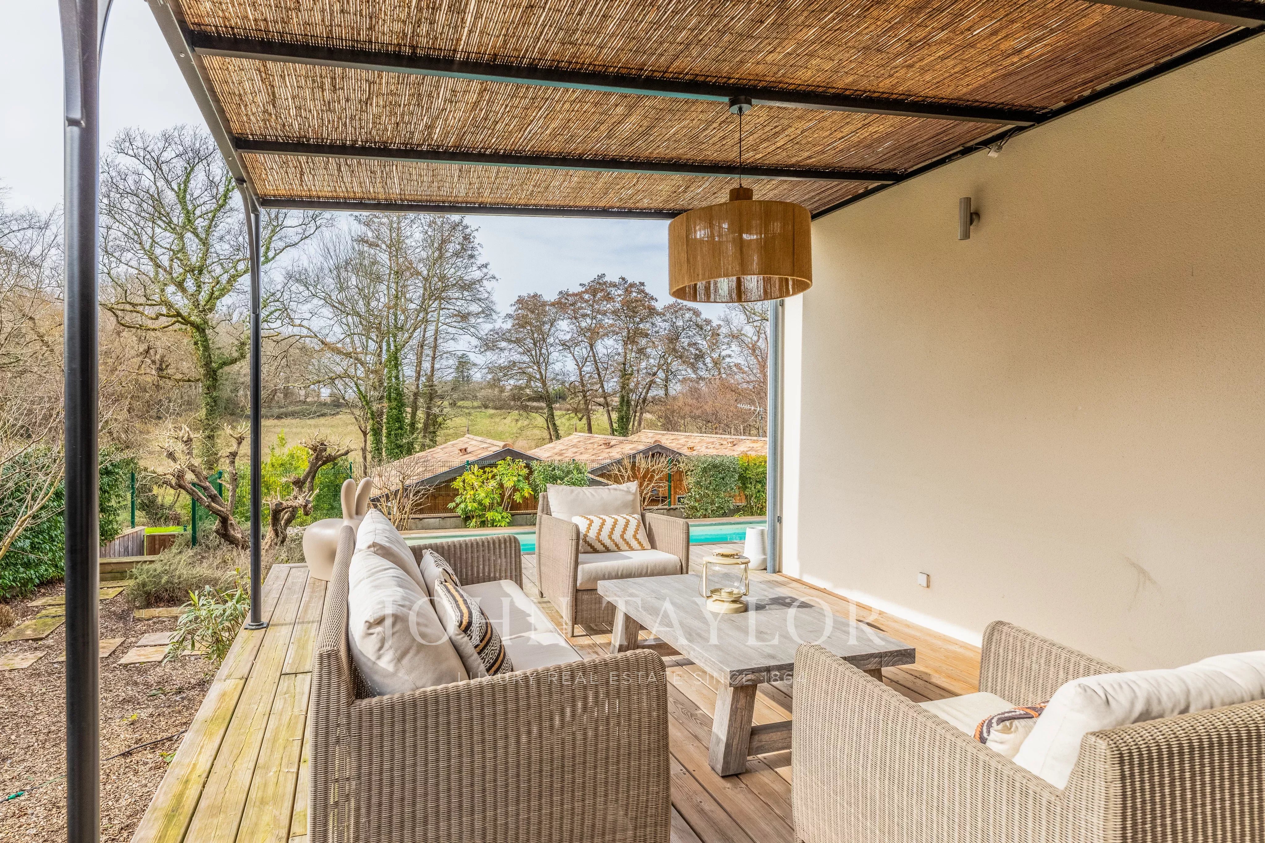 Située à seulement 25 minutes de Bordeaux et 15 minutes de Saint-Émilion, cette propriété de caractère développe environ 300 m² au cœur d’un environnement naturel préservé. Implantée sur un terrain arboré de chênes centenaires, bordé par un ruisseau, elle bénéficie d’un cadre calme et confidentiel.