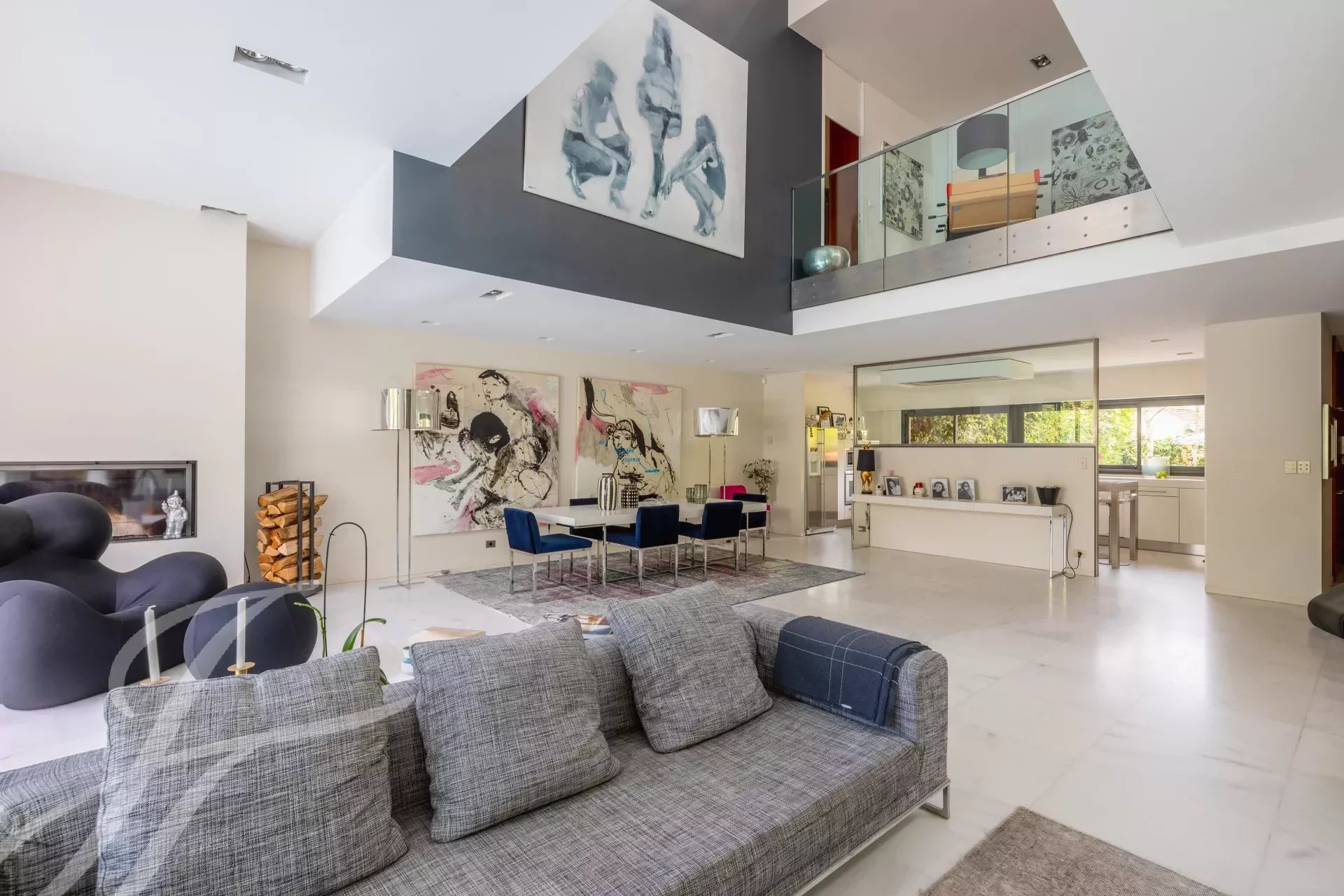 À l’intérieur, l’élégance s’allie à la sobriété dans une harmonie raffinée, portée par des matériaux nobles tels que le marbre et le bois. Les volumes impressionnent dès l’entrée, notamment le vaste salon d’environ 90 m². Ce niveau comprend également une grande cuisine entièrement équipée. Le séjour cathédrale offre une perspective remarquable sur l’étage, où se déploient les espaces nuit : quatre chambres, une salle de bain, et une salle d'eau ainsi qu'une généreuse suite parentale, le tout s'articule sur deux niveaux offrant proximité et préservant à la fois les espaces de chacun. Cette dernière bénéficie d’un dressing sur mesure, réalisé avec une menuiserie de qualité et une salle d'eau avec double accès. Une buanderie et une pièce dédiée aux loisirs — salle de jeux ou home cinéma — complètent cet espace de vie.