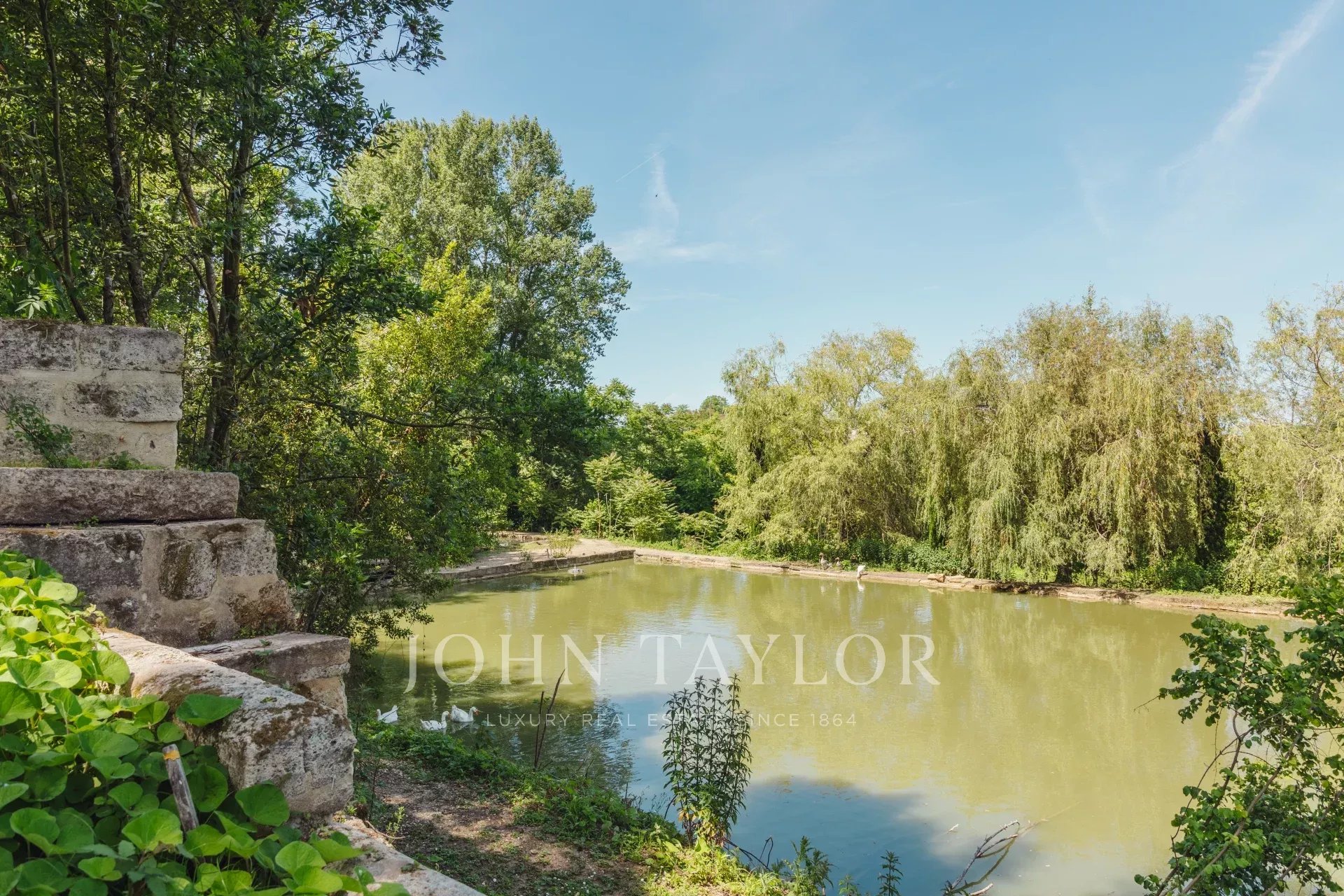 Le parc de trois hectares abrite deux étangs et une maison qui préserve ses caractéristiques d'origine, telles que les cheminées et les boiseries, tout en intégrant des commodités modernes. Une grande allée conduit à une demeure rénovée dans le respect des critères historiques.