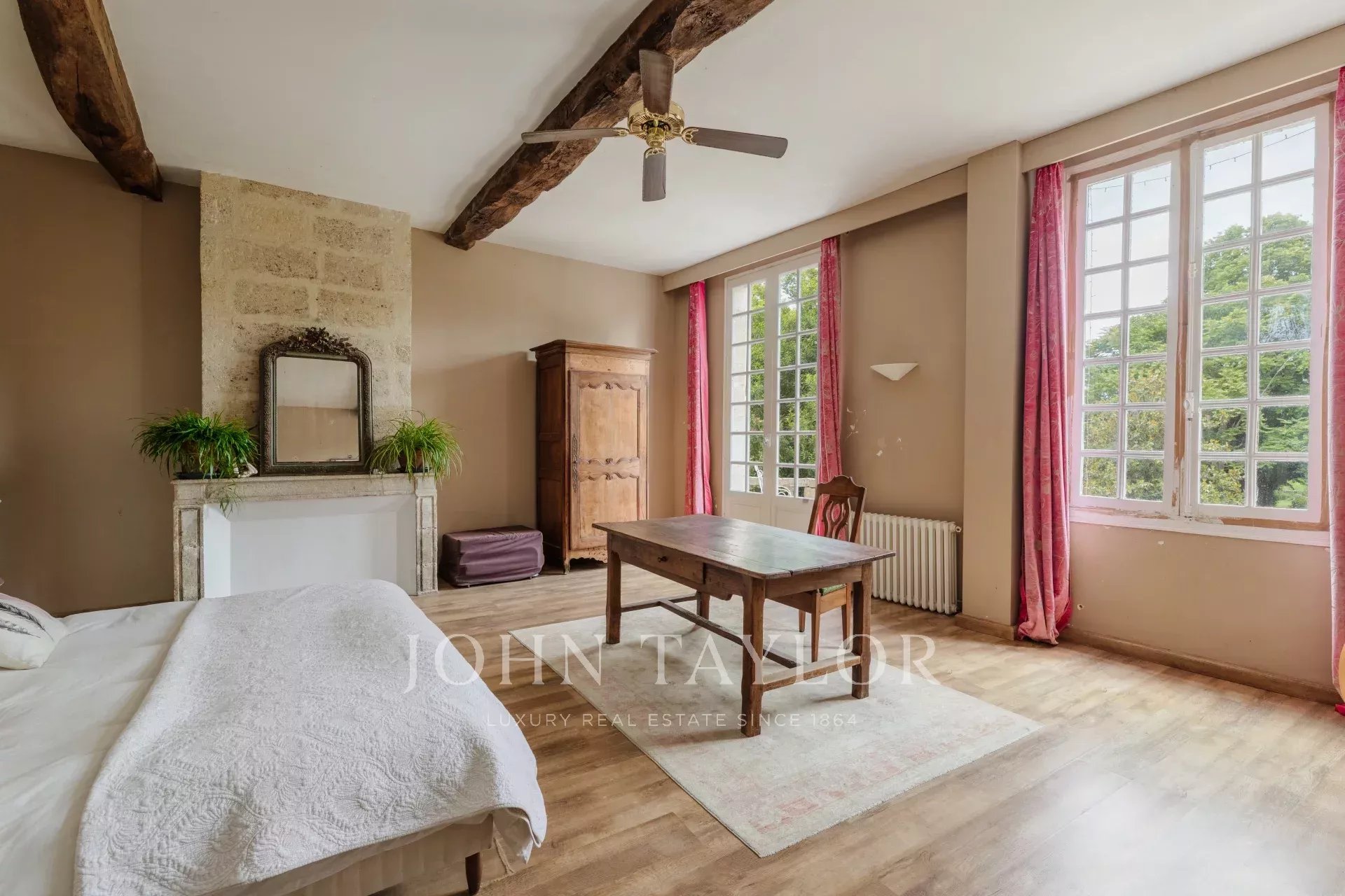 Située à 15 minutes de la gare TGV de Libourne et à proximité de l'aéroport, cette propriété est parfaite pour une résidence principale ou une activité prestigieuse, alliant charme et authenticité.