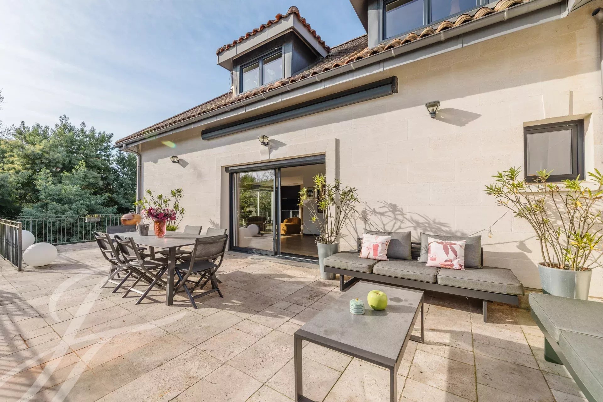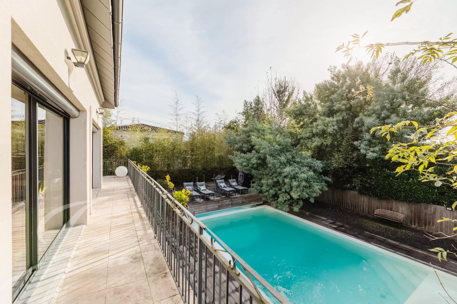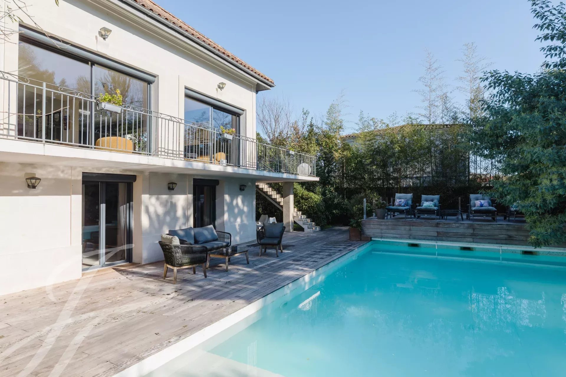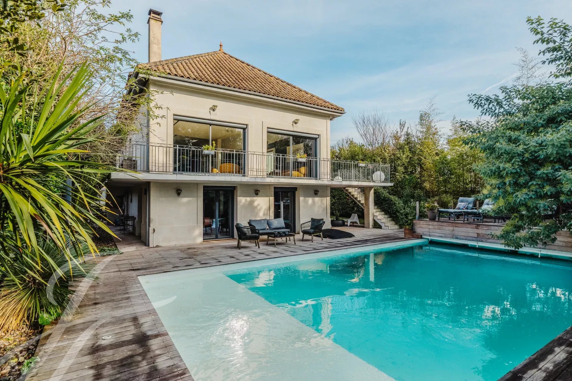 À 300 mètre du Tramway, cette maison de maître en pierre de Prignac, entièrement rénovée offre un cadre de vie unique avec ses 400m² répartis sur 3 niveaux, un jardin d'accueil pouvant recevoir jusqu’à quatre véhicules, un garage, un terrain de pétanque et une vaste terrasse surélevée avec spa surplombant une grande piscine de 6 mètres par 12 mètres.