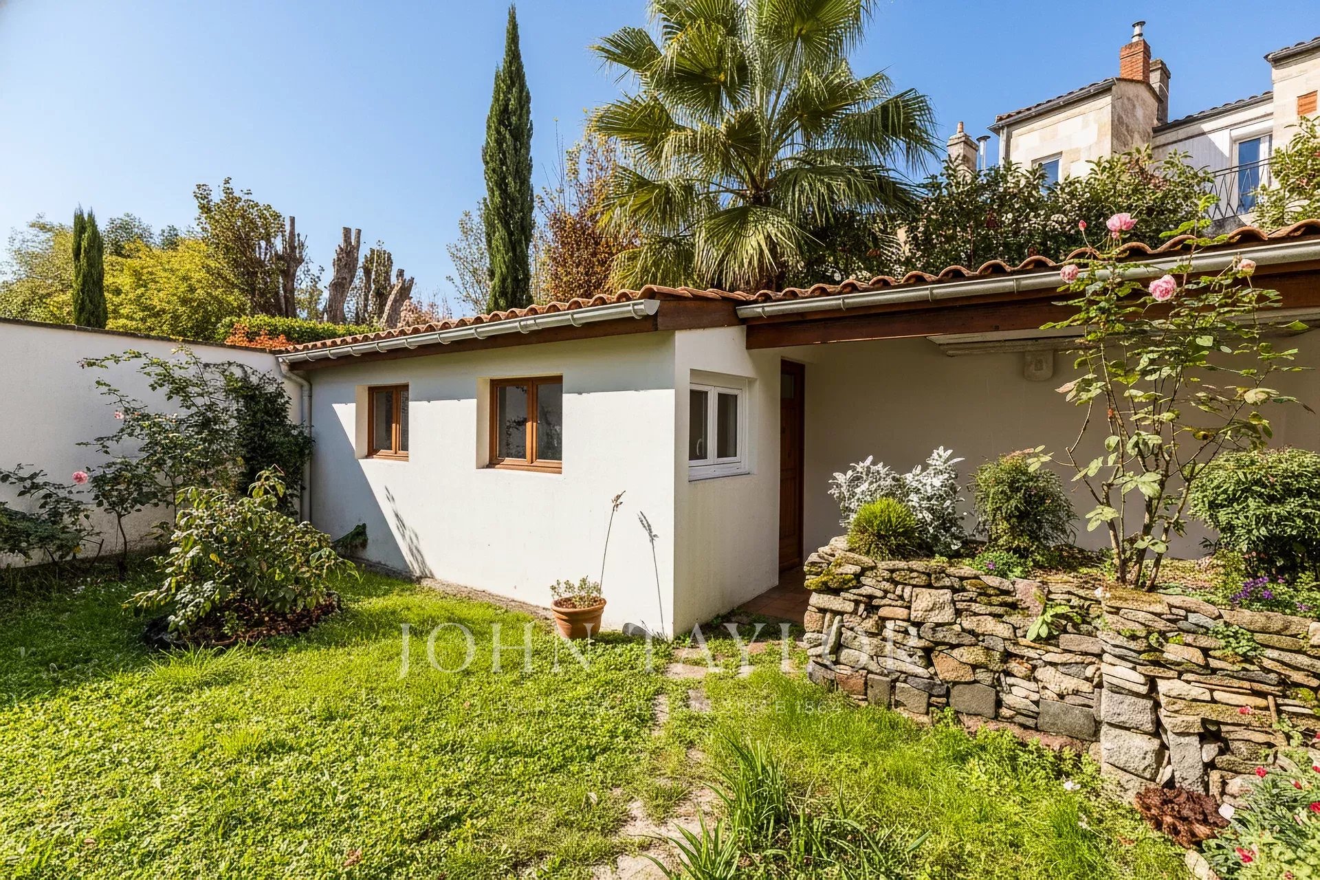 Derrière une très jolie façade en pierre, maison charmante et lumineuse sur deux niveaux avec grand jardin de 100 m² plein sud au calme. Proche des écoles du quartier du Jardin Public.