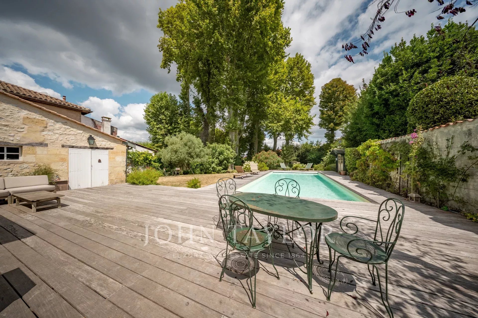 À l’extérieur, vous profiterez d’un magnifique jardin arboré sans vis-à-vis, ponctué de platanes majestueux, d’une piscine et d’une dépendance offrant de multiples possibilités d’aménagement (atelier, studio invité, bureau).